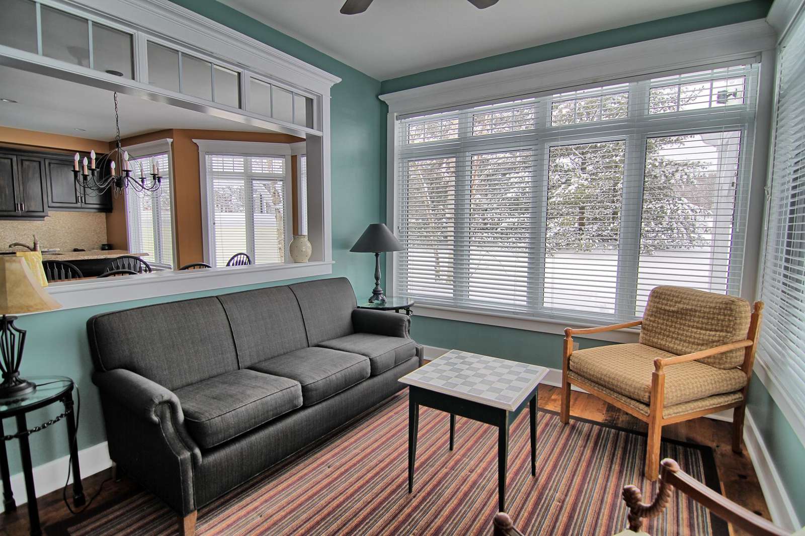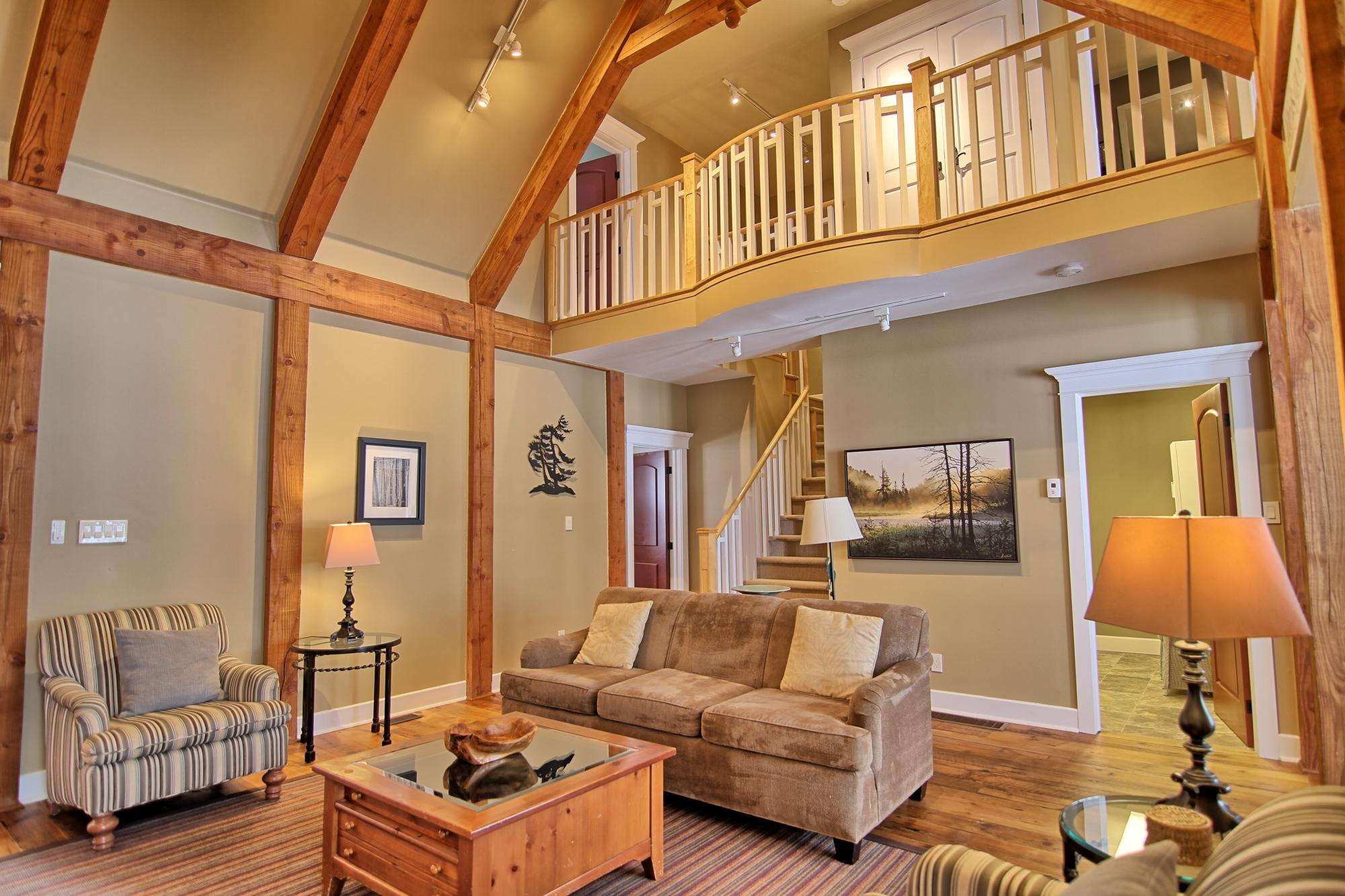 Vaulted ceilings, wood burning fireplace, large tv