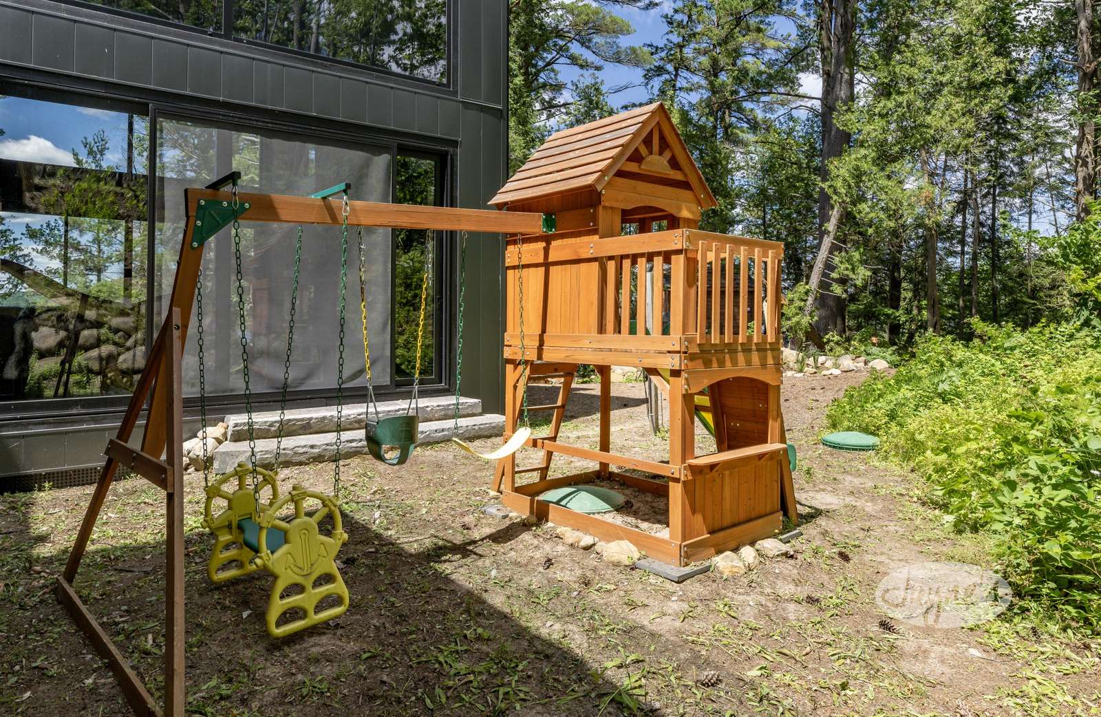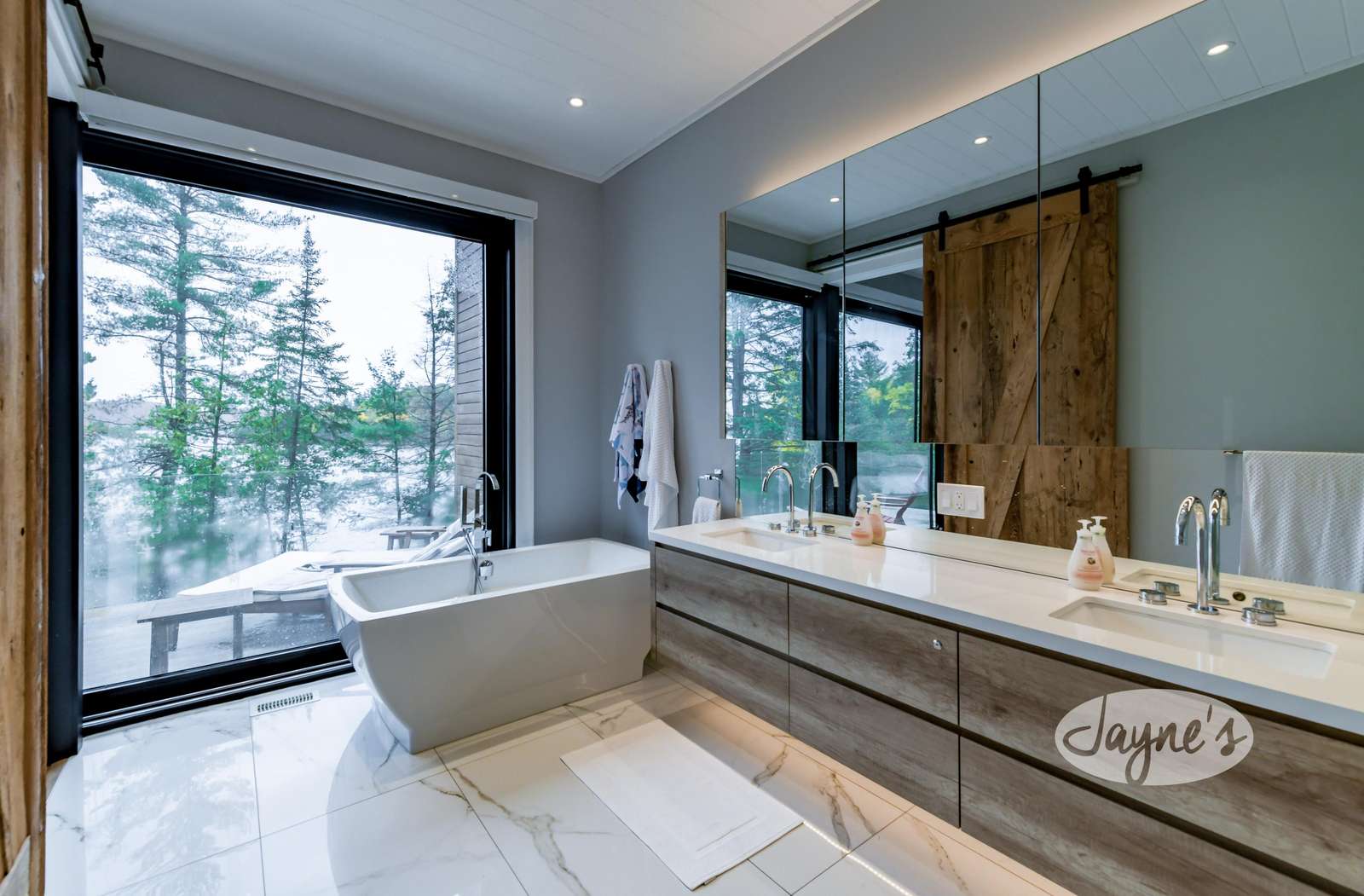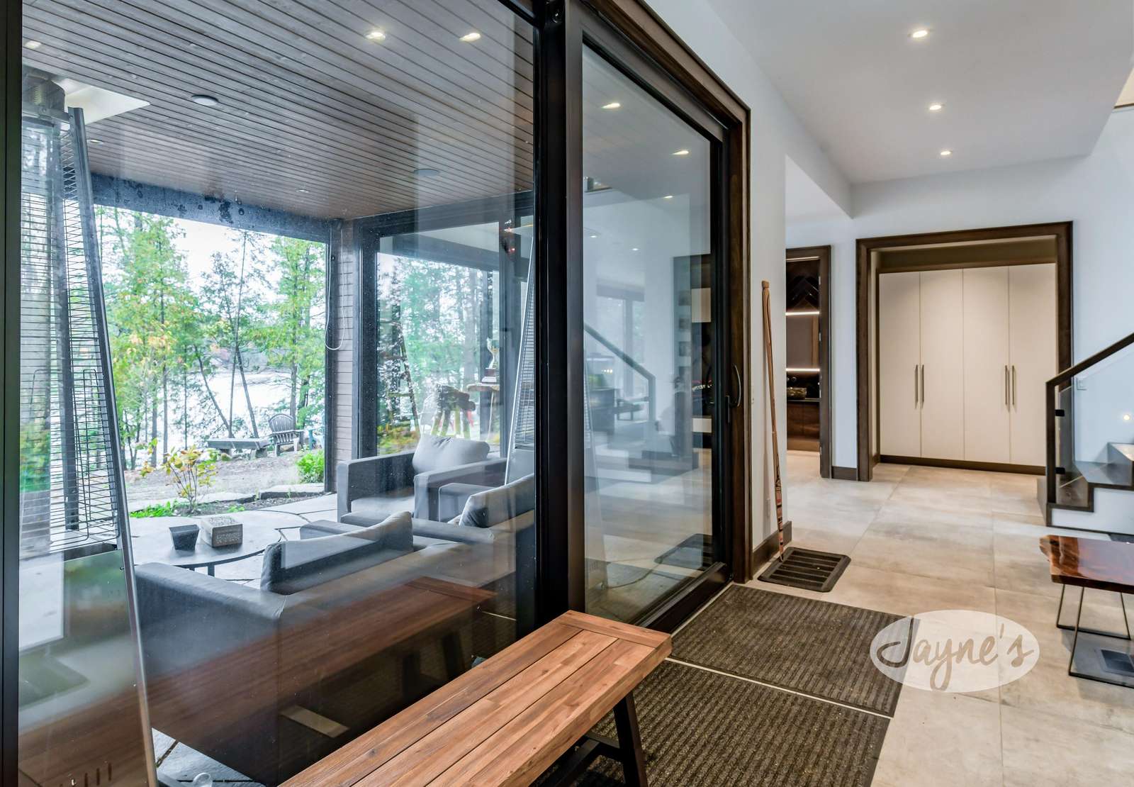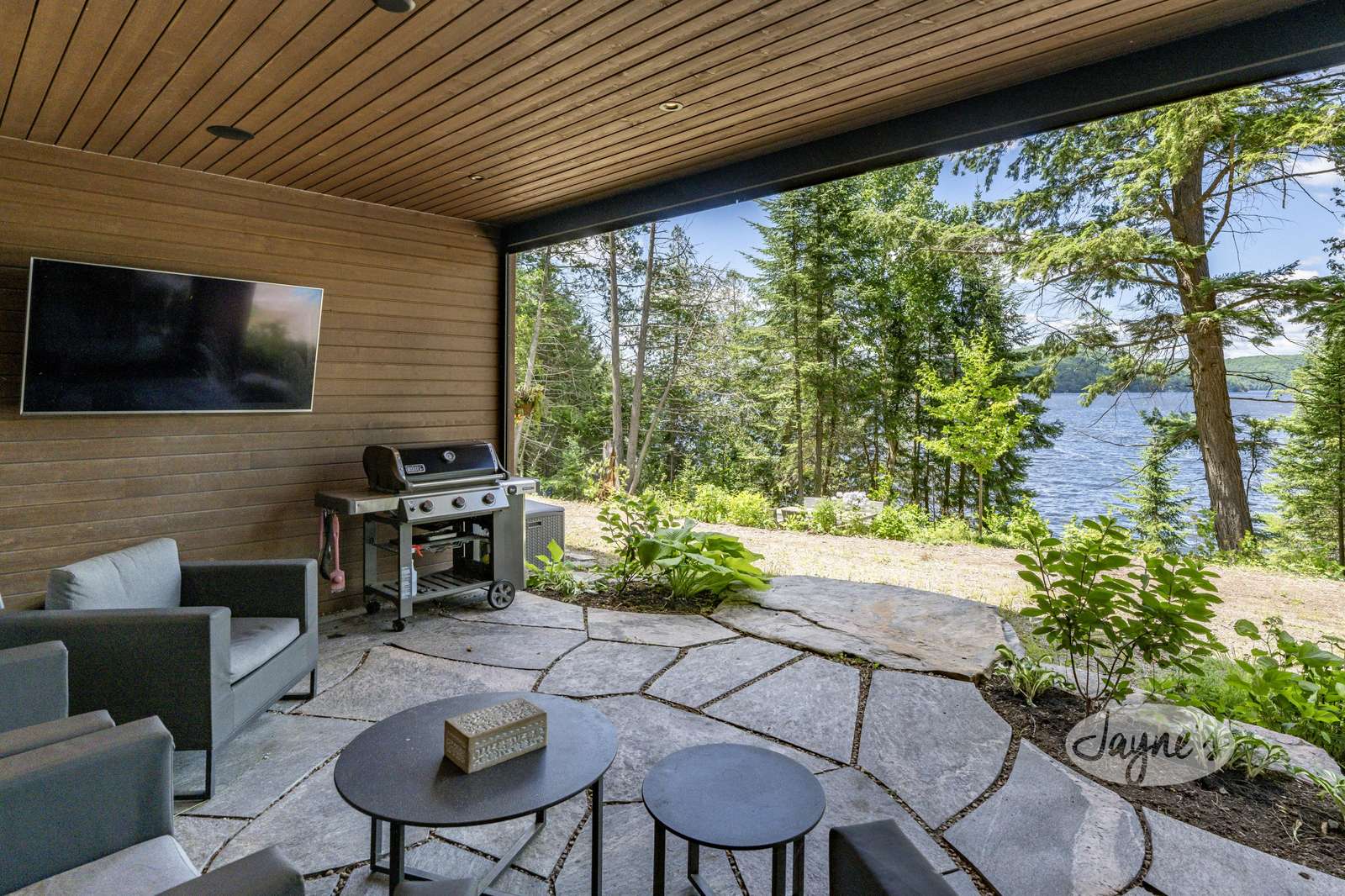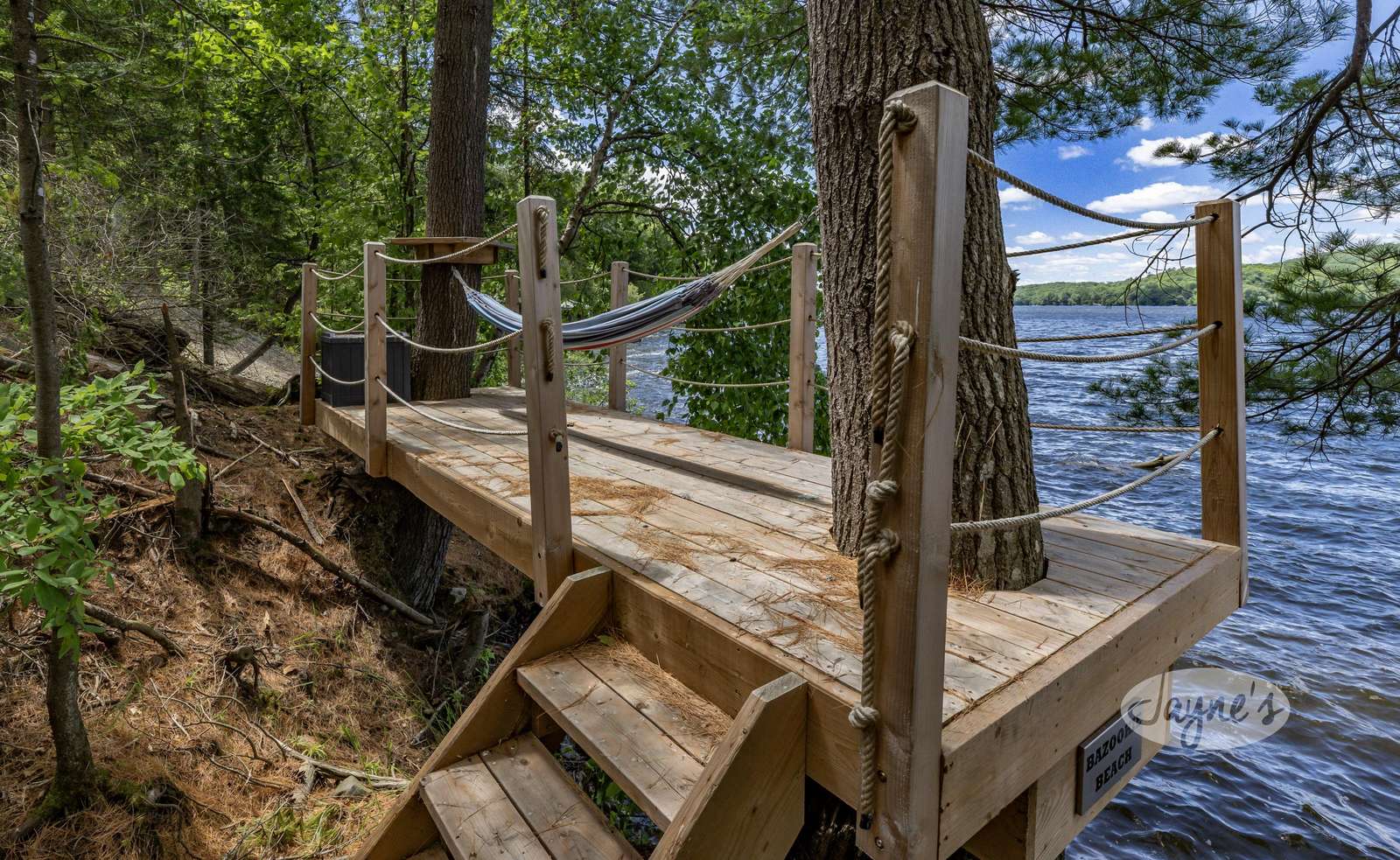 LAND BEFORE TIME is located on a gorgeous lot with stunning natural rock and towering mature trees, and sits solitary and stunning amongst the earth and greenery. It is a brand new, ultra modern cottage as of summer 2019. Take in nature's beauty even while indoors with the huge floor to ceiling windows on the main floor. Traipse the property and follow the beautiful, winding nature trails that lead towards the tennis court or the stone steps that lead to the water. Even with the trees lining and dotting around the property, the views of lovely Lake of Bays are always visible peaking through and open up completely when you arrive at the water's edge. The property boasts a tennis court with a cabana for shade and viewing as well as a badminton net to ensure there is never a dull moment! A small sandy beach with a shallow walk-in sits adjacent to the dock offering a perfect place for young children to enjoy the waterfront! Secluded and quiet, Land Before time is the perfect cottage getaway with the modernity and elegance of city-living.