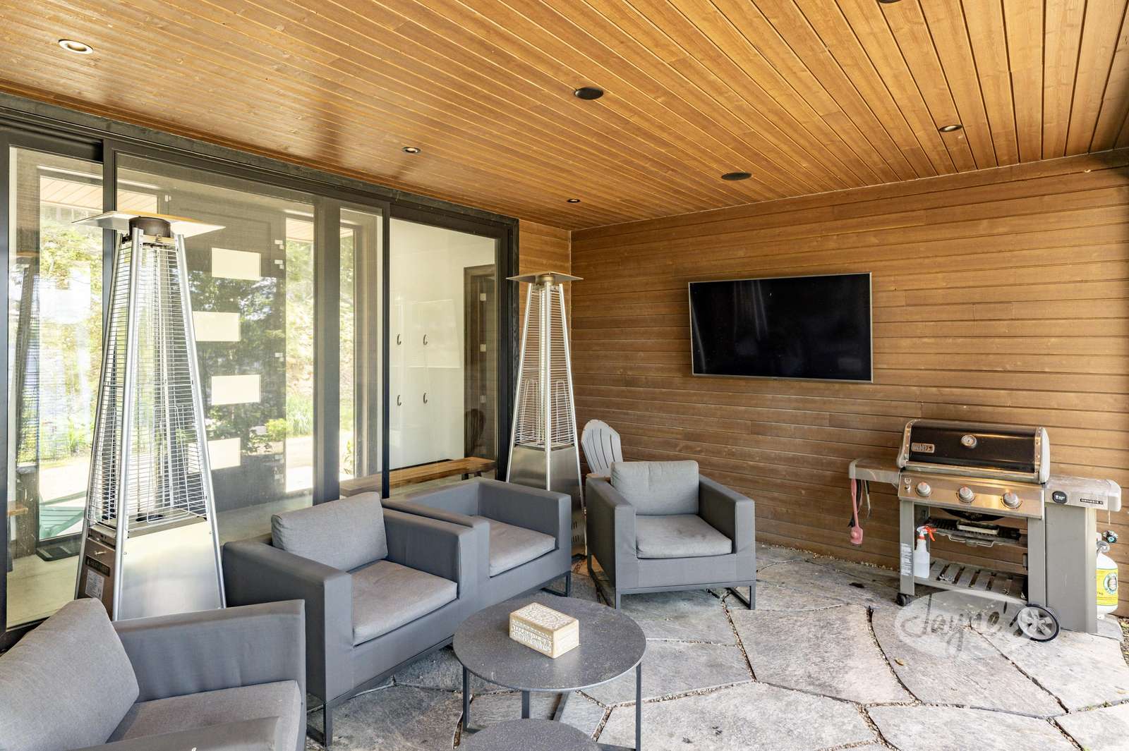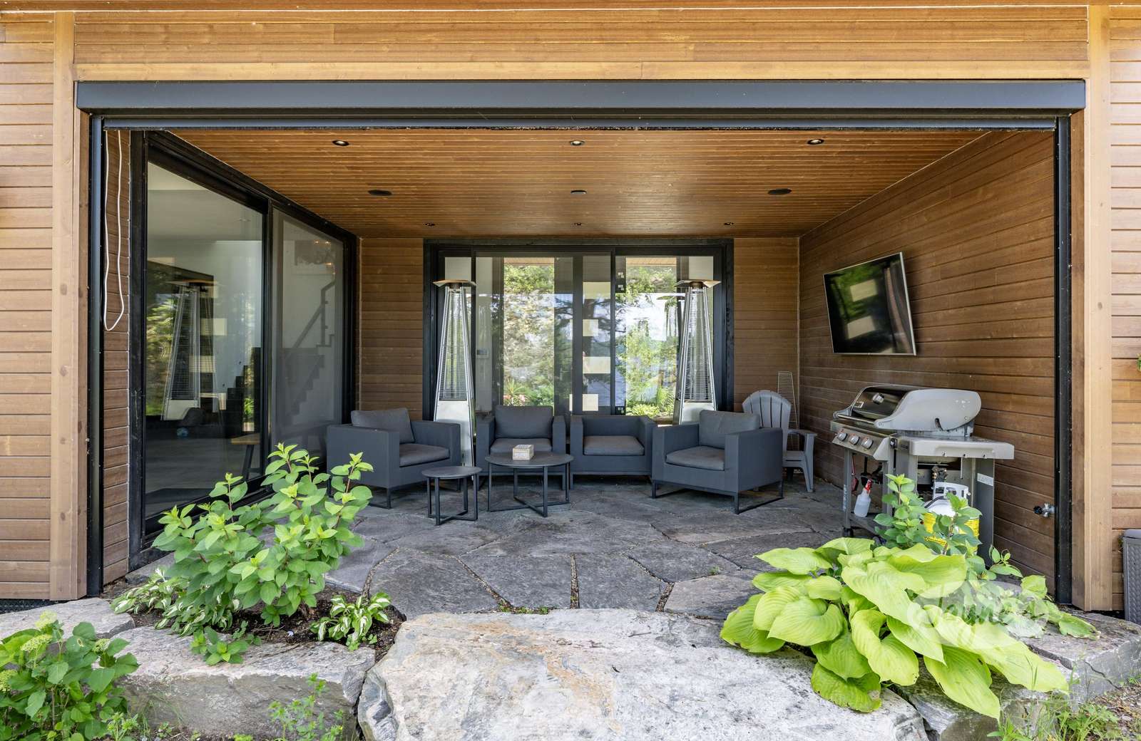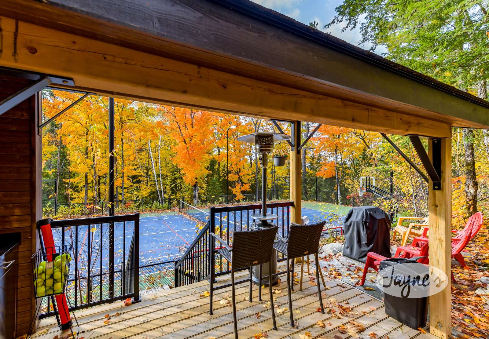Features pool table, ping pong table, TV, kitchenette, dartboard, mini gym (with Peloton Bike, boxing equipment, a bench and free weights) and walk out to the balcony with Muskoka chair seating