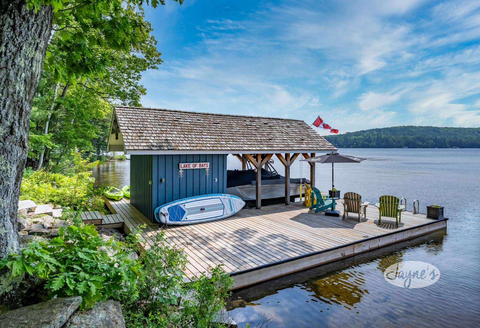 Glorious SW views from this 4bed 4bath two-storey cottage on Lake of Bays. Boasting all-day-sun, an abundance of watertoys, hot tub, sauna, Tiki bar and more - you will never want to leave!