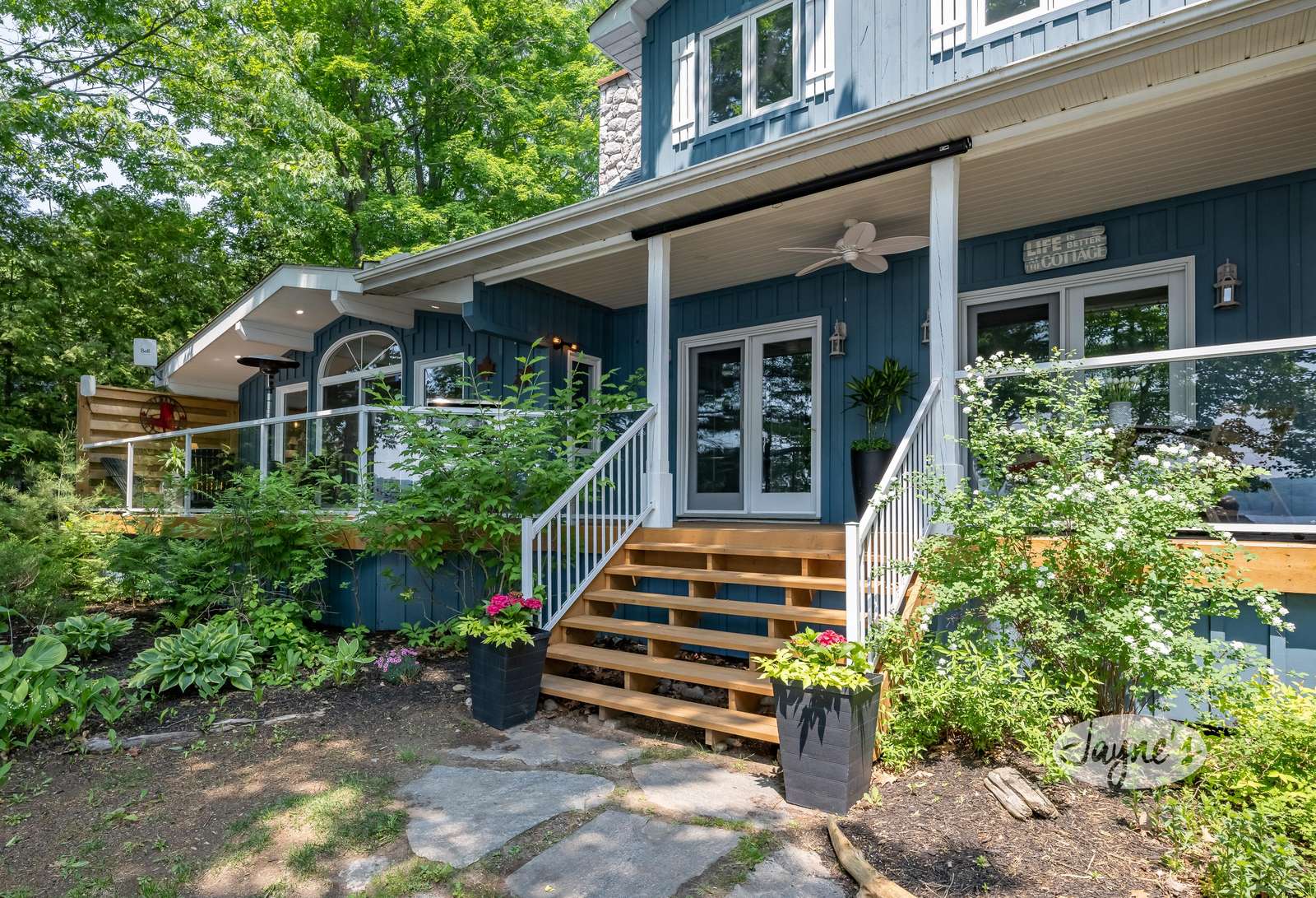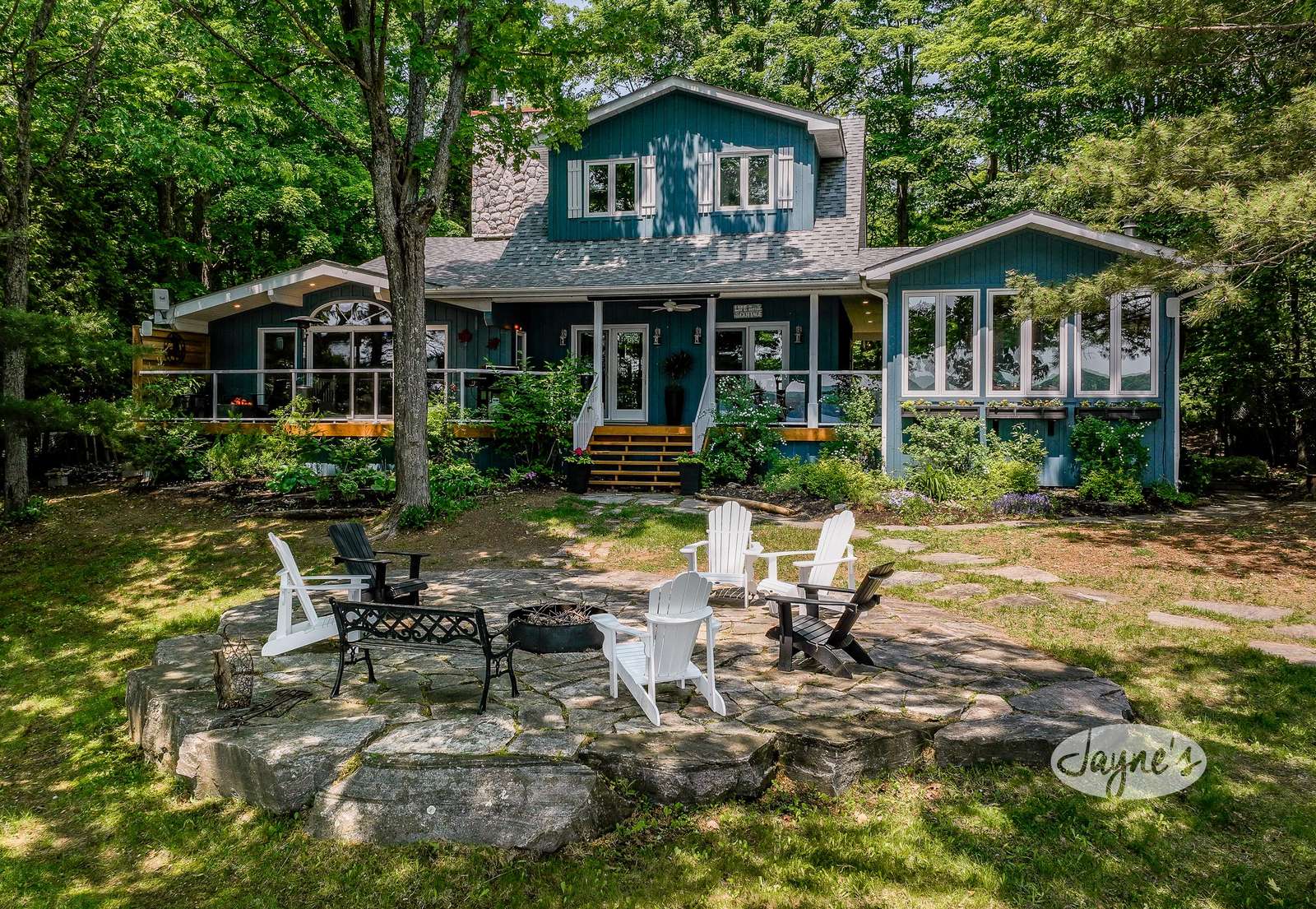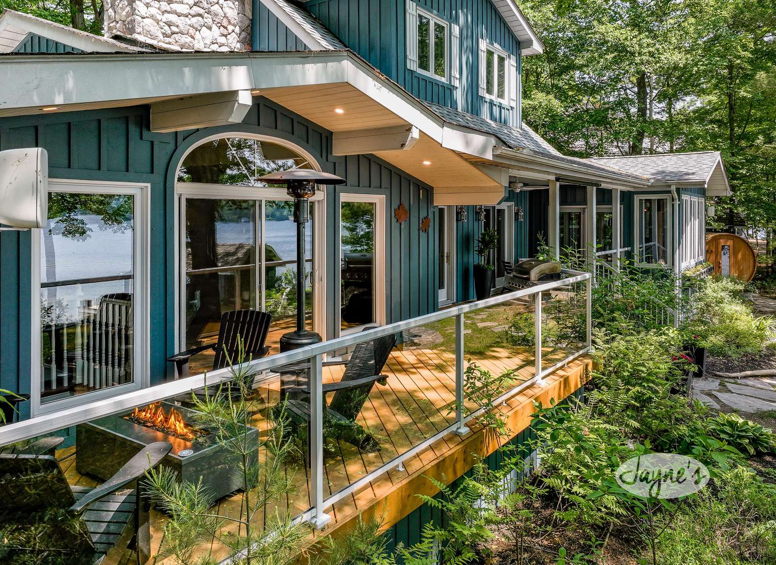 LAZY DAYS ON LAKE OF BAYS - Arrive to the charming cottage where a wrap around veranda warmly welcomes you. As you follow it around back you will be greeted by a panoramic view of Lake of Bays! Off the main living room, the back deck features a cozy seating area surrounding a fire table overlooking the lake. Glass railings ensure the view can be capitalized from every point! Also featured is a BBQ with the best grilling views!