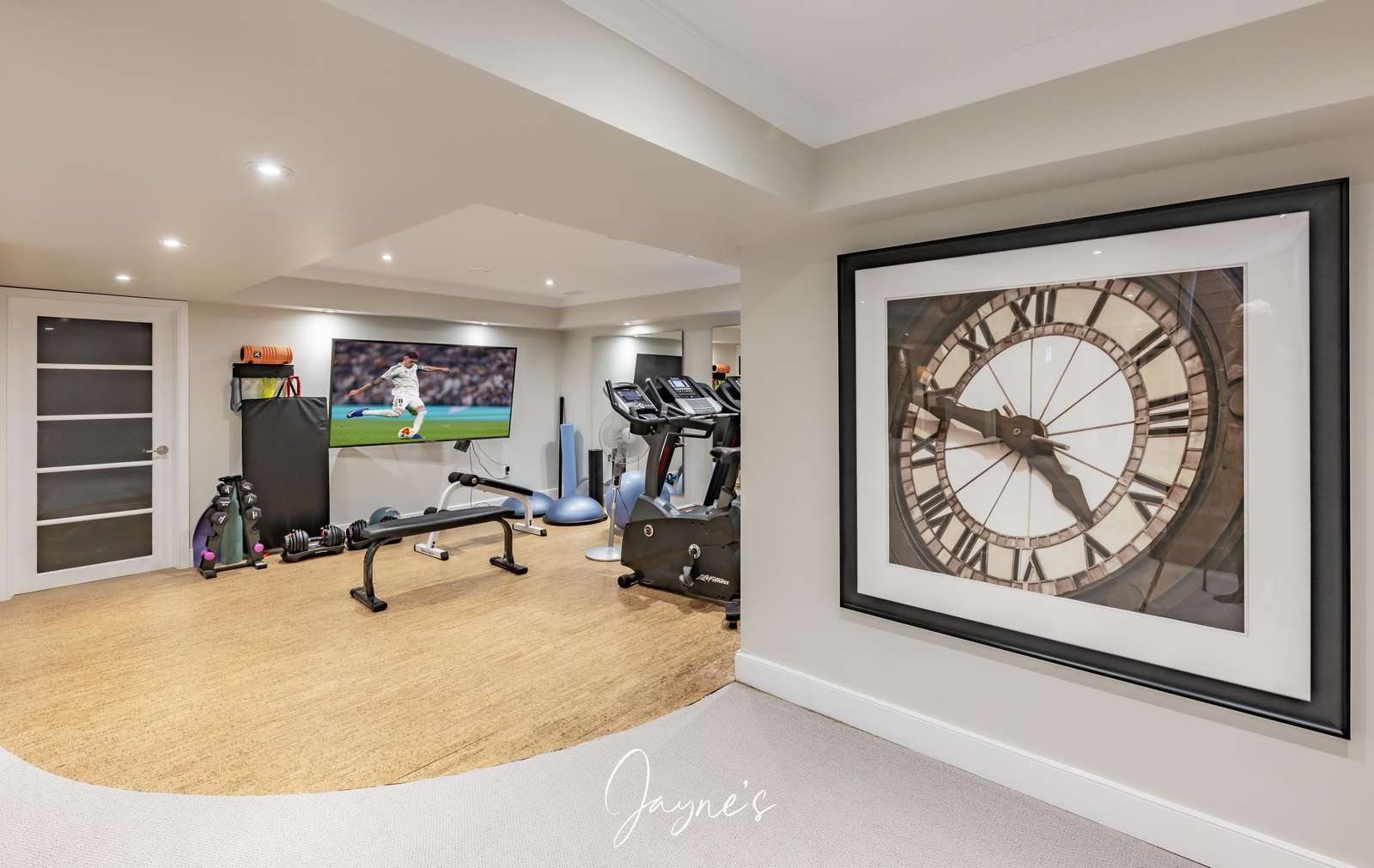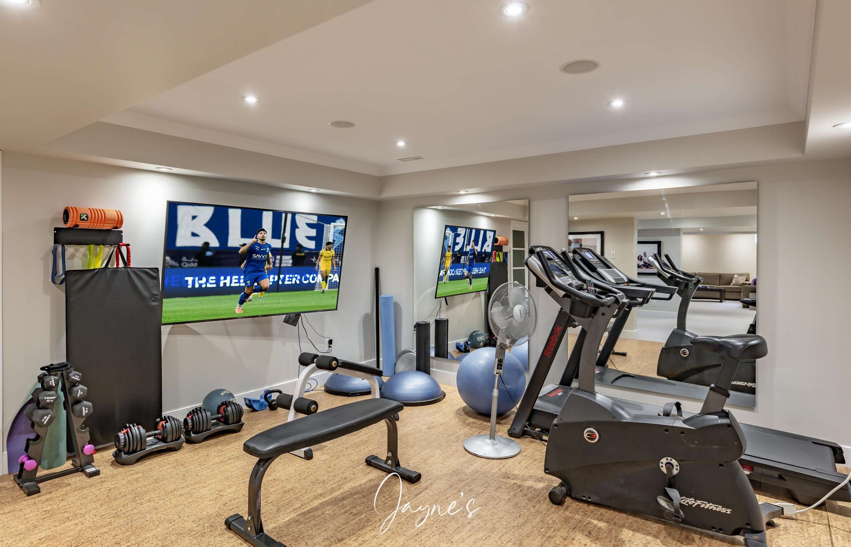 With large TV, treadmill, Bike, free weighs and weight bench - lots of room and mirrored wall