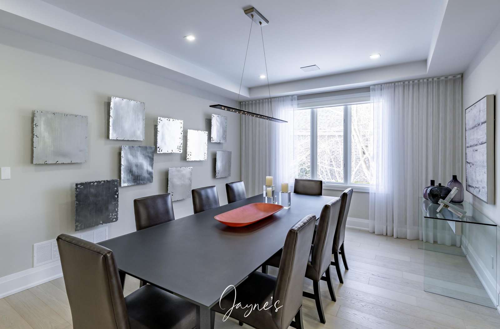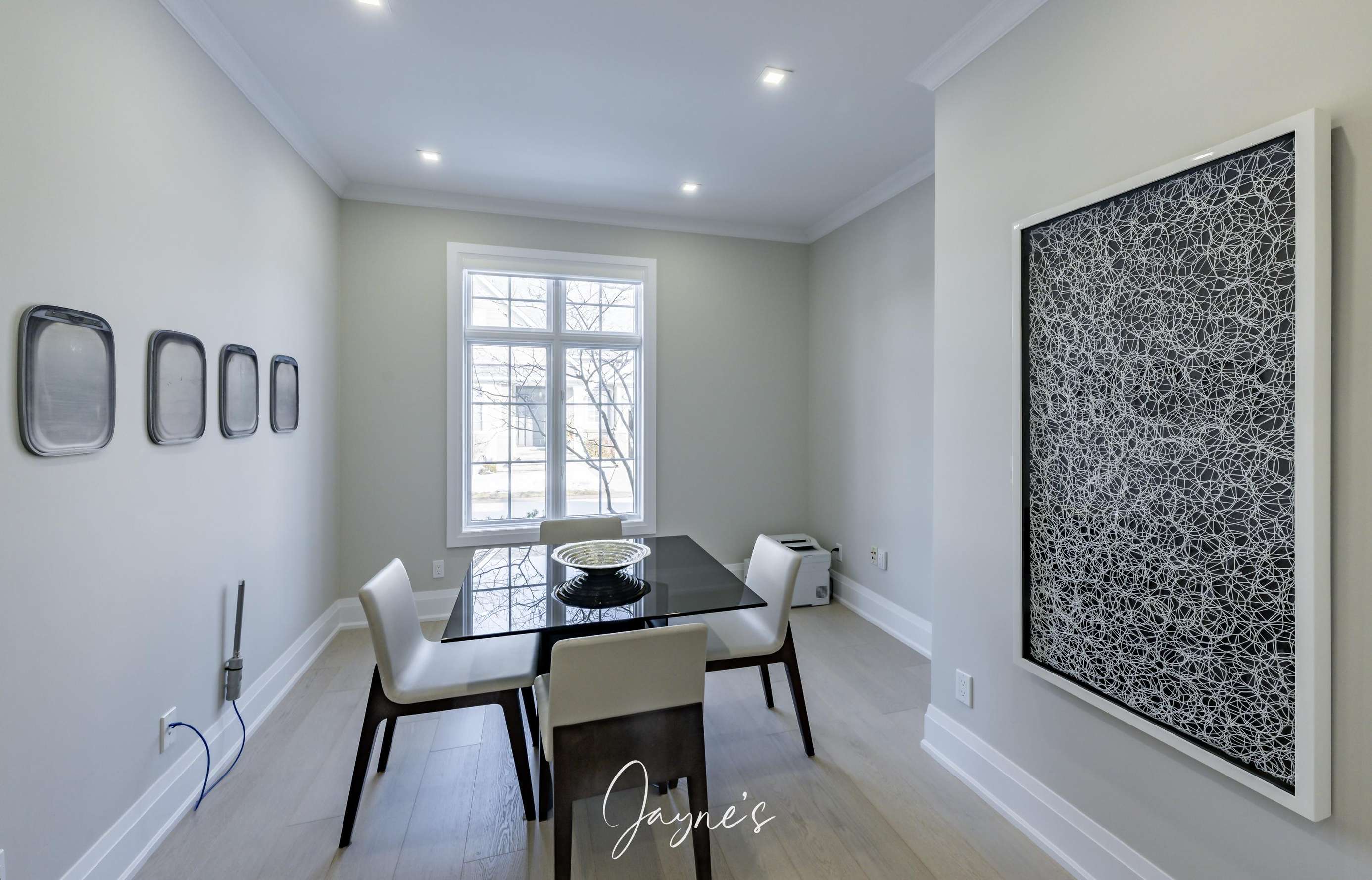Sun filled dining room with dining table to seat 10 as well as an extra table to seat overflow.