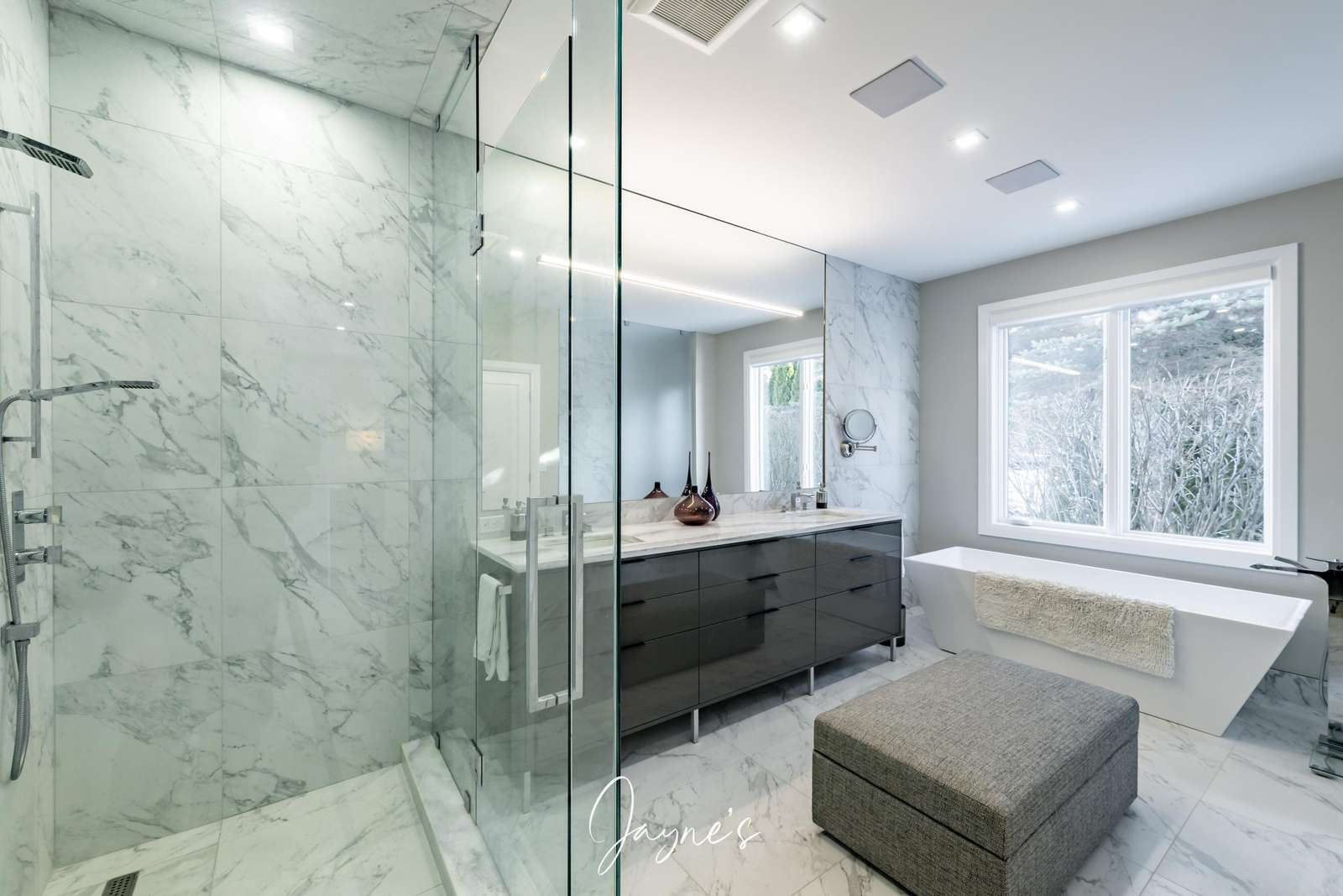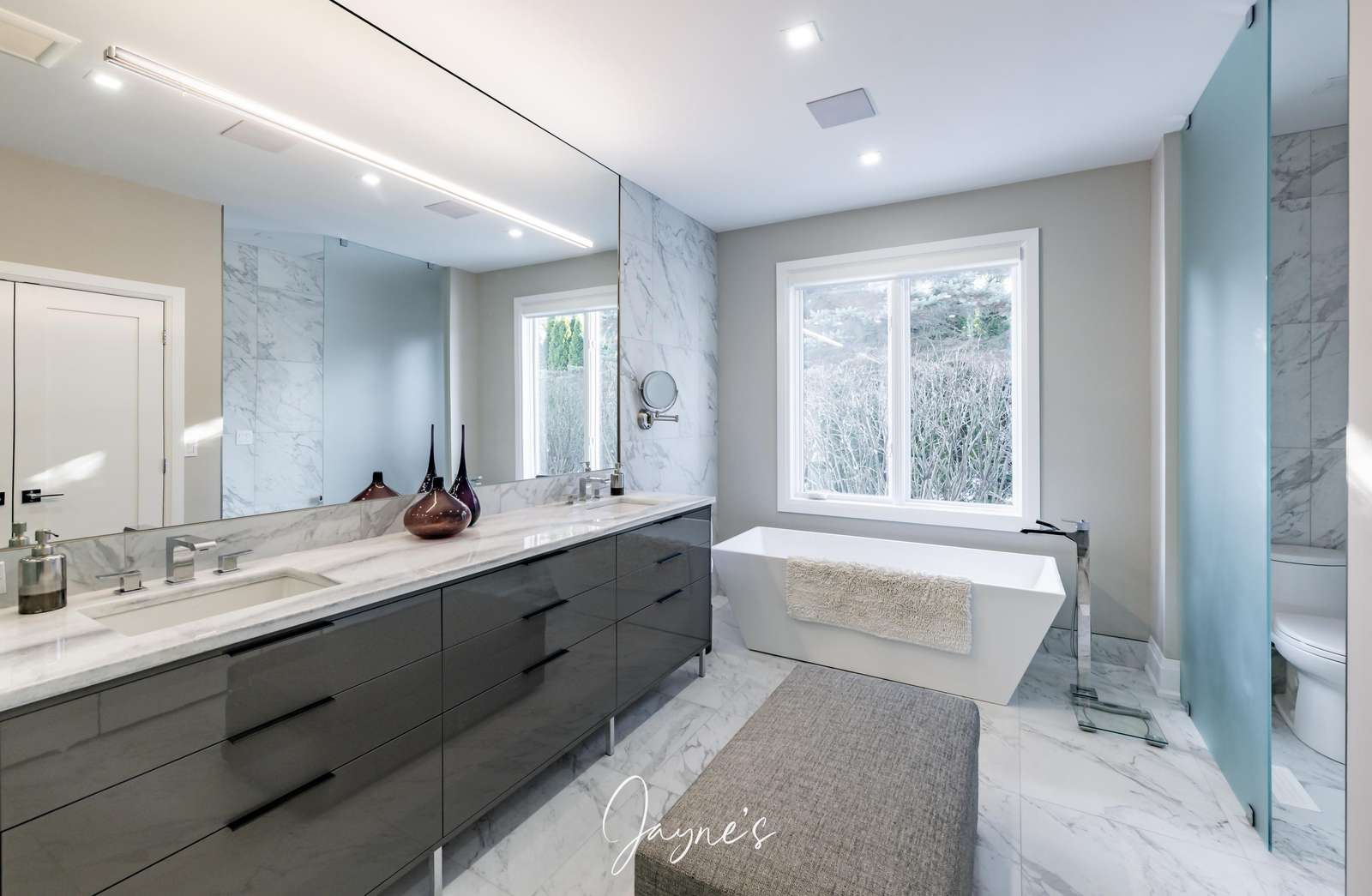 Bathroom 1 - Ensuite bathroom with double vanity, stand alone luxury tub and large glass double shower.