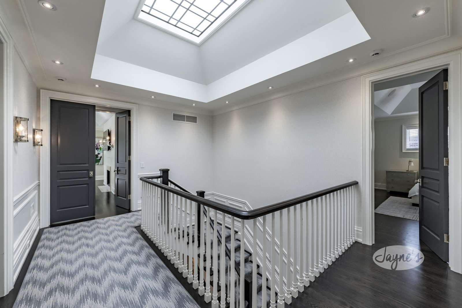 A skylight beams through the staircase to the upper level where 4 bedrooms complete with en-suite bathrooms await, plus a laundry room with front-loading washer and dryer.