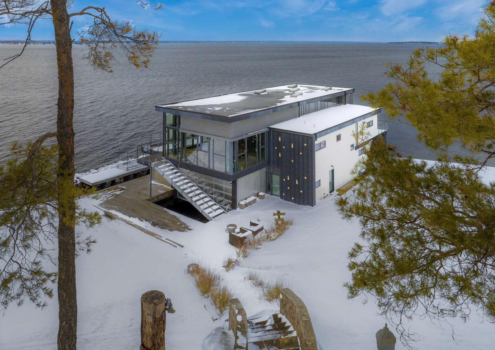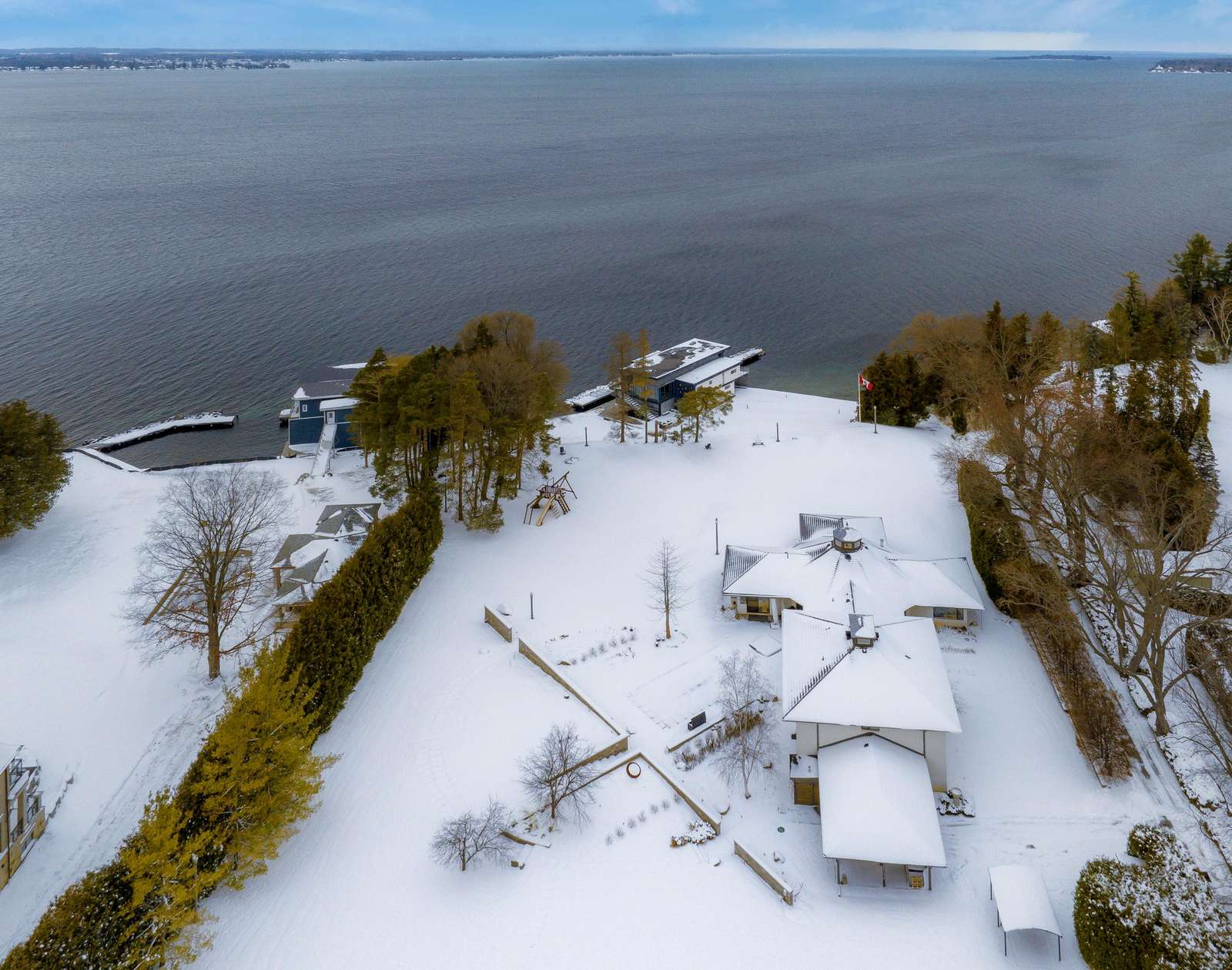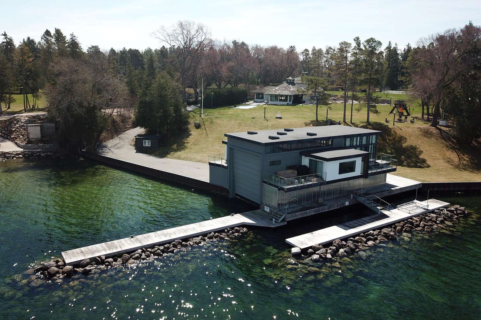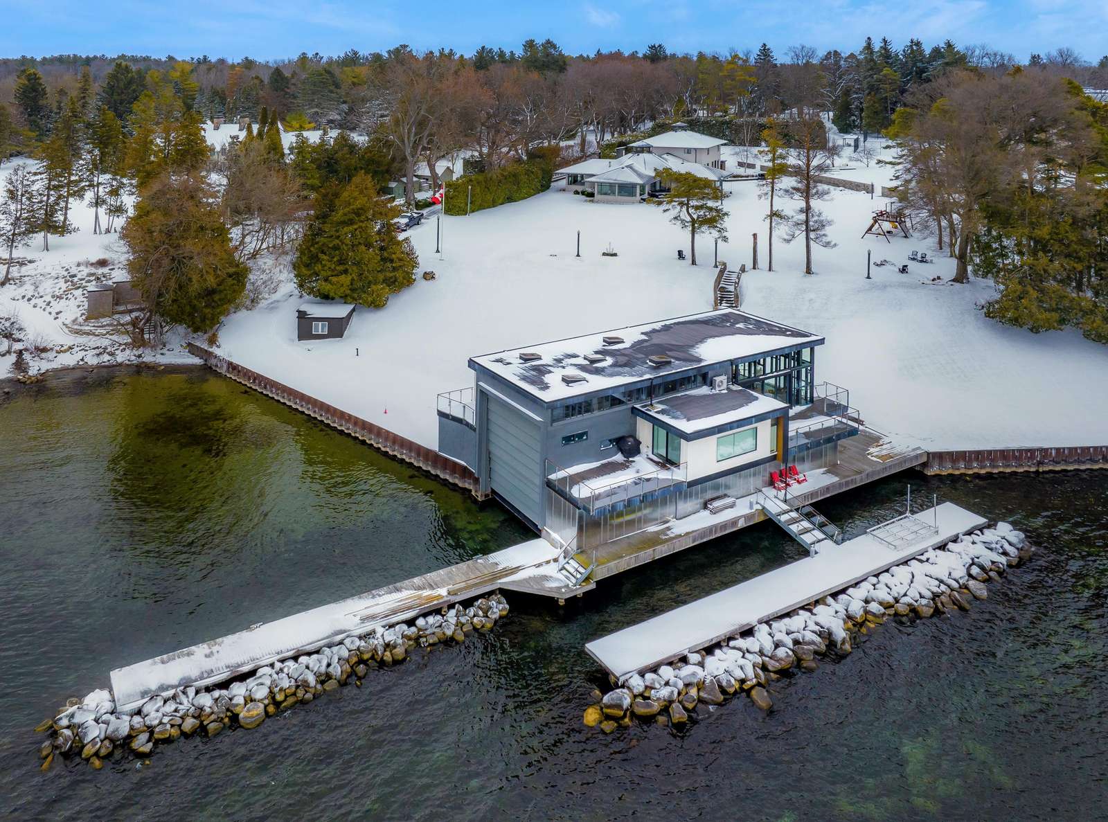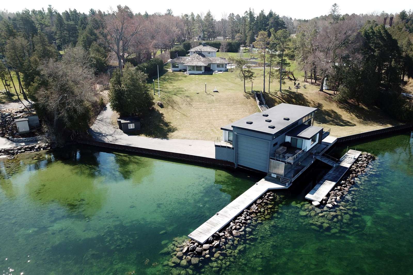 Breathtaking, modern and sleek. As you enter the iron gates down a winding, tree-lined path, this Malibu-style lake house on Lake Simcoeβs prestigious Rocheβs Point, truly has it all.