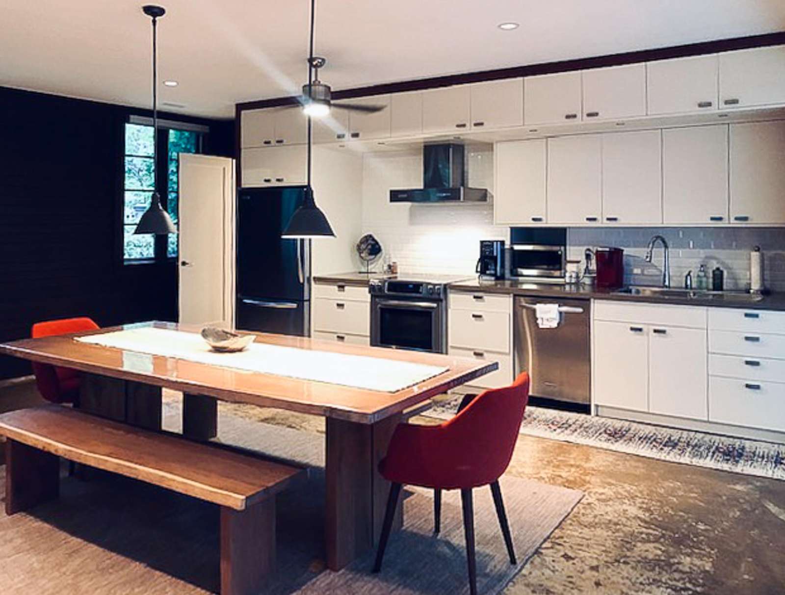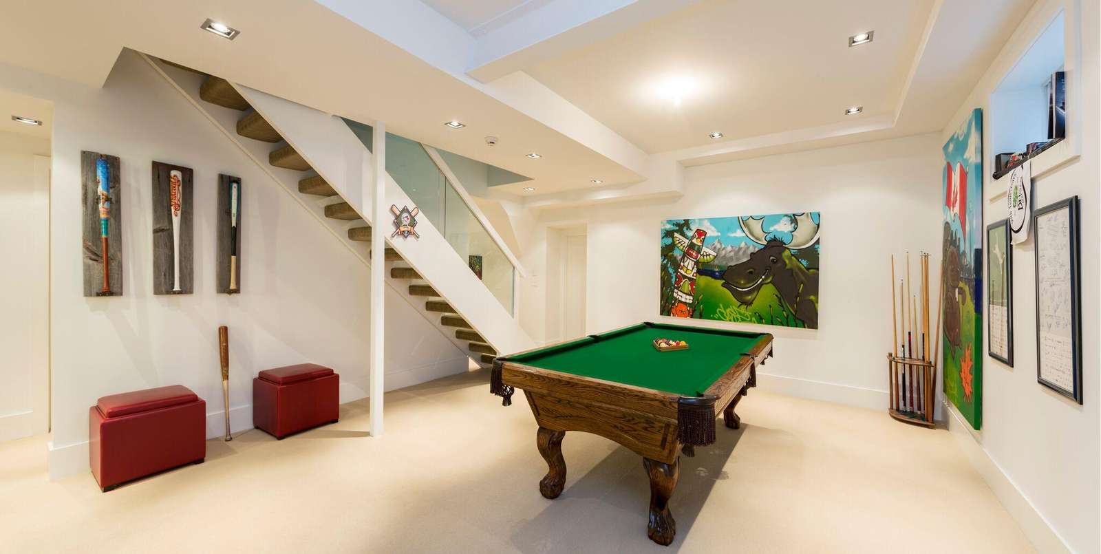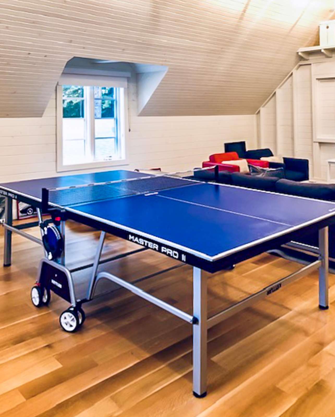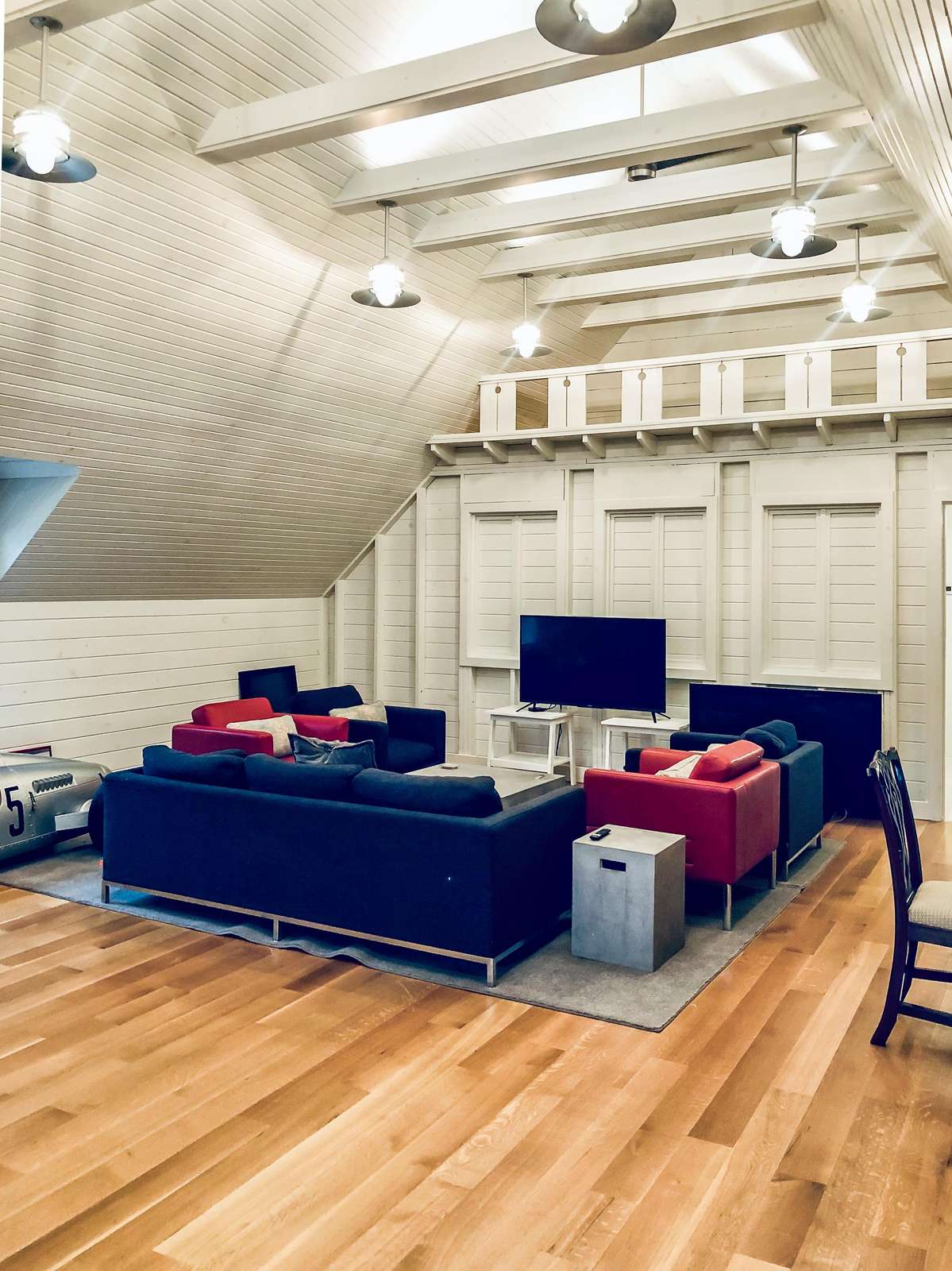 As you enter the propertyβs secondary entrance, the Coach House, from the original property first greets you. The industrial modern farmhouse design has 3 bedrooms, 1.5 bathrooms, full kitchen, living room and a large upstairs games rooms offers a large recreation space with shuffleboard, table tennis, rod hockey and games table.