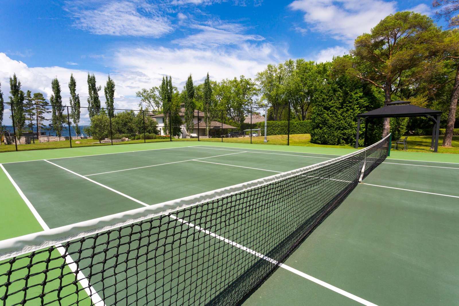 Only an hour drive out of Toronto, this gorgeous escape boasts manicured lawns, colourful gardens, tennis court, pool and a boathouse like no other. Conveniently located 10 minutes from the 404, 5 minutes from sundry shopping, groceries and LCBO. The property has 11 bedrooms, 10 bathrooms, 3 indoor fireplaces, air conditioning in properties, 3 outdoor fire pits outside, 2 games rooms, a full commercial gym and a theatre.