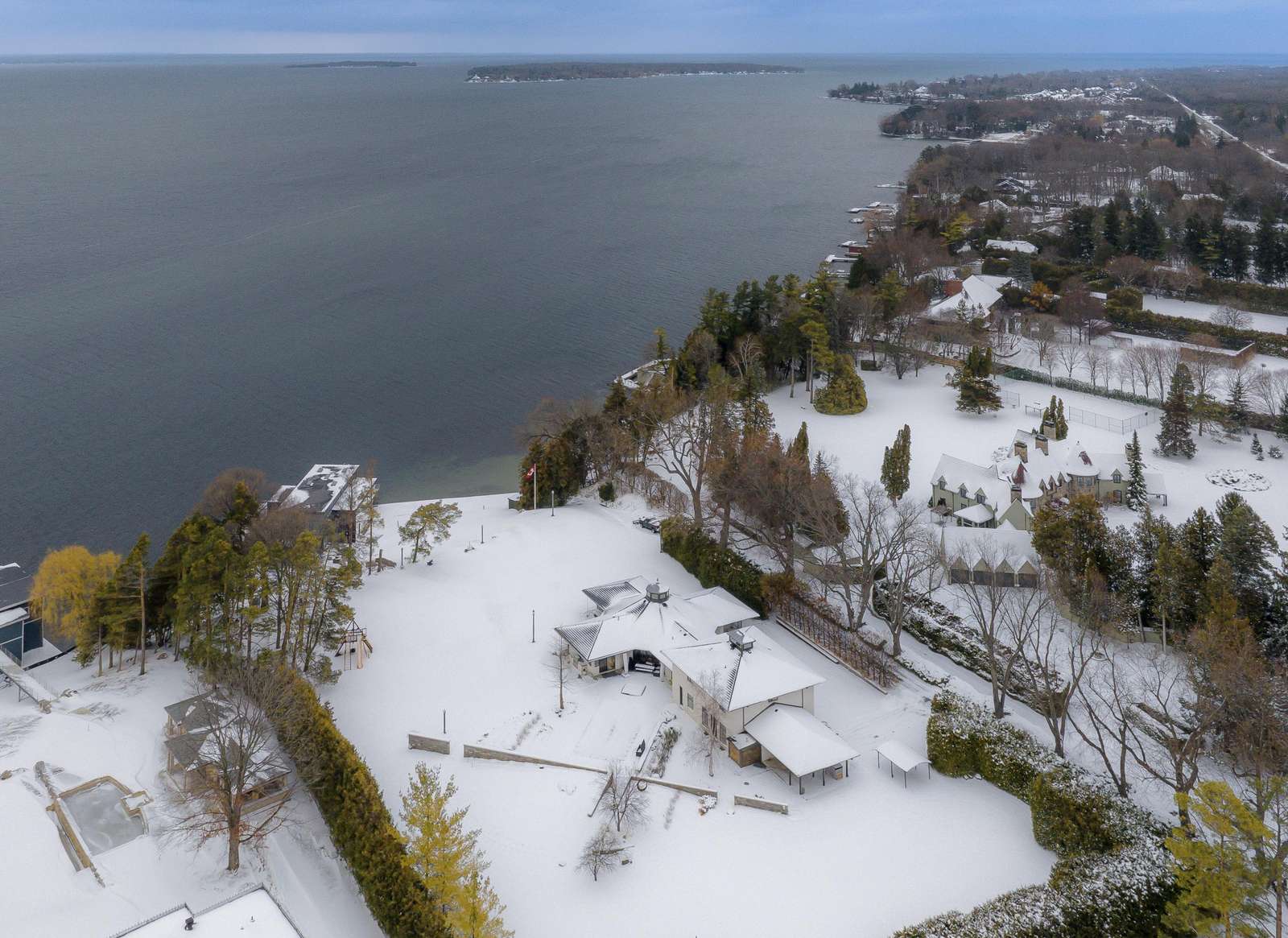 Opening into a grand foyer, you instantaneously feel relaxed looking out onto the pool, hot tub and BBQ. Split into two wings, this home provides both an area for people to congregate and seclusion. You are met with breathtaking views of Lake Simcoe through the great room. The dining area hosts a harvest style table that seats 16+ offers the perfect setting for any family gathering. Distinctive architectural design ties this space together like the one-of-a-kind wooden cathedral ceiling with custom lighting. With a stunning fireplace, this space extends to a sitting room with beautiful lake viewβs and TV room that can be closed off with large pocket style doors. The open concept kitchen with large centre island and corian counter tops is perfect for entertaining. Giving you both pool and lake views while keeping you in the centre of the action inside the cottage, this kitchen has 2 sub-zero refrigerators, 2 dishwashers, wine fridge, wolf oven, espresso machine and seating for 6. To the right, the main house offers 8 bedrooms, 5 bathrooms, 2 gas fireplaces and fully equipped workout room. For those rainy days, we have a host of games, a theatre room and gameβs room with a dartboard and pool table to keep you entertained.