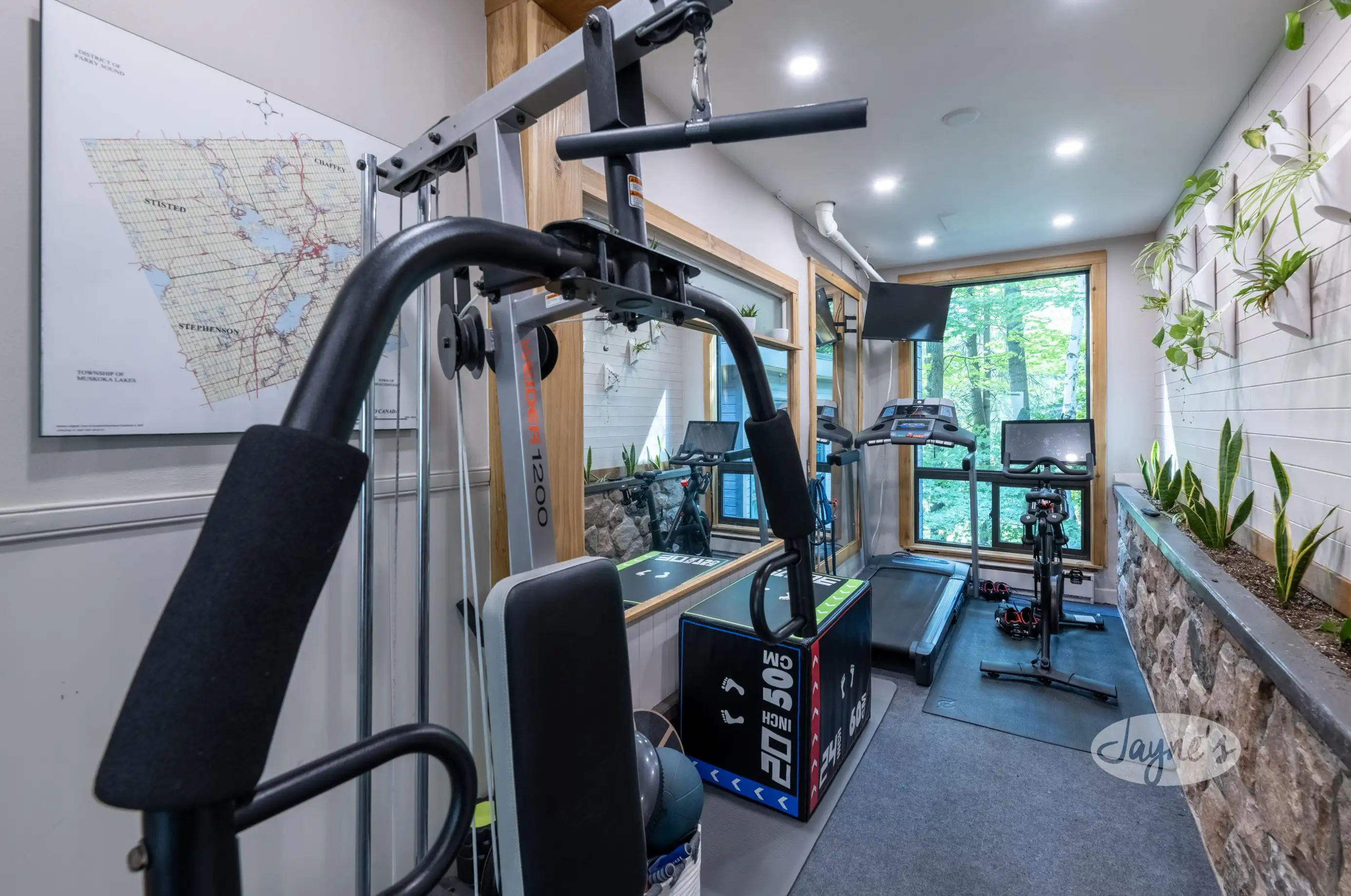 Equipment includes a treadmill, Peloton, TV, punching bag, Adjustable Aerobic Stepper, cube for Box Jump exercises and free weights. Access to outdoor same room.