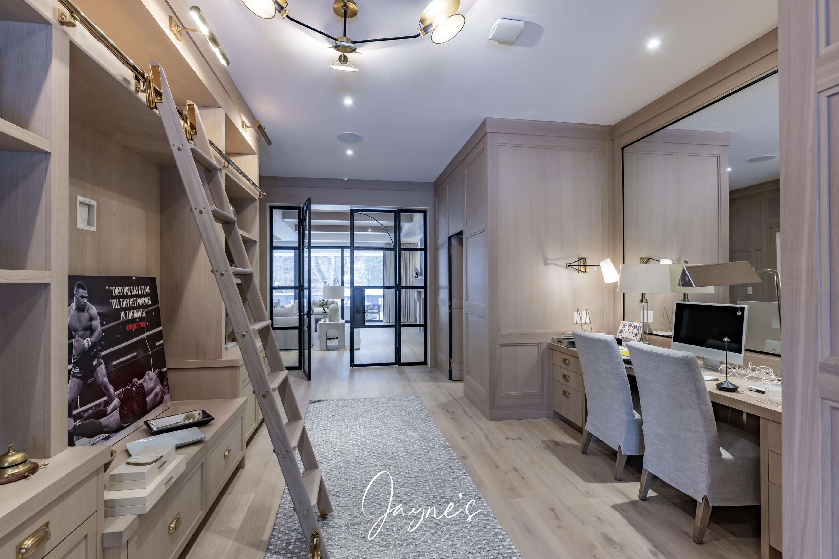 Behind the living room, a private office space offers the perfect "work-from-home" solution, with a private powder room.