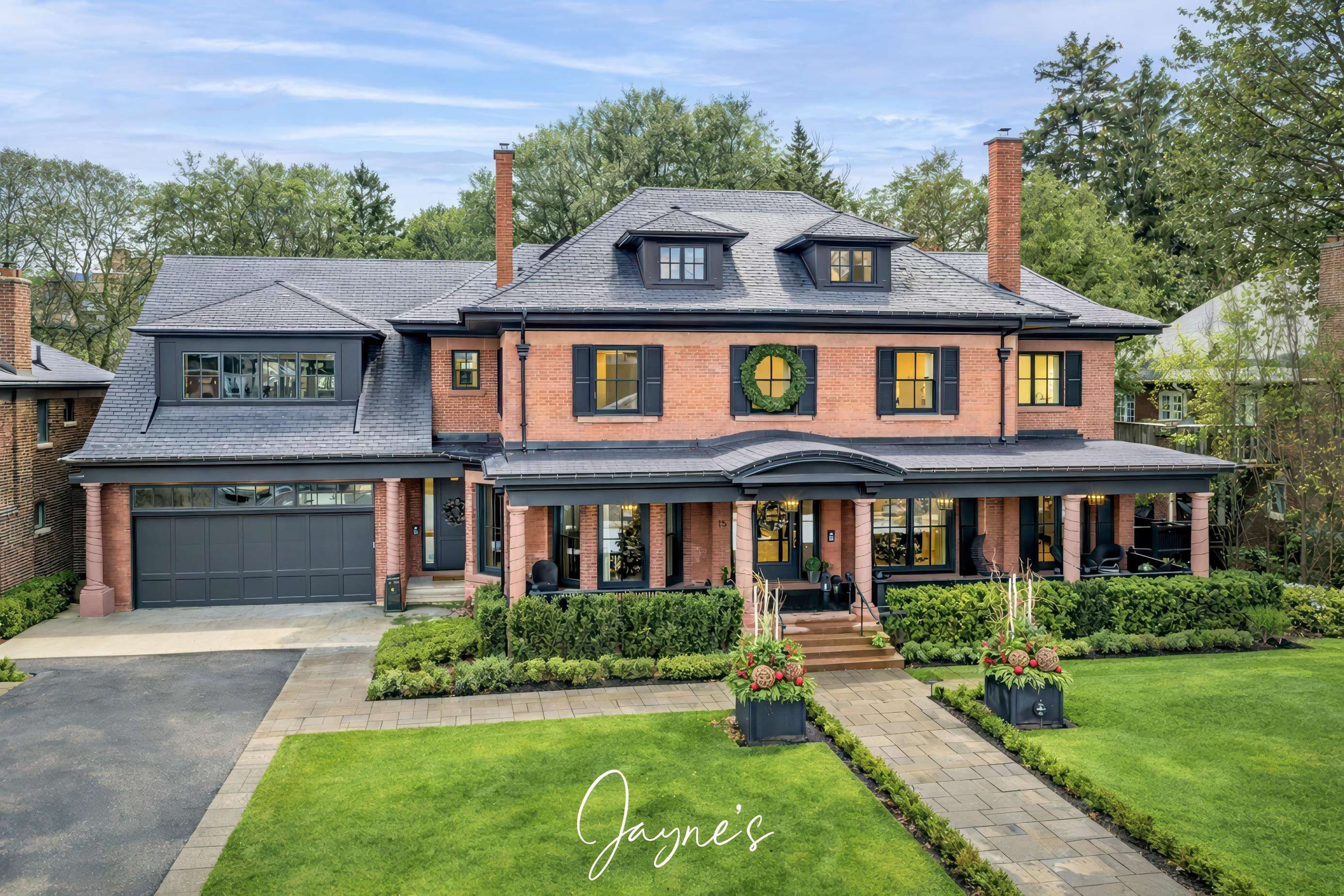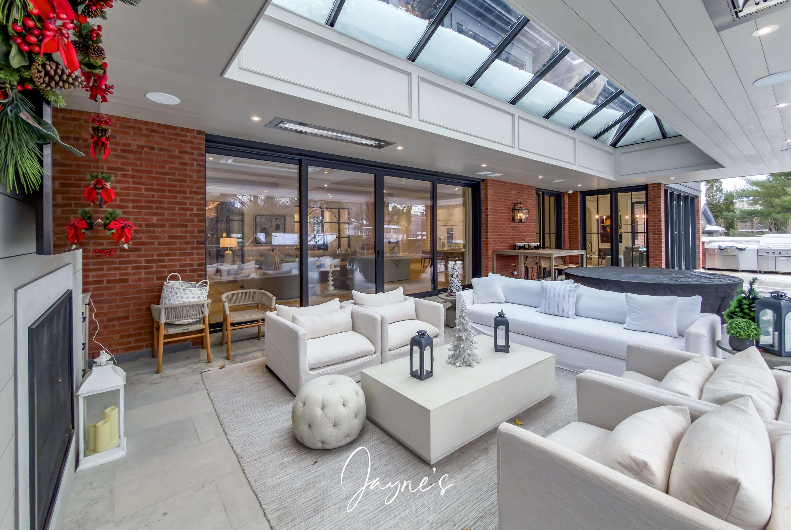 MIDWOTN OPULENCE - From the moment you turn into the driveway, you will be impressed by the strong curb appeal of this property. A classic red brick house, adorned with perennial gardens and interlocking stone invite you in to explore more. Around back, an outdoor oasis awaits your presence. Watch a game beneath the covered patio which offers plush seating around a gas fireplace. Soaring above, a skylight spans the length of the patio. Enjoy cooking in the built-in 6 burner BBQ area where a round dining table for 8 is featured.