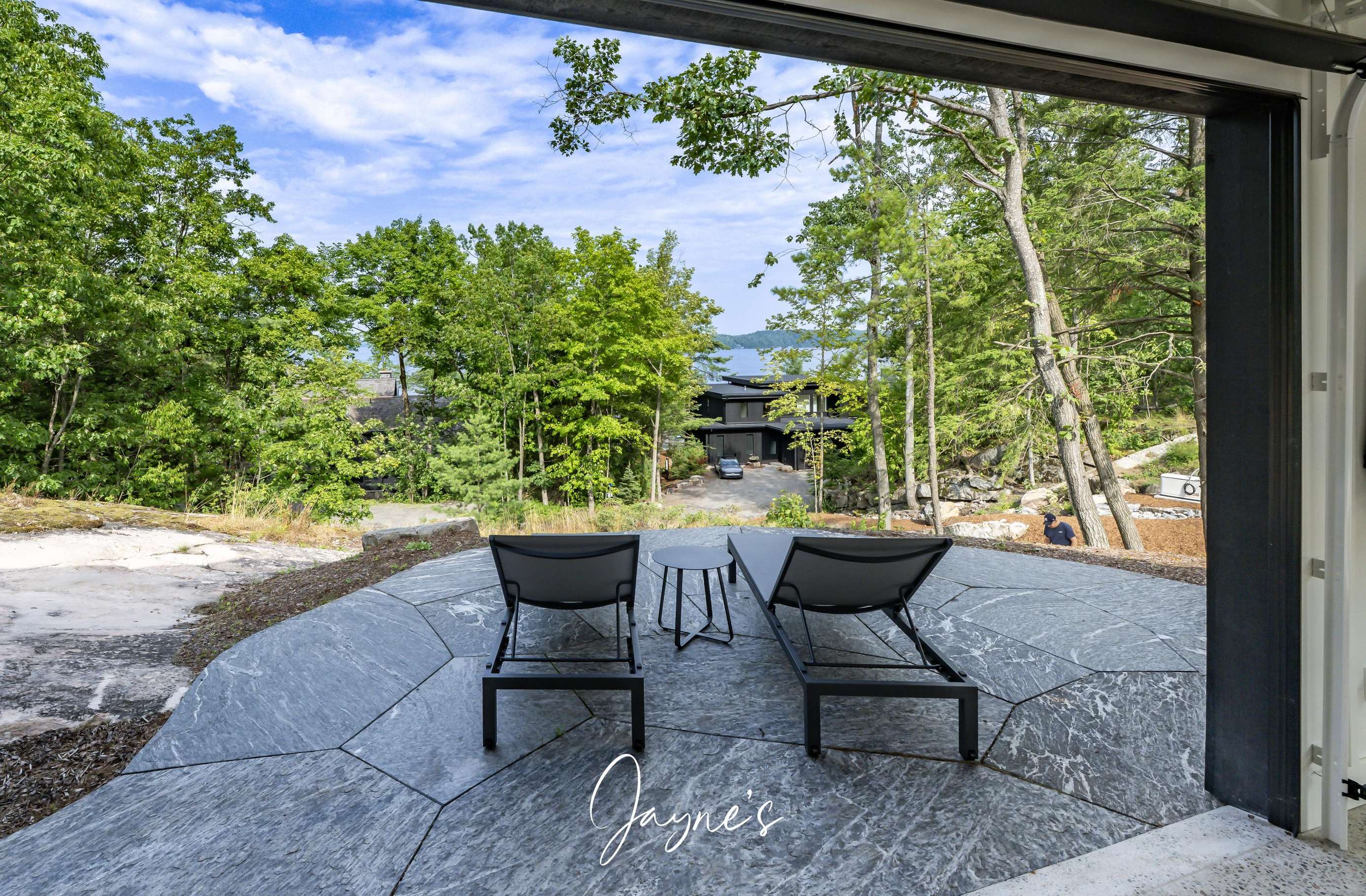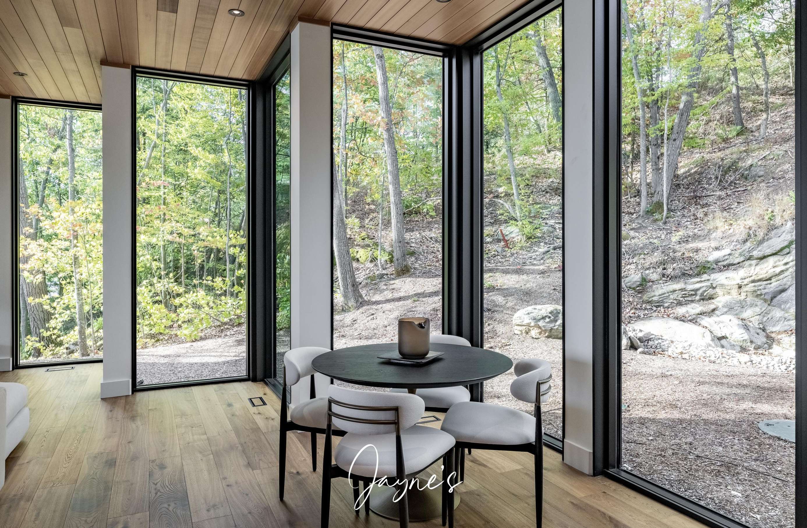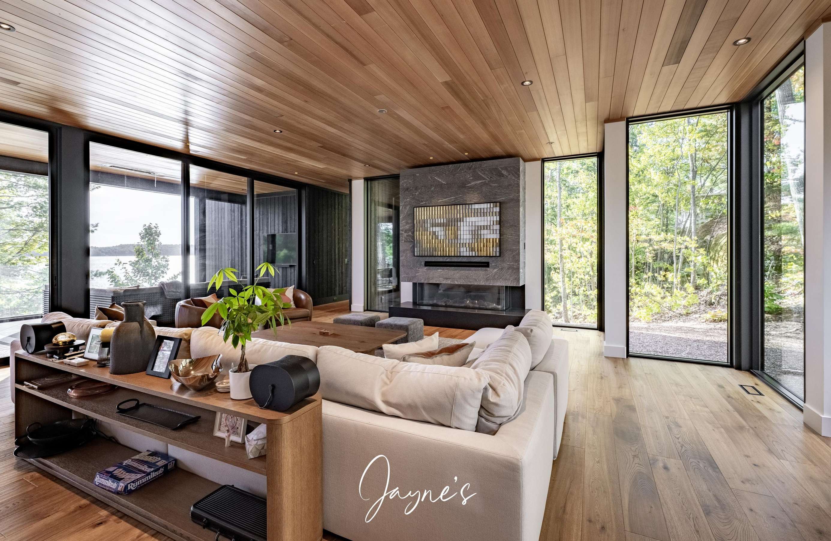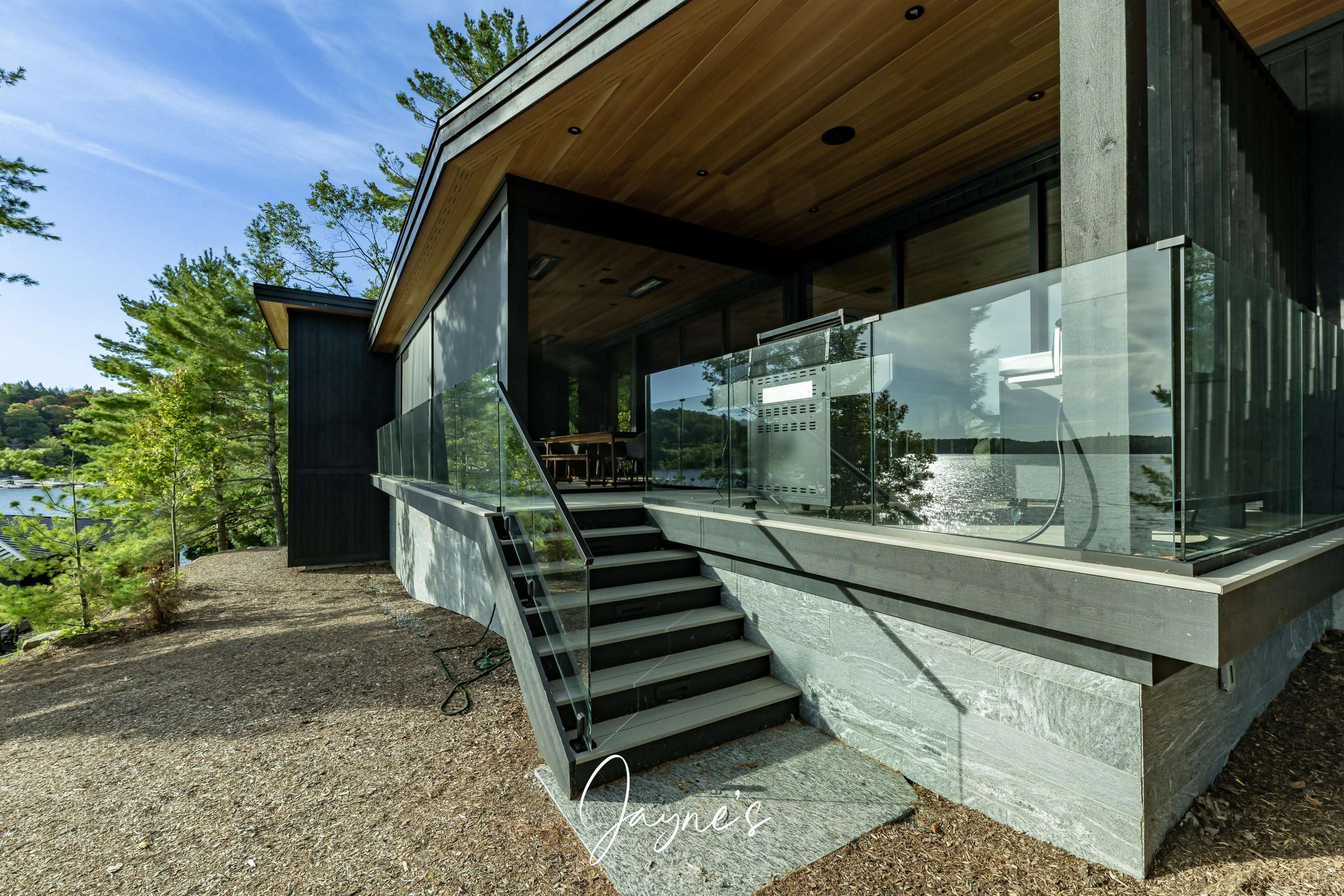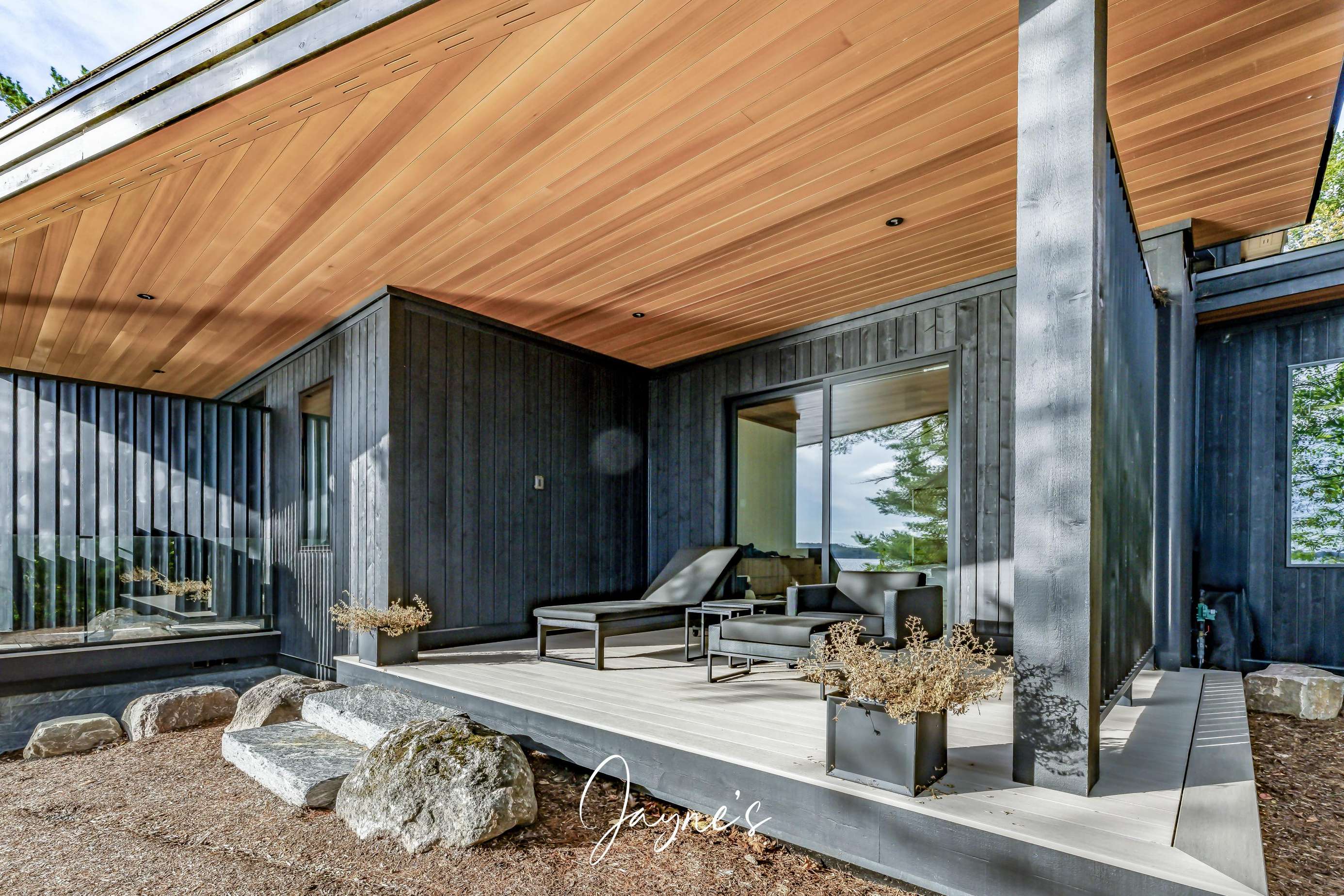 MODERN FUNHOUSE - A sweeping road framed by towering pine trees winds through the forest and brings you to the immaculate Modern Funhouse. Atop the property a Tennis Studio is complimented by a tennis court and a pickleball court with surrounded by beautiful Muskoka rock.