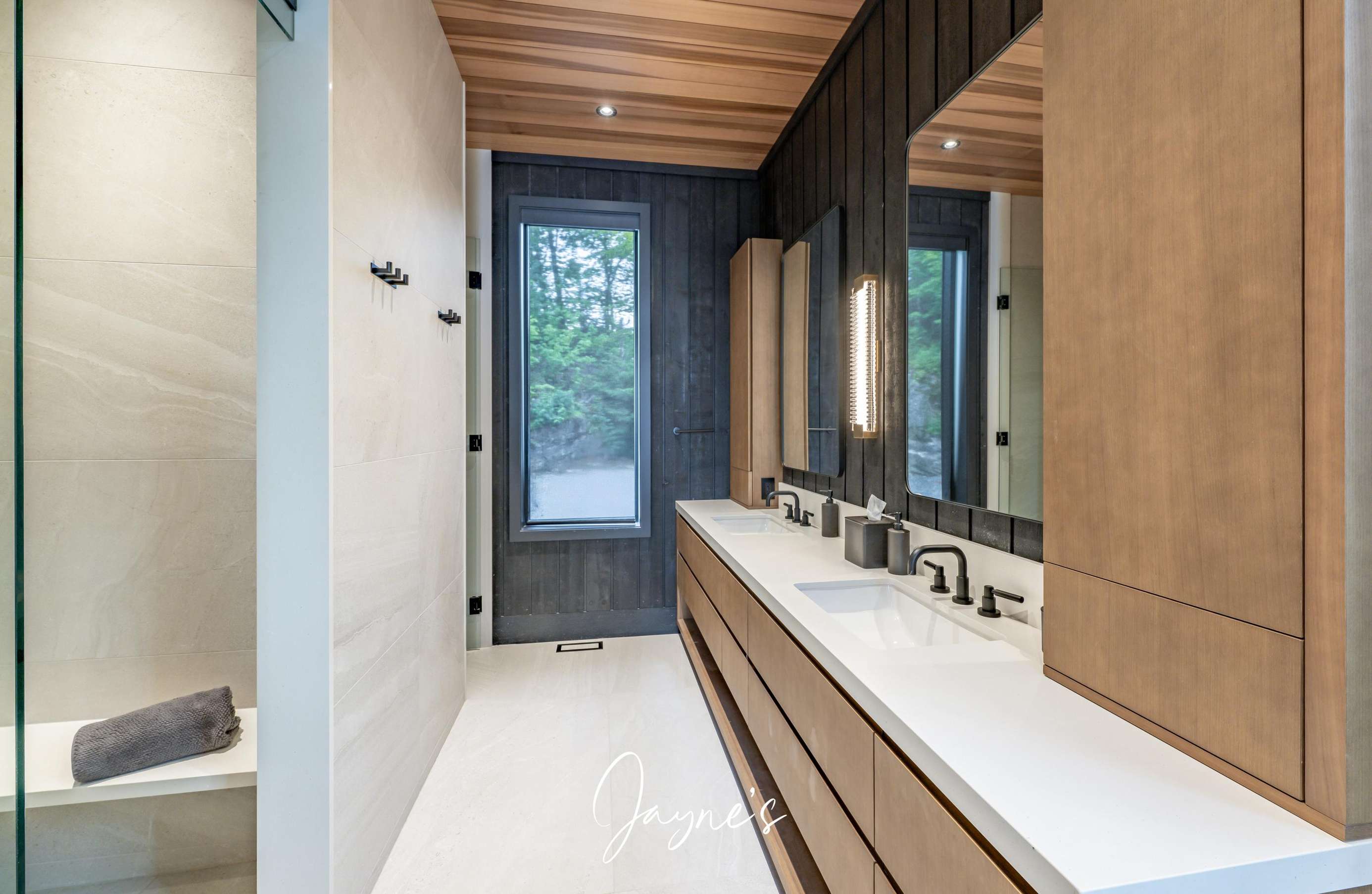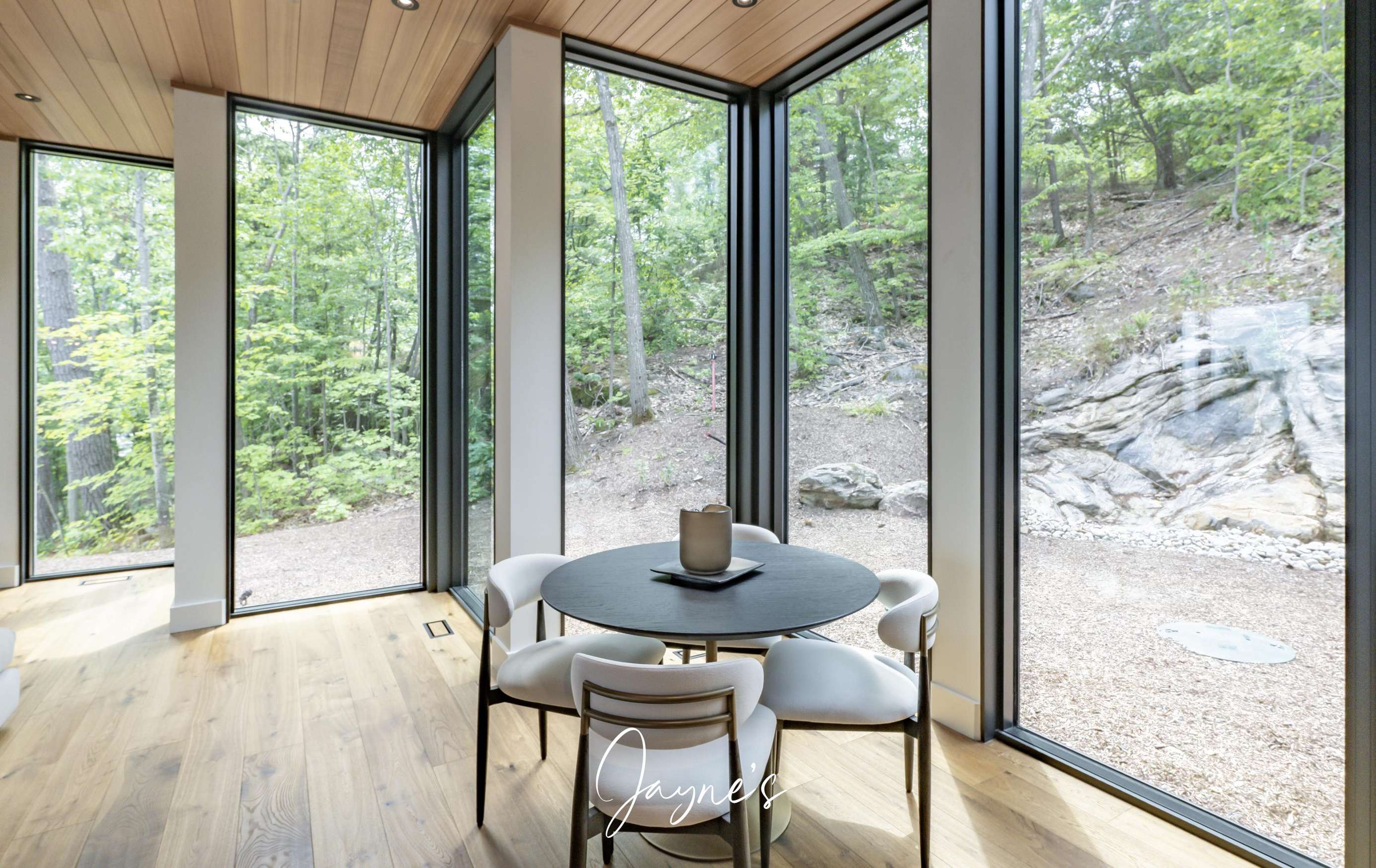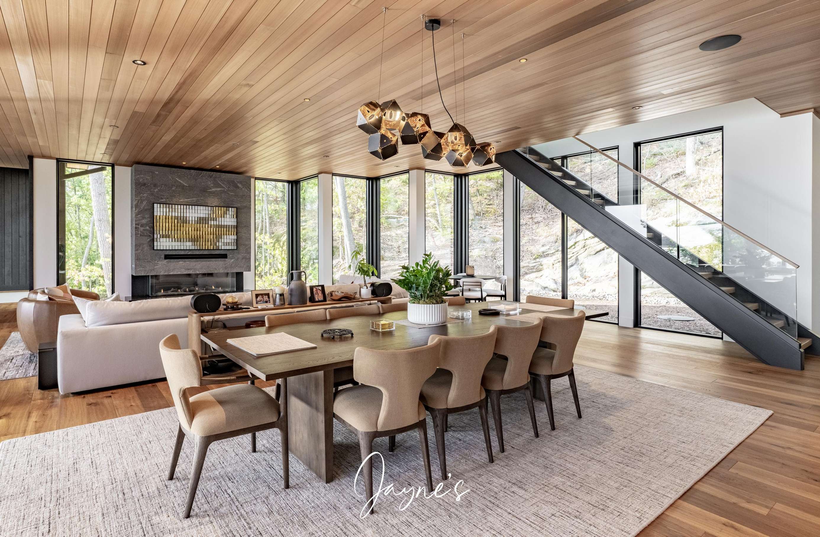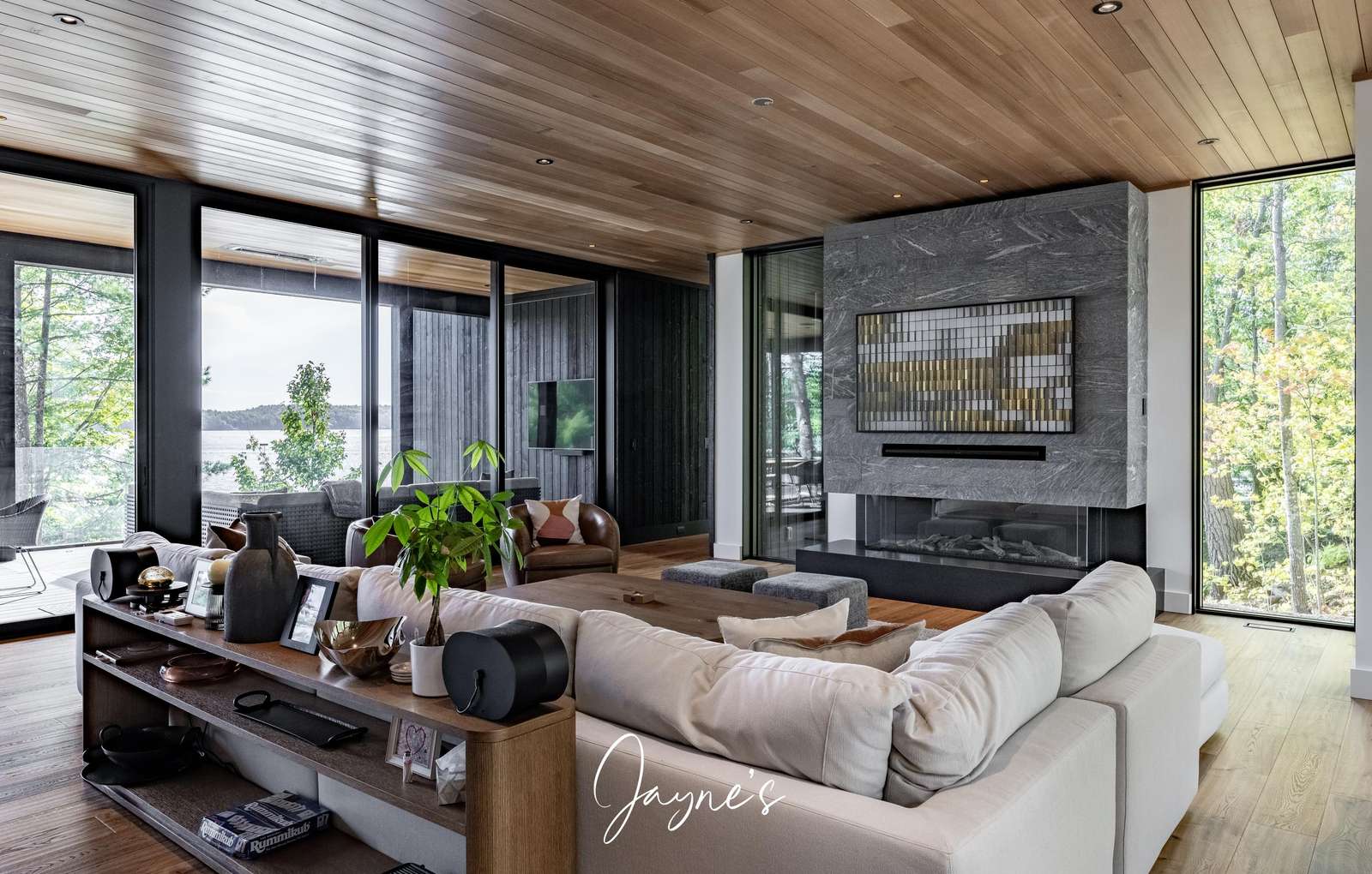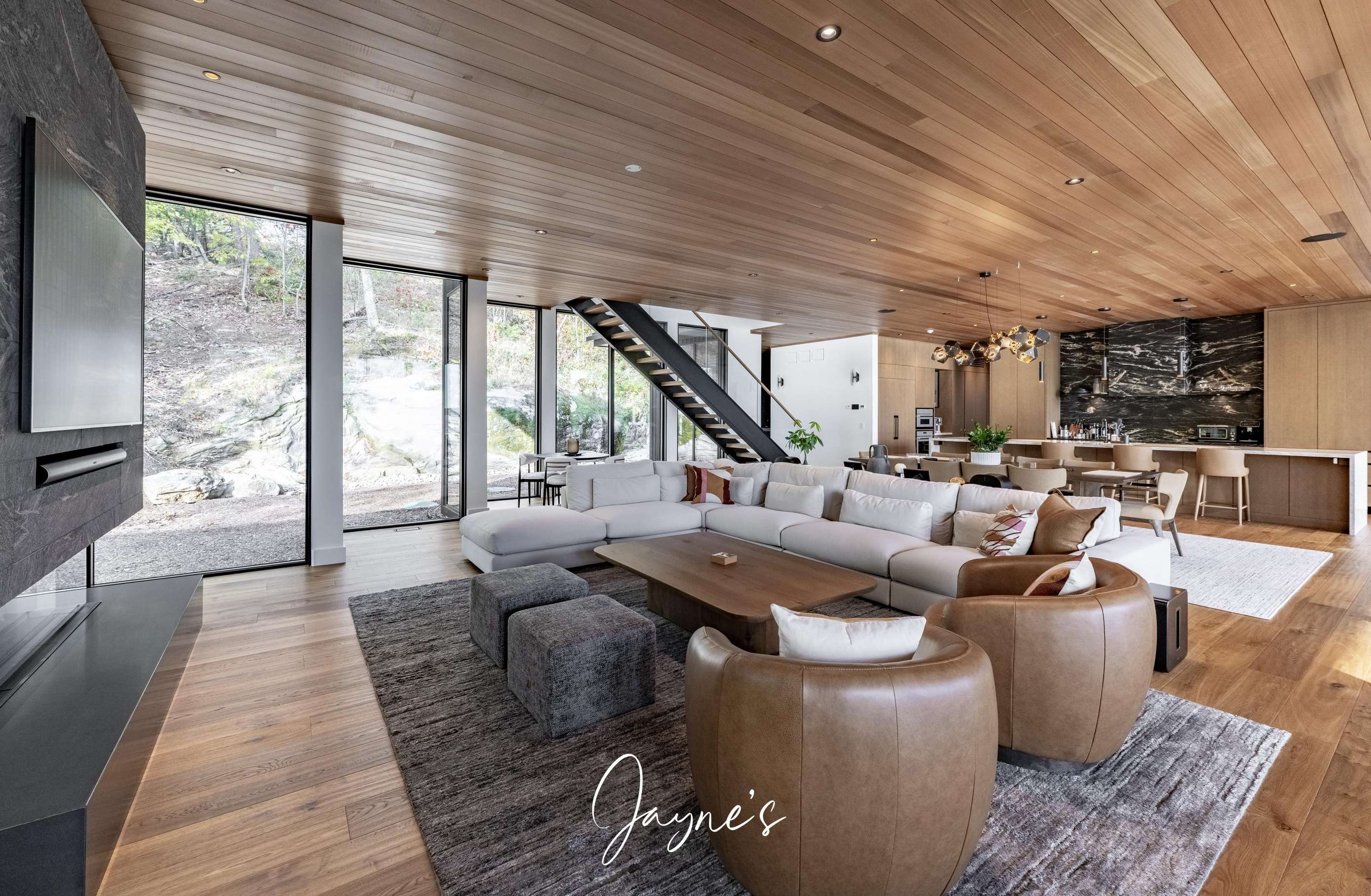 MODERN FUNHOUSE - A sweeping road framed by towering pine trees winds through the forest and brings you to the immaculate Modern Funhouse. Atop the property a Tennis Studio is complimented by a tennis court and a pickleball court with surrounded by beautiful Muskoka rock.