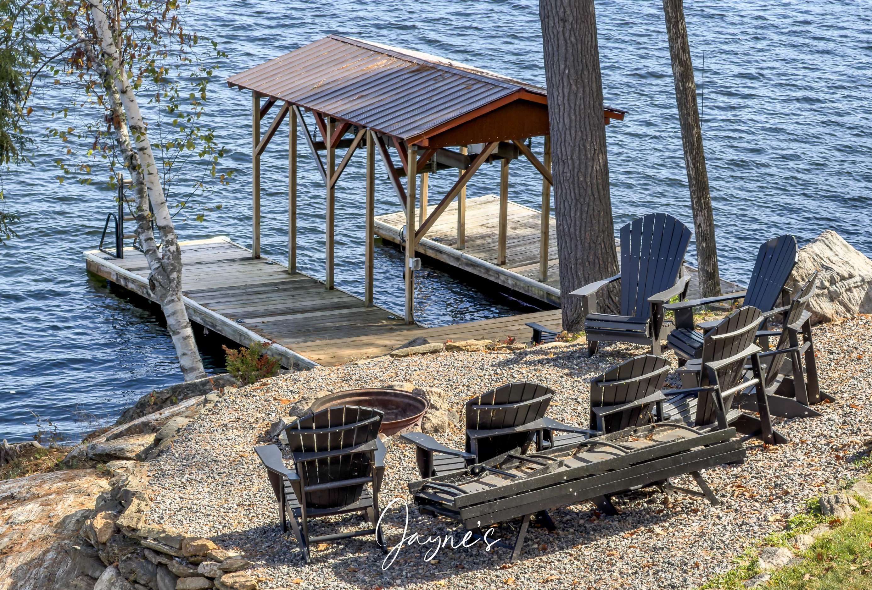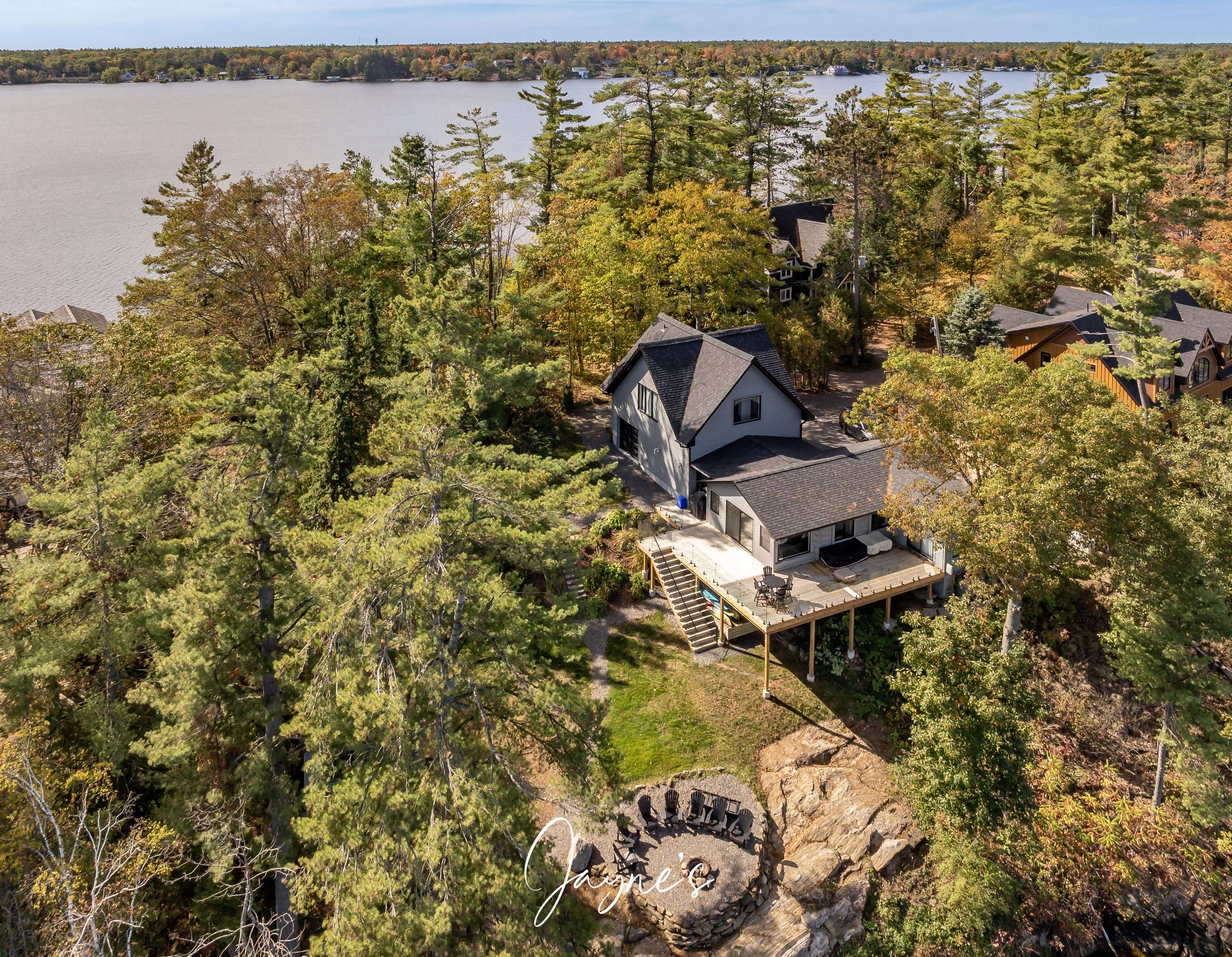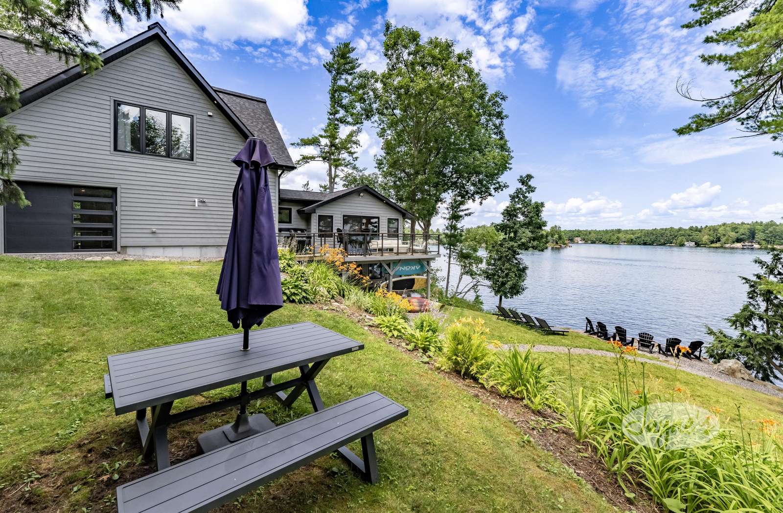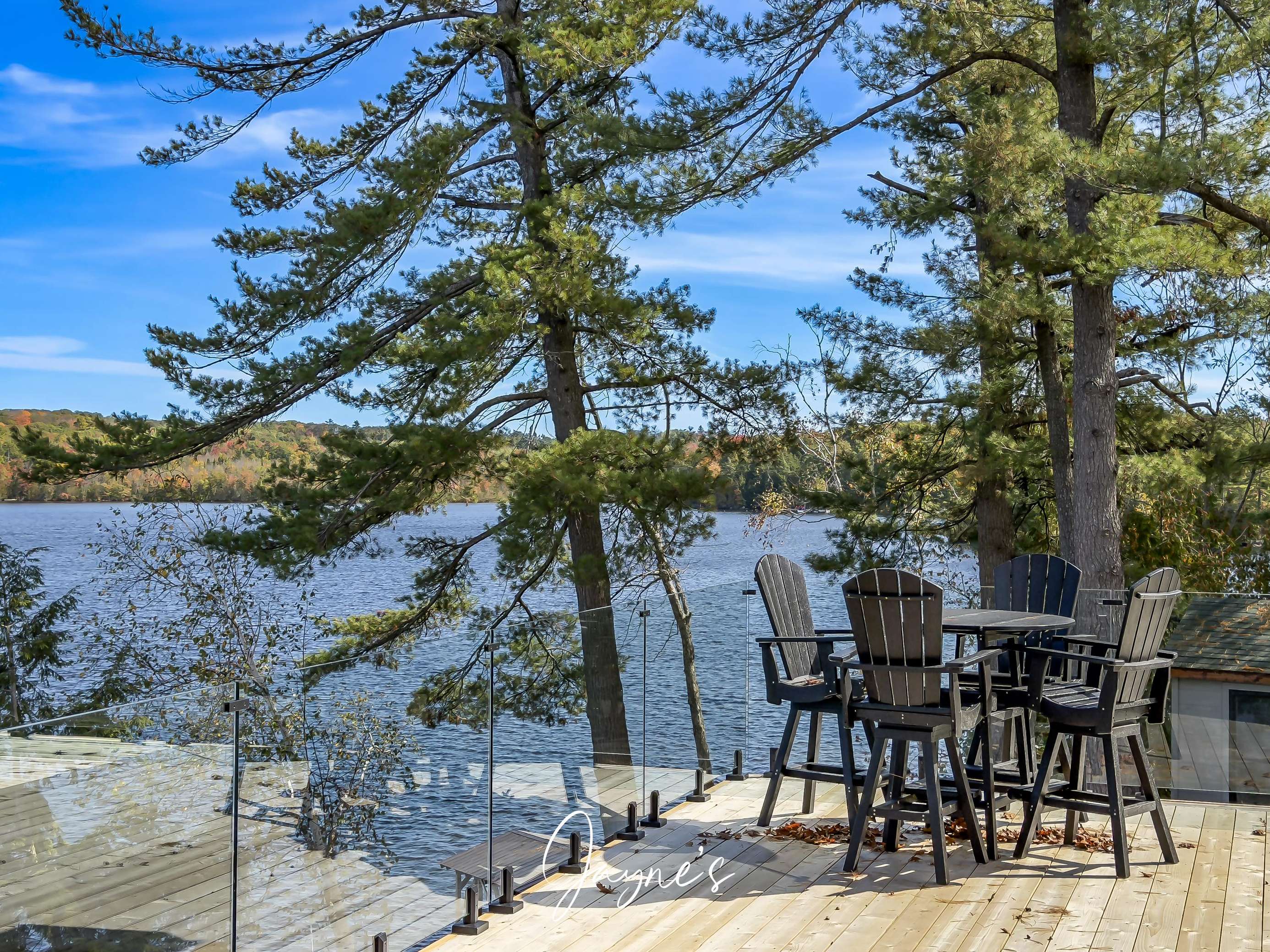 PARKERS POINT rests on a stunning property at the end of a peninsula on the south west side of Lake Muskoka. With water surrounding the point on three sides, Parkers Point provides renters with an authentic Muskoka experience! With multiple outdoor seating areas, there are many vantage points to take in the views while supervising the children. The deck is located right off of the great room and features 4 high-top Muskoka chairs with a matching round table. A propane BBQ and 2 additional Muskoka chairs sit on opposite ends of the deck, making this the perfect place to entertain! The deck leads you towards level grassy land that gently slopes towards the waterfront. The grassy lawns and 148 feet of frontage makes this destination a wonderful place for families of all ages. On your way to the water, you will notice a beautiful Muskoka-esque rock face that is level to the land. Beside the rock sits the fire pit with 5 Muskoka chairs looking out into the surrounding bay. The winterized bunkie and children's play-set sits not far away. A naturally designed stone walkway brings you down towards the timber frame boathouse with docks on either side. 2 Muskoka chairs sit beside the open-concept boathouse that offers 1-slip for boat docking.