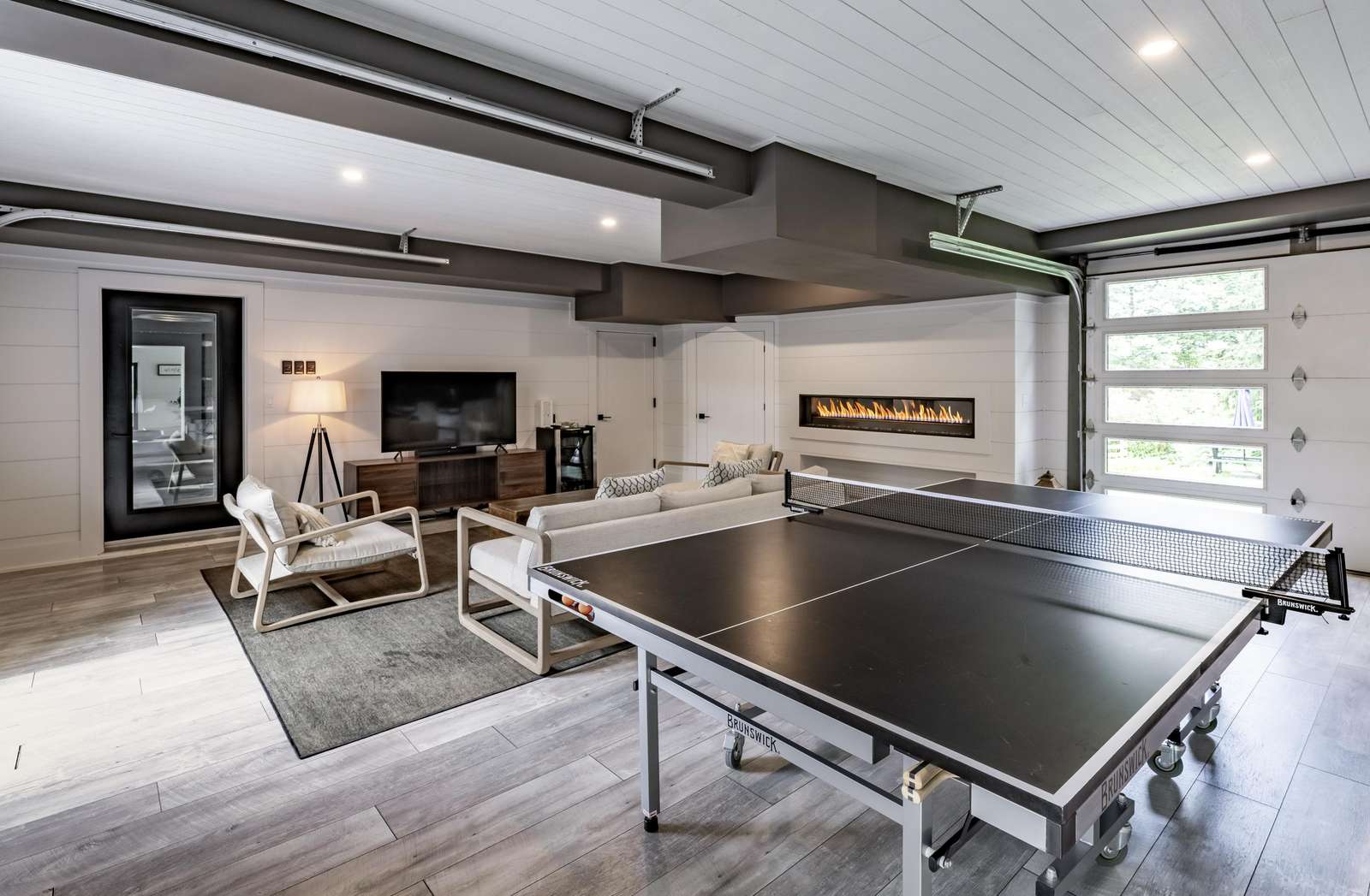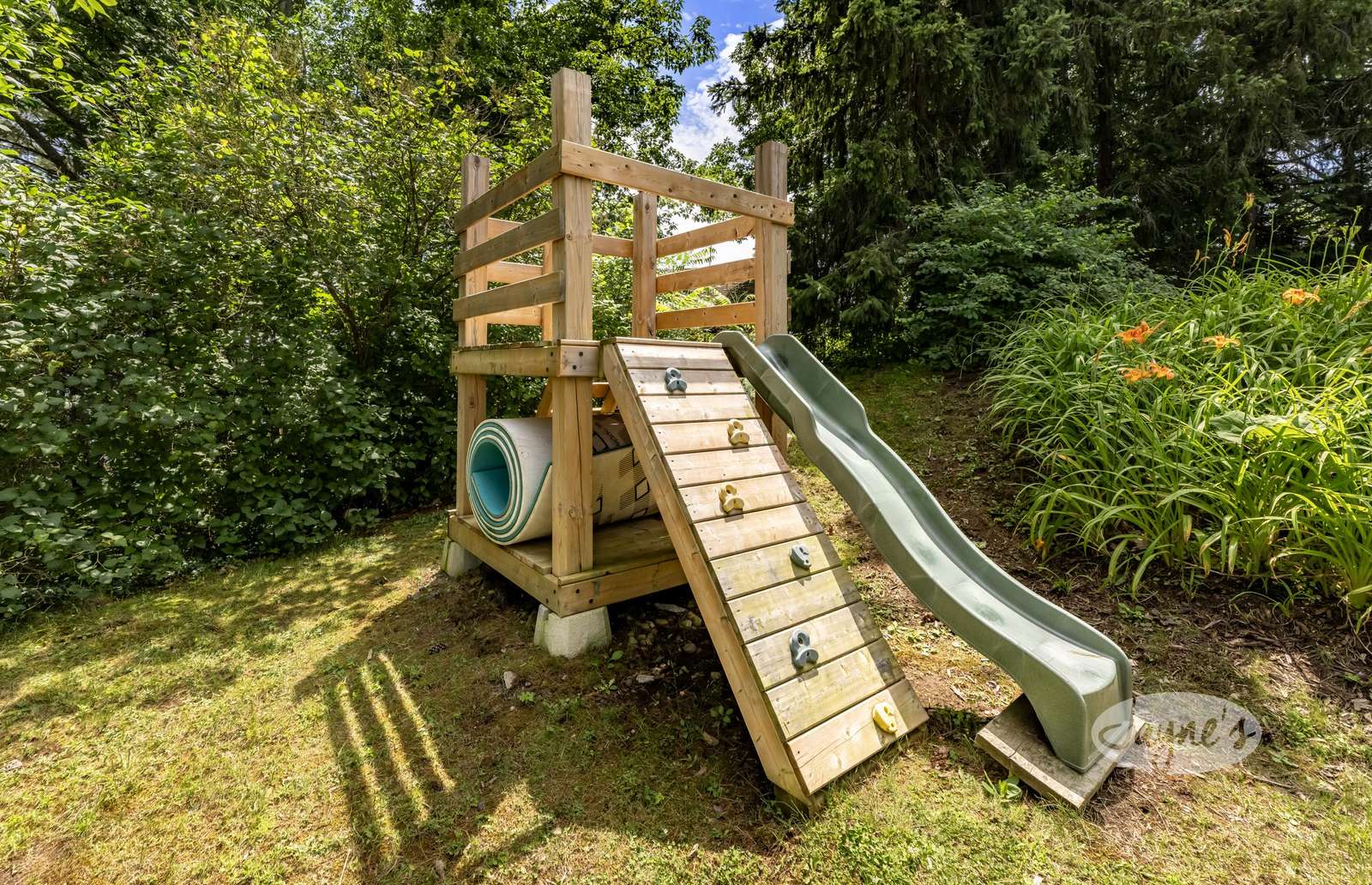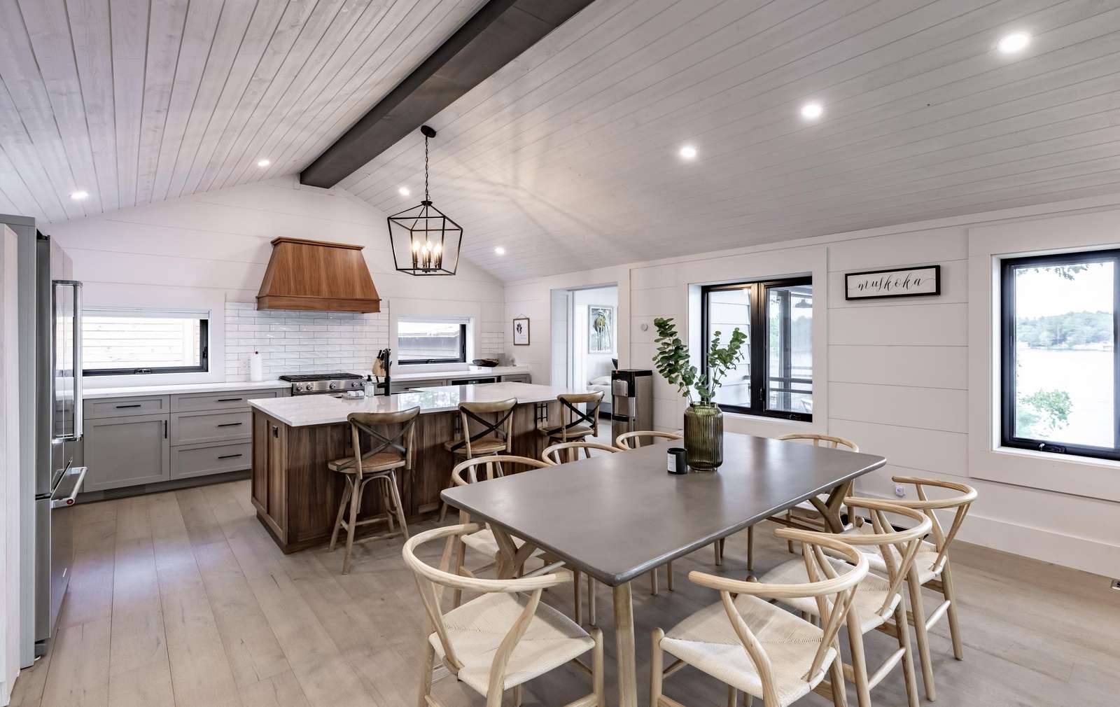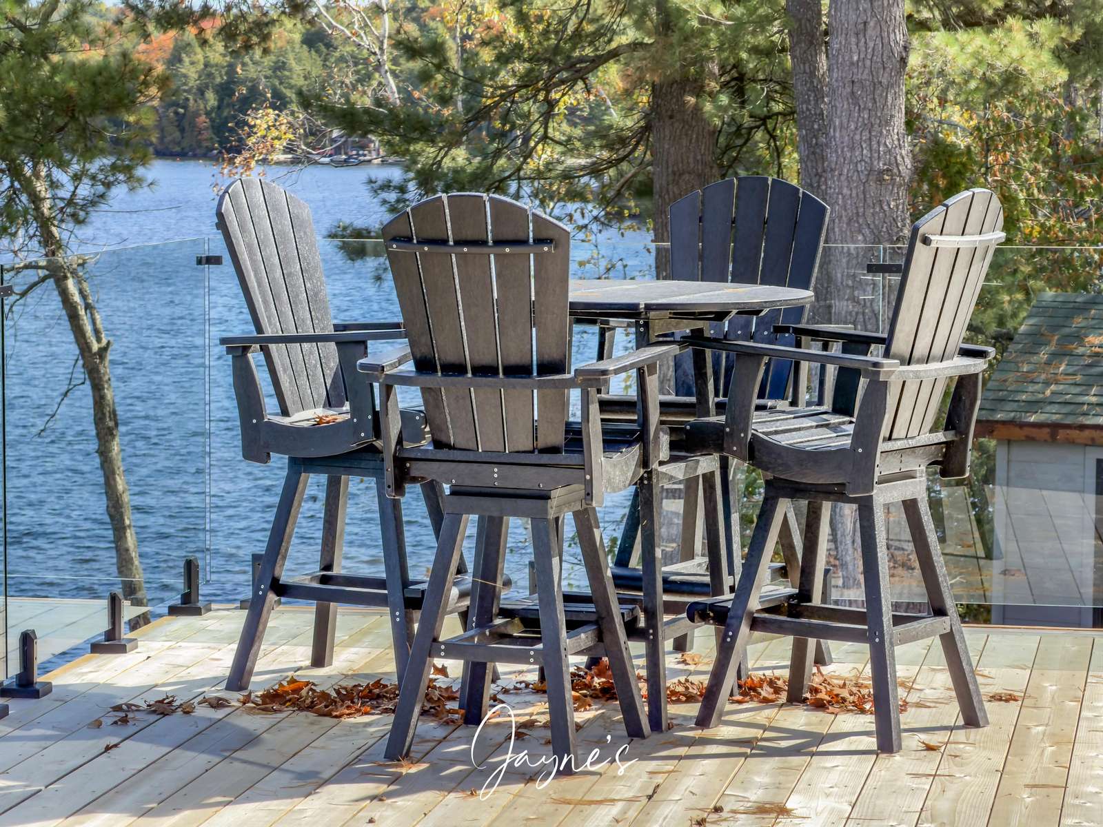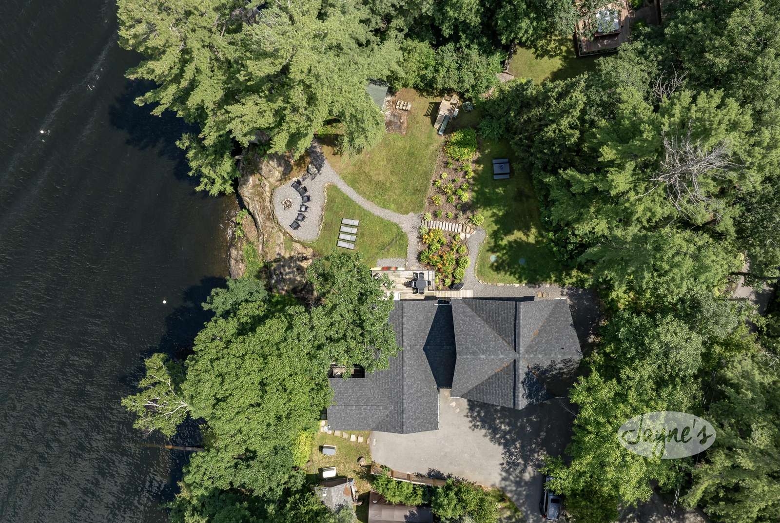 PARKERS POINT rests on a stunning property at the end of a peninsula on the south west side of Lake Muskoka. With water surrounding the point on three sides, Parkers Point provides renters with an authentic Muskoka experience! With multiple outdoor seating areas, there are many vantage points to take in the views while supervising the children. The deck is located right off of the great room and features 4 high-top Muskoka chairs with a matching round table. A propane BBQ and 2 additional Muskoka chairs sit on opposite ends of the deck, making this the perfect place to entertain! The deck leads you towards level grassy land that gently slopes towards the waterfront. The grassy lawns and 148 feet of frontage makes this destination a wonderful place for families of all ages. On your way to the water, you will notice a beautiful Muskoka-esque rock face that is level to the land. Beside the rock sits the fire pit with 5 Muskoka chairs looking out into the surrounding bay. The winterized bunkie and children's play-set sits not far away. A naturally designed stone walkway brings you down towards the timber frame boathouse with docks on either side. 2 Muskoka chairs sit beside the open-concept boathouse that offers 1-slip for boat docking.