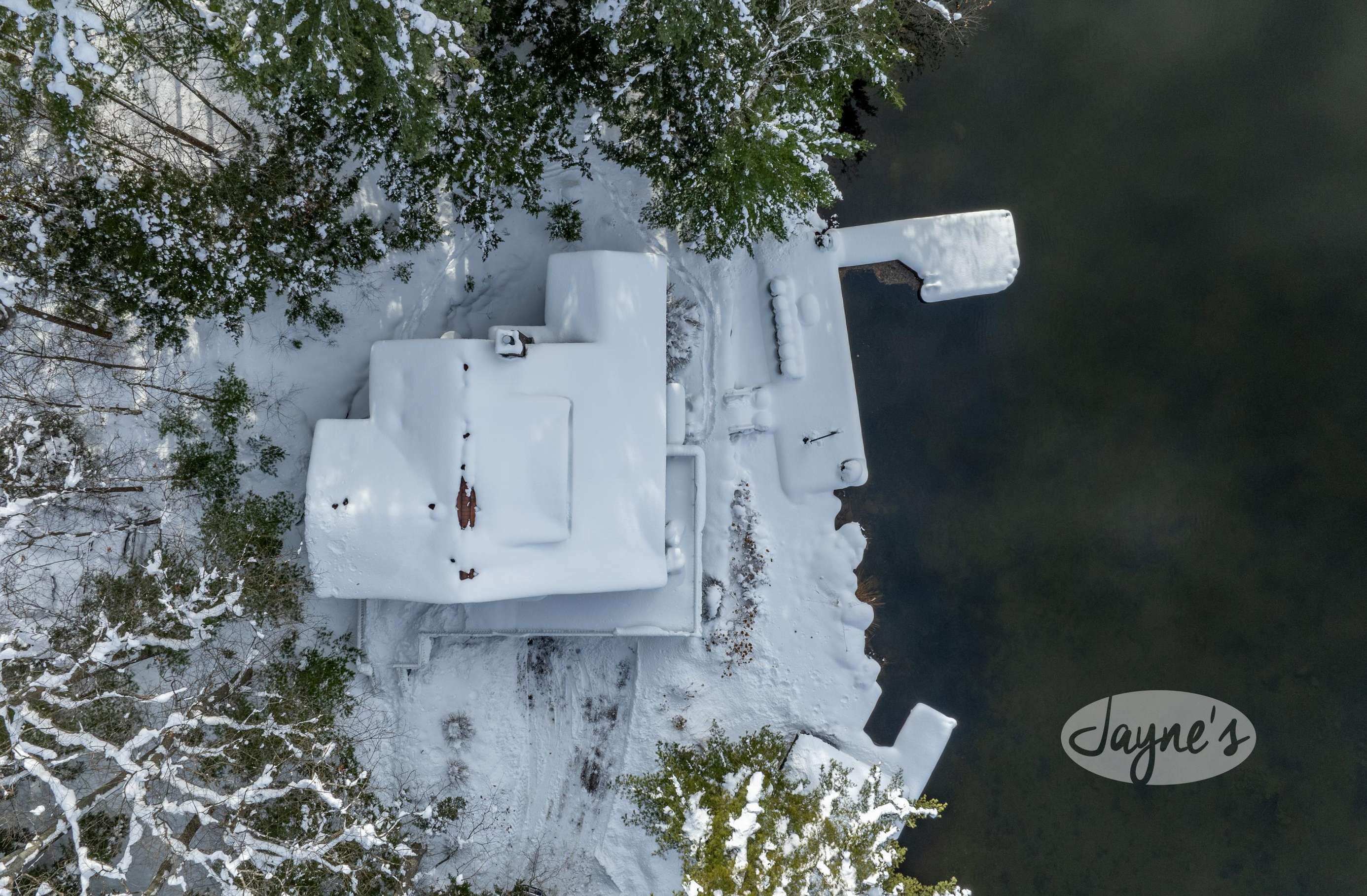 PEMBERLEY - This charming landscaped property features a walkout with easy access to the water, perfect for swimming and boating. It includes six Muskoka chairs on the dock and a firepit for outdoor enjoyment. The main floor has a cozy deck for quiet views, and indoors, a gas woodstove provides a warm and comfortable space to relax.