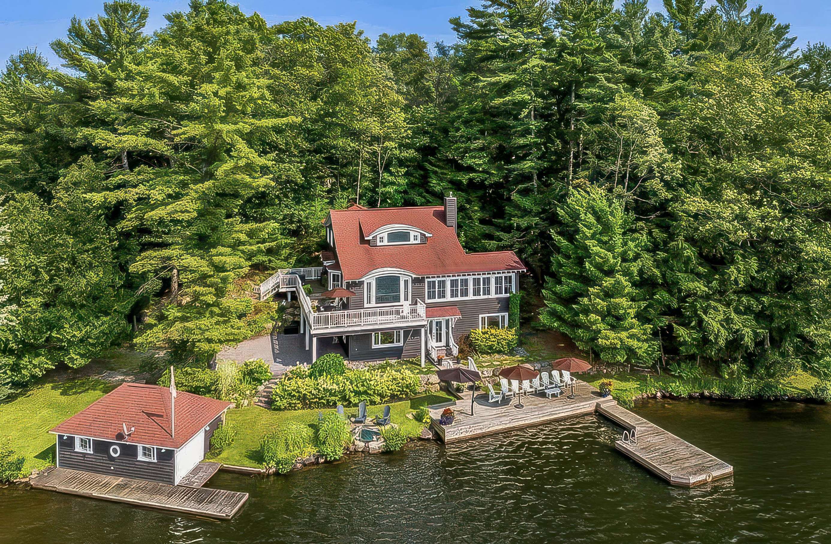 This Lake Muskoka cottage is a charming retreat with four bedrooms and four bathrooms, located in beautiful Port Carling. It boasts west-facing views for beautiful sunsets over the Indian River.