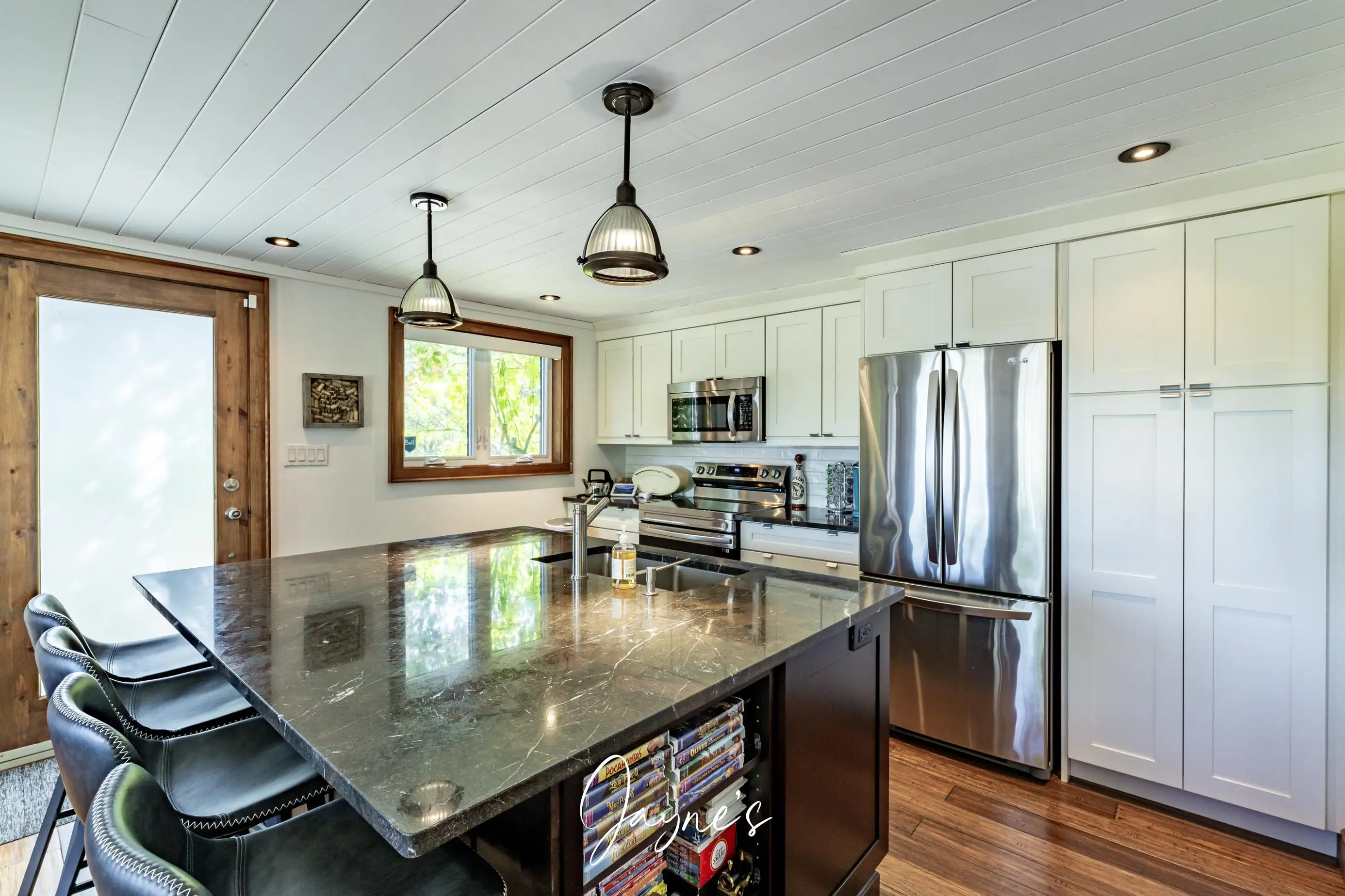 Open concept with full fridge/freezer, microwave, dishwasher and large island with seating for 4