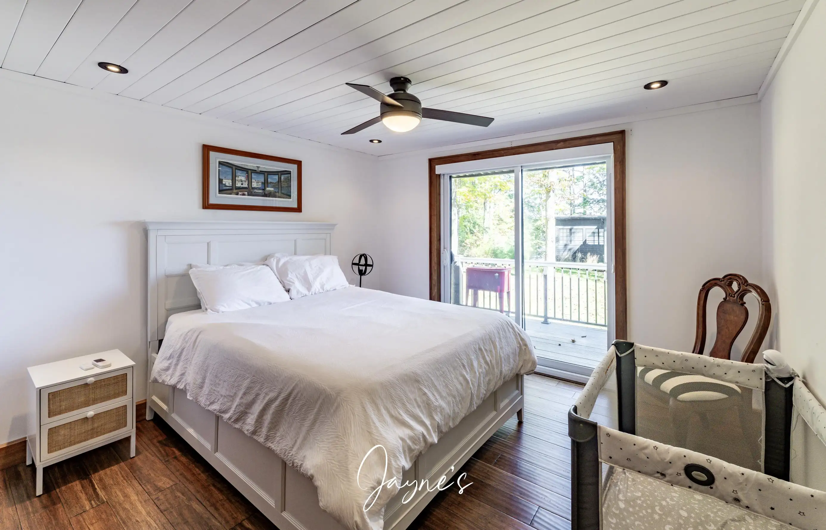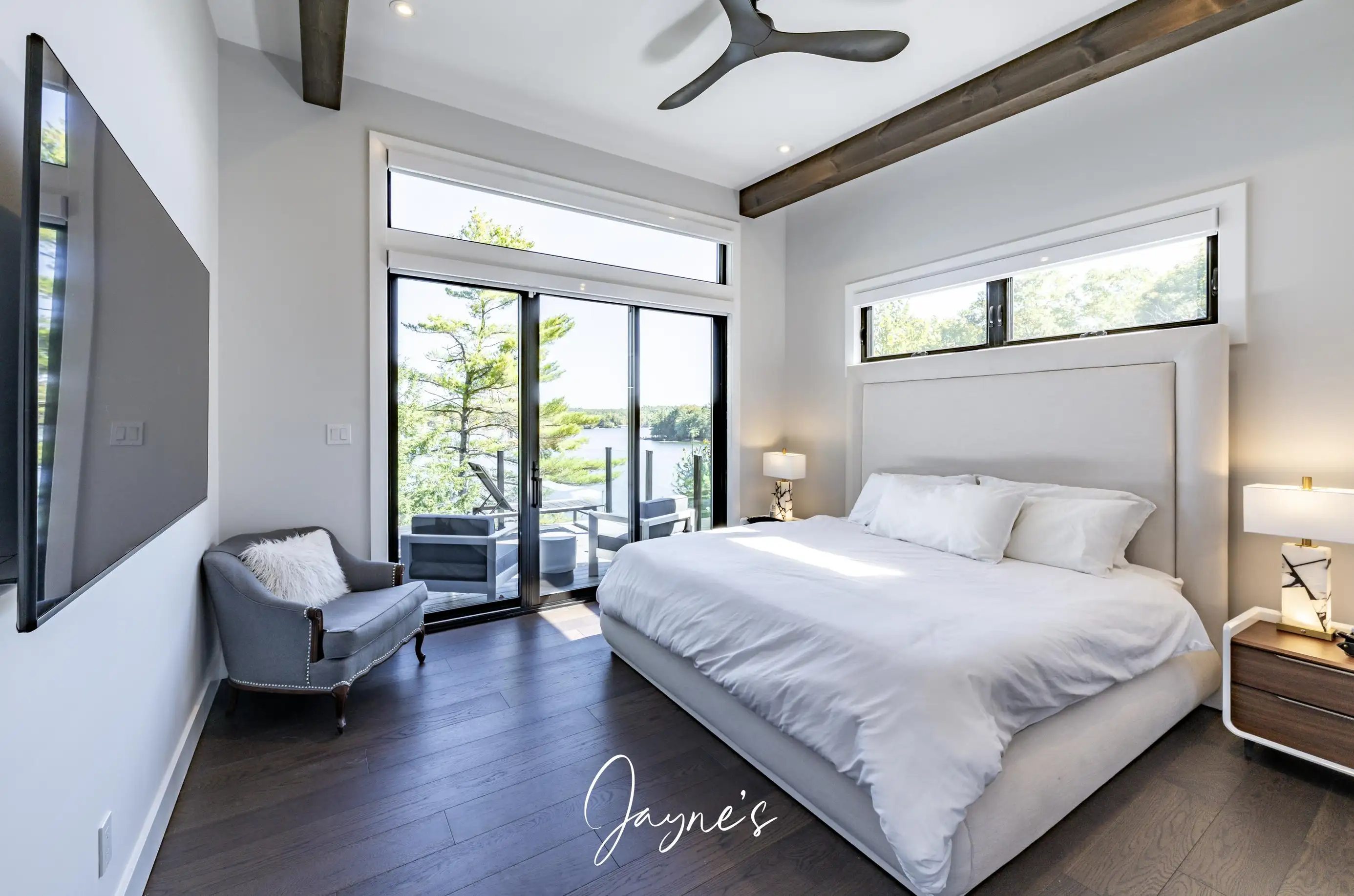 Bedroom 1 - King (Primary) with ensuite, TV, walk-in closet and walkout to deck