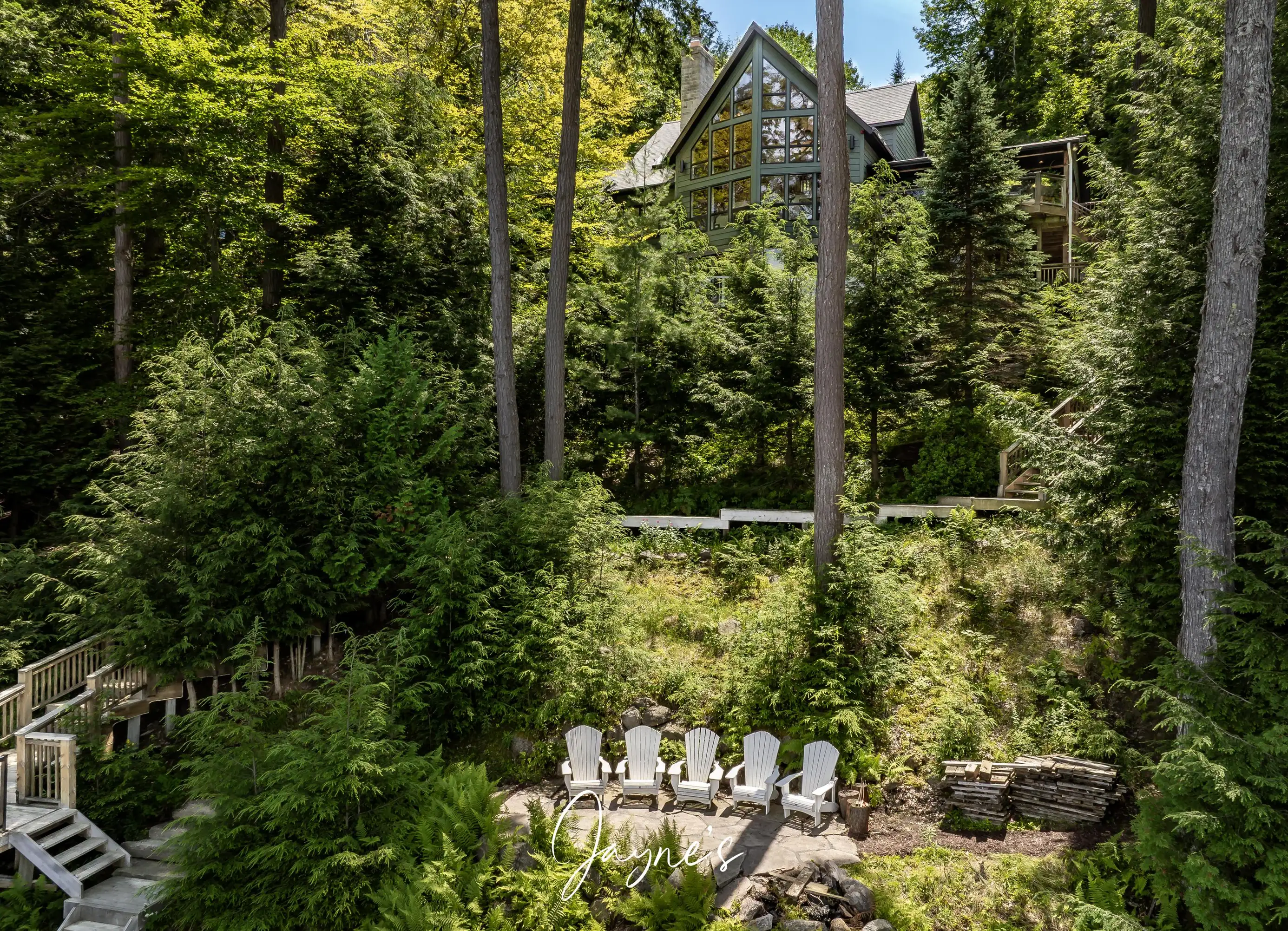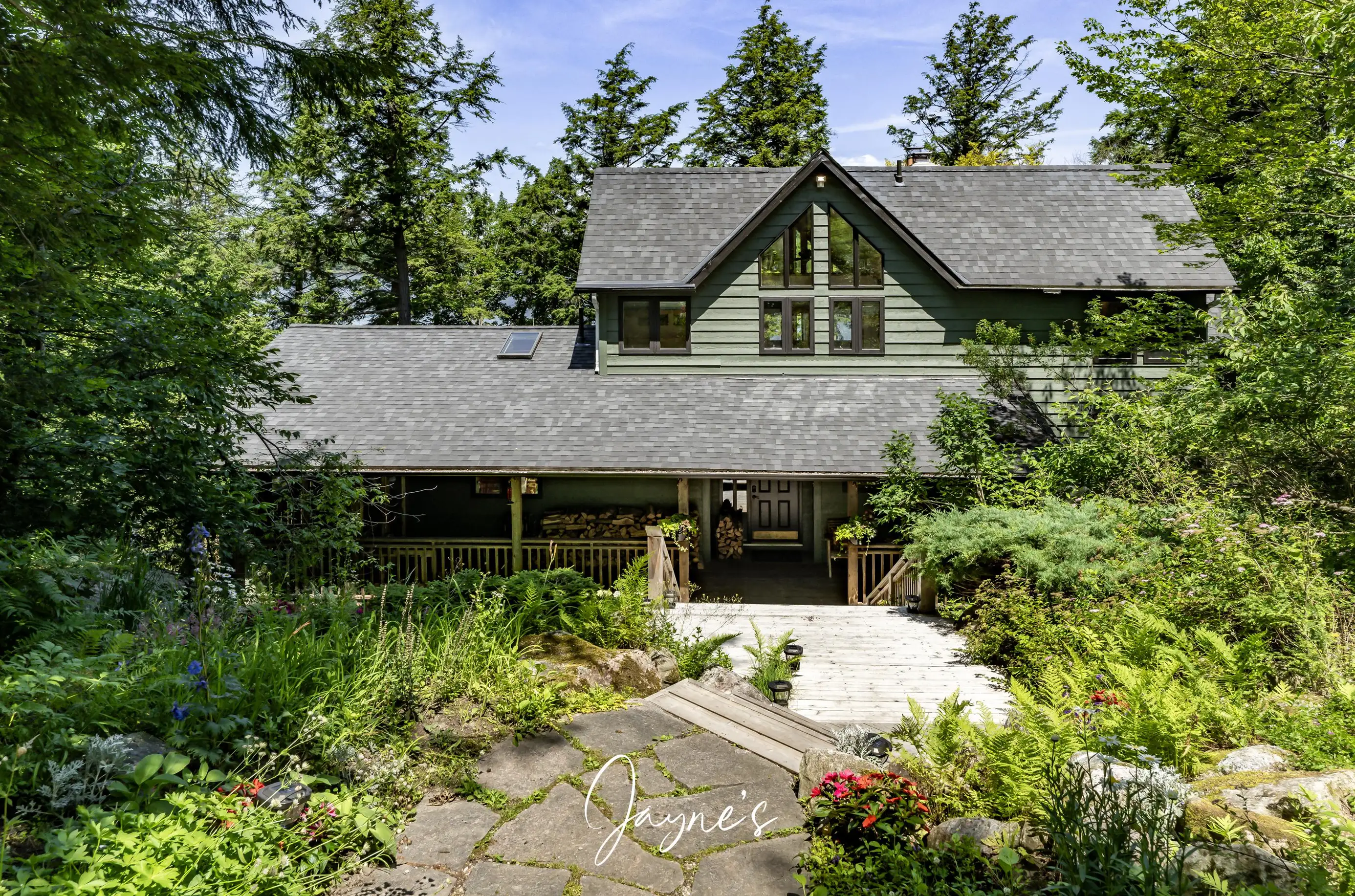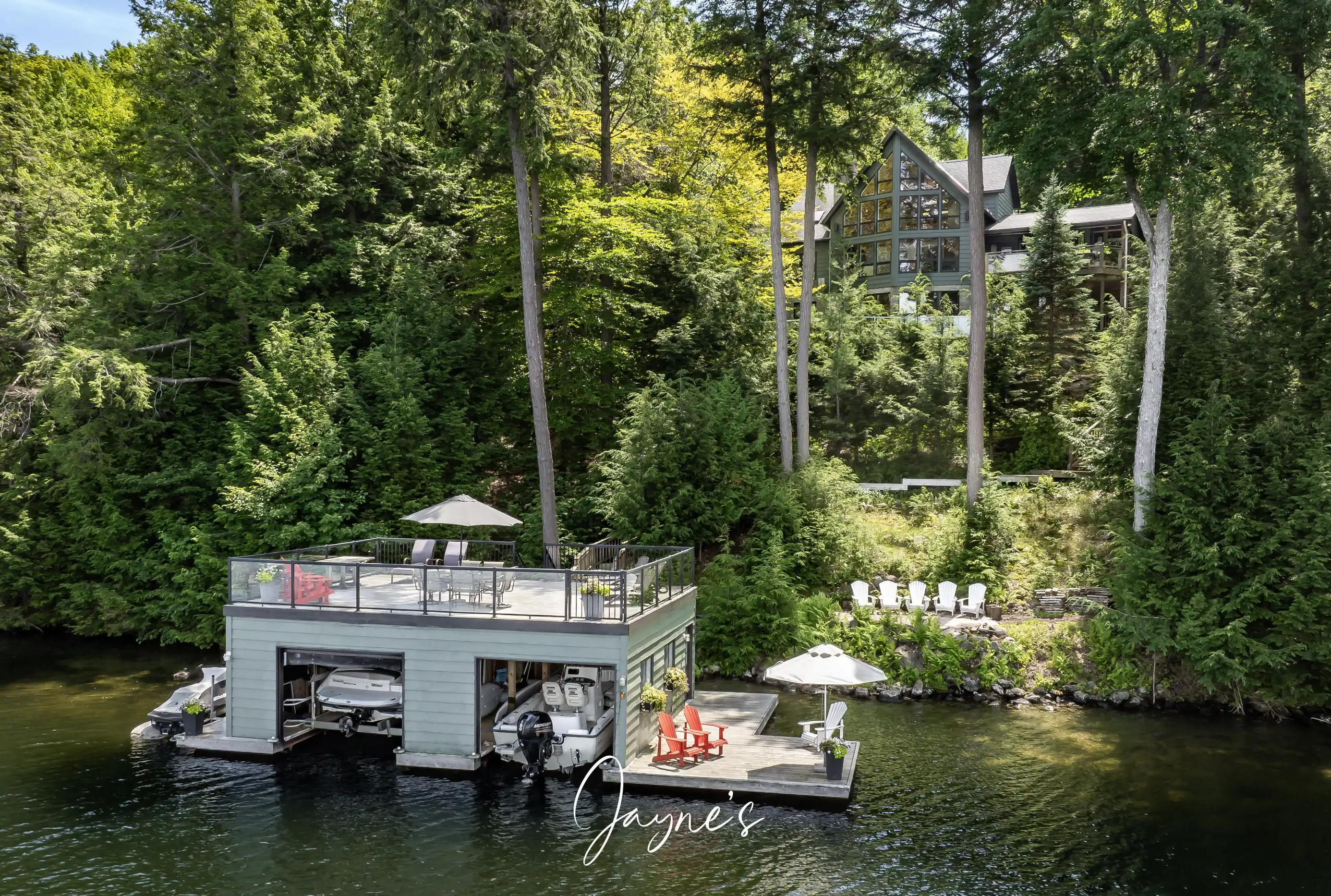 PICTURE PERCH - At the lakeside boathouse, enjoy sunrises and sunsets, bathe in the full sun, or seek shade from tall pines and extensive gardens surrounding the cottage. These gardens were designed by Windermere Gardens.
