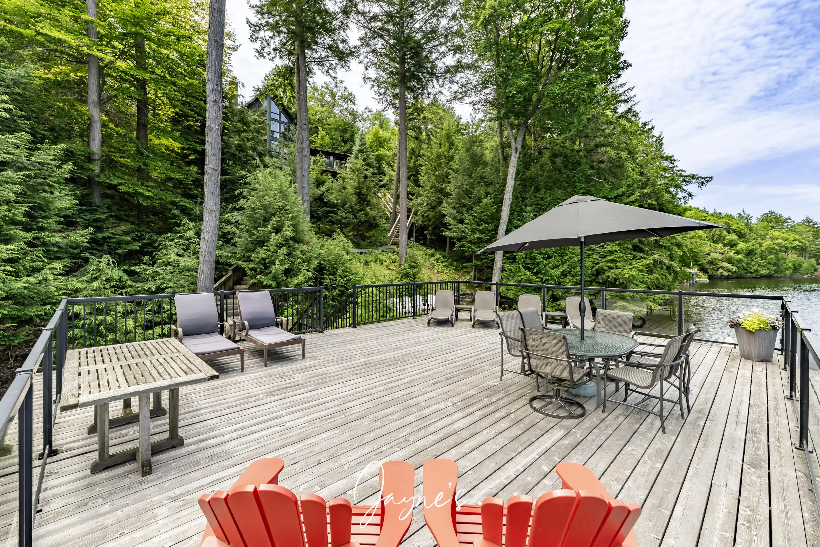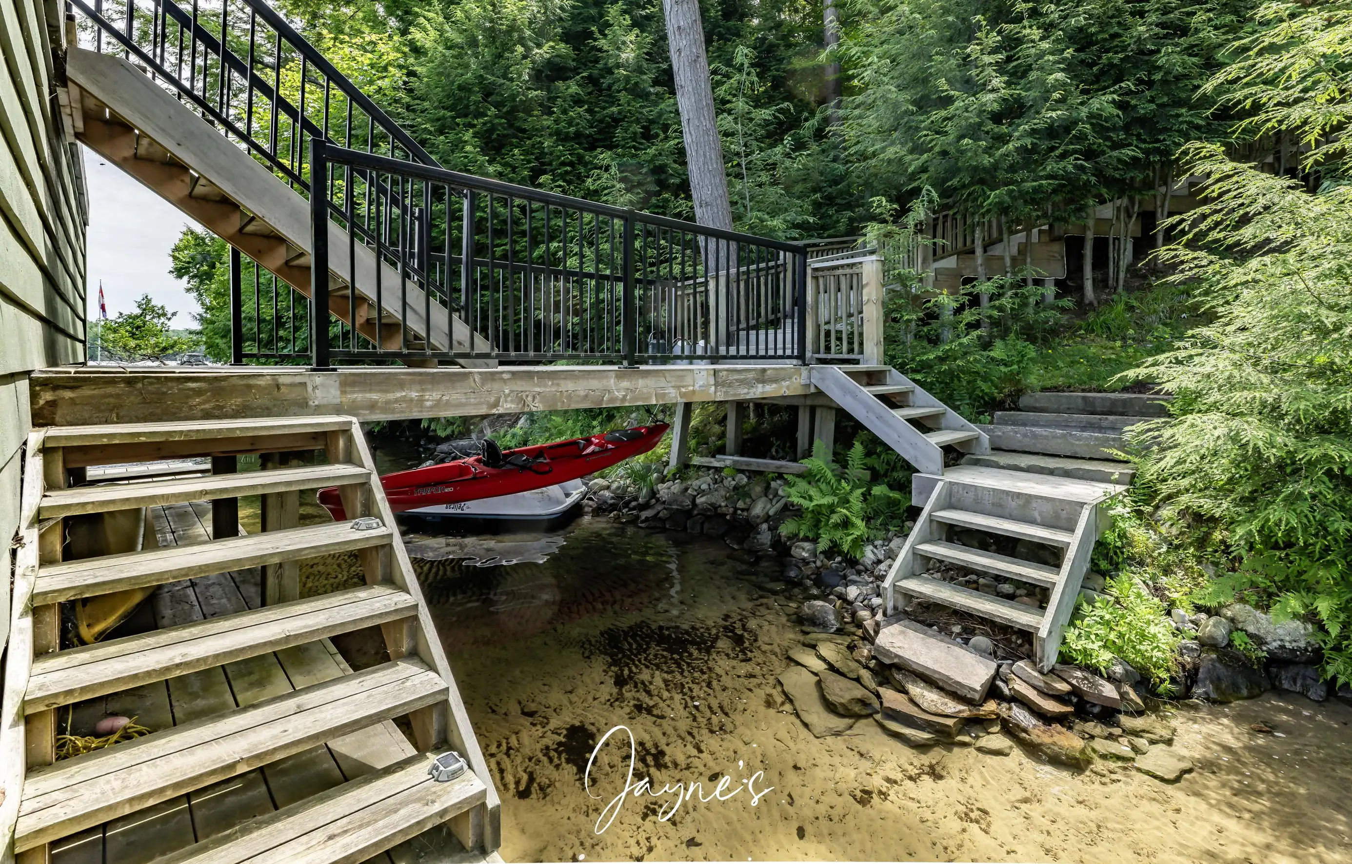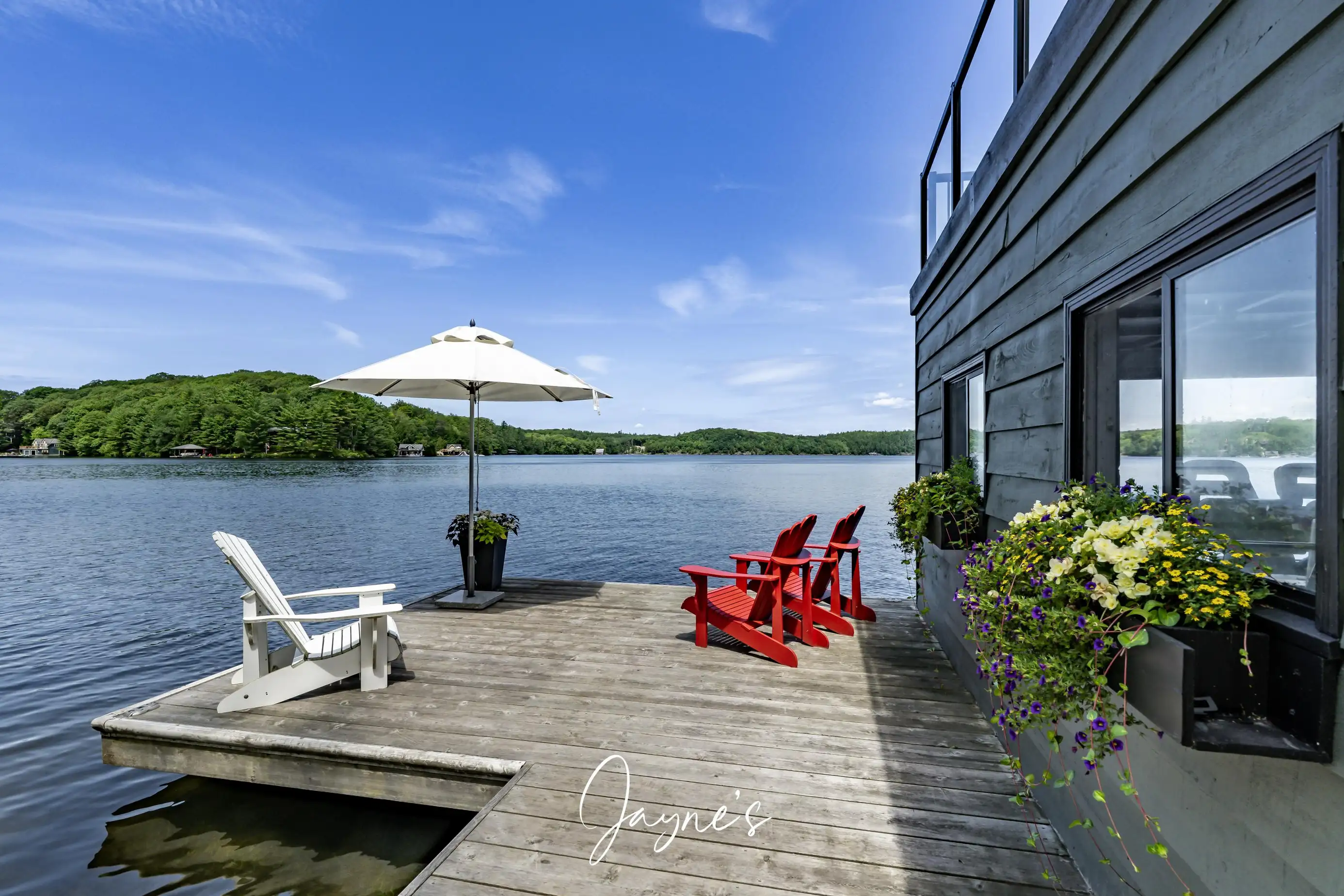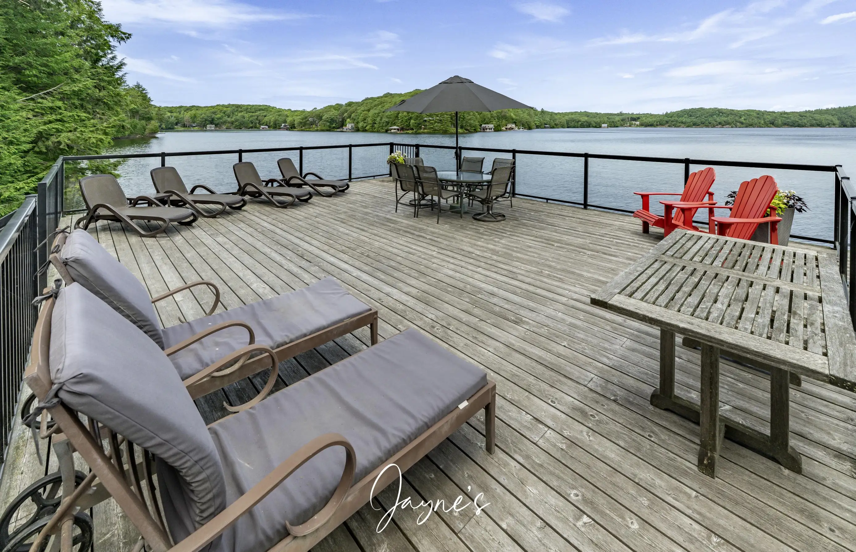 This property has it all! This cottage boasts many natural outdoor sitting areas. The Boathouse deck is the one of the most cherished areas to enjoy on this property. Watch the sunrise or bathe in the sun on one of the eight lounge chairs. When it gets too hot, seek shade under the umbrella table and chairs. Perfect spot to enjoy dinner while watching the setting sun.