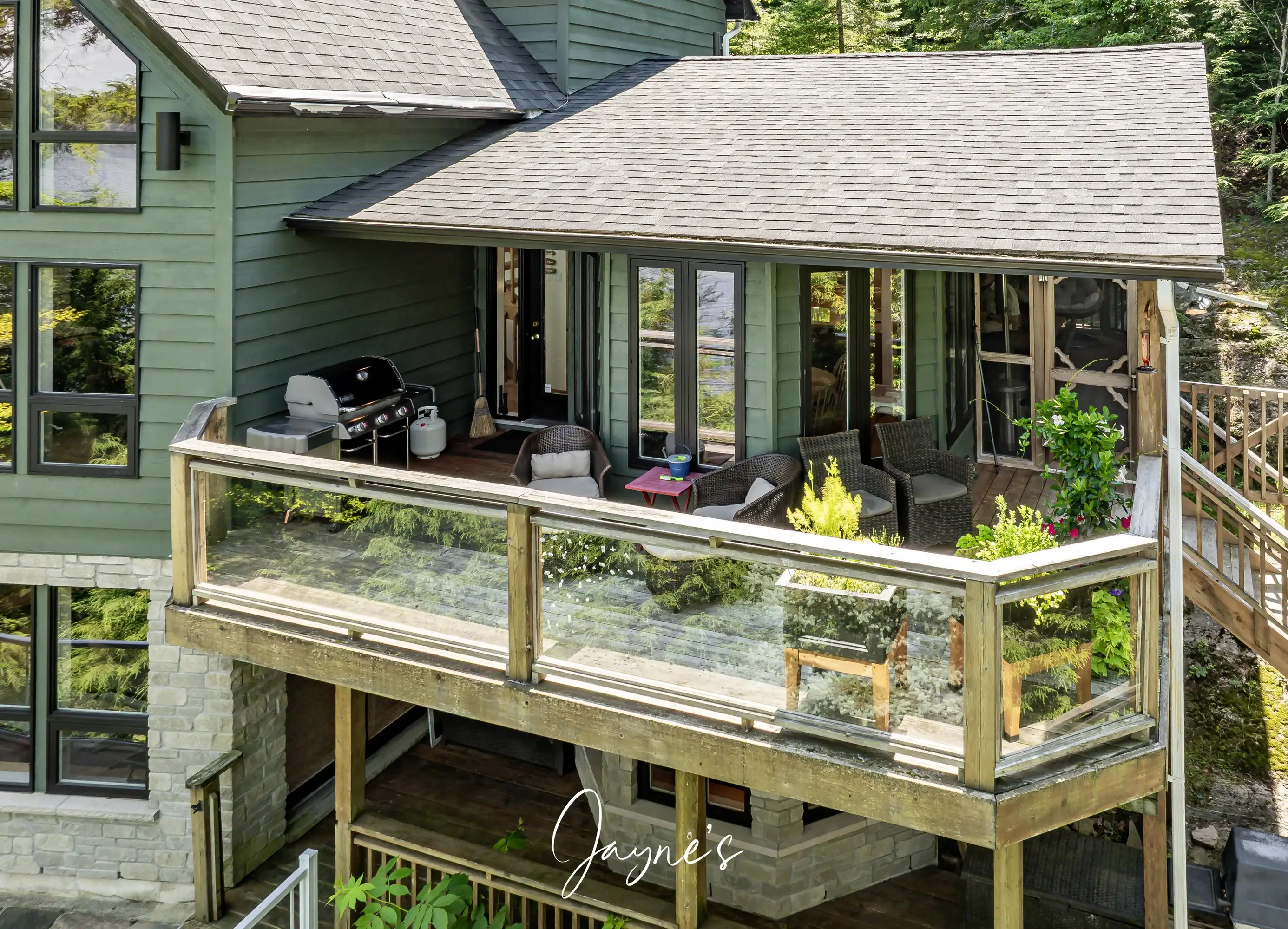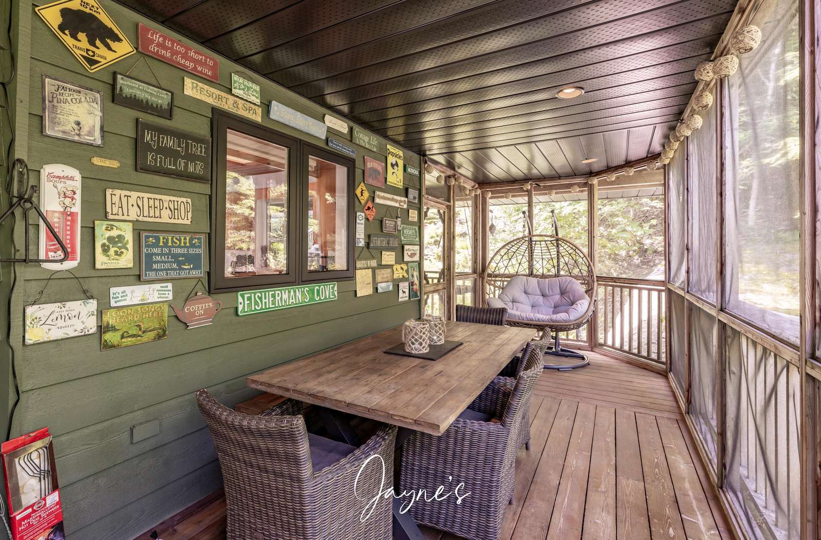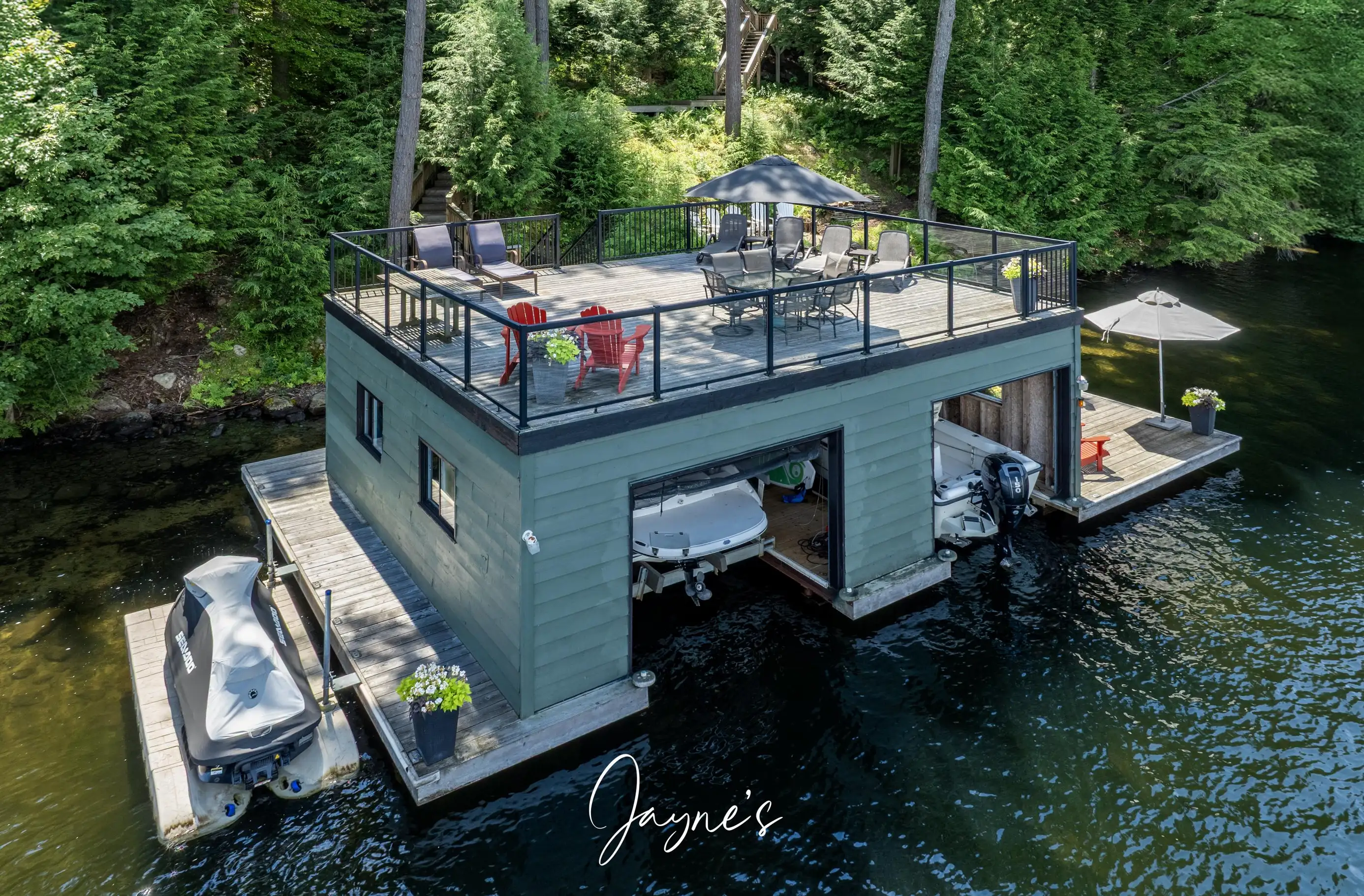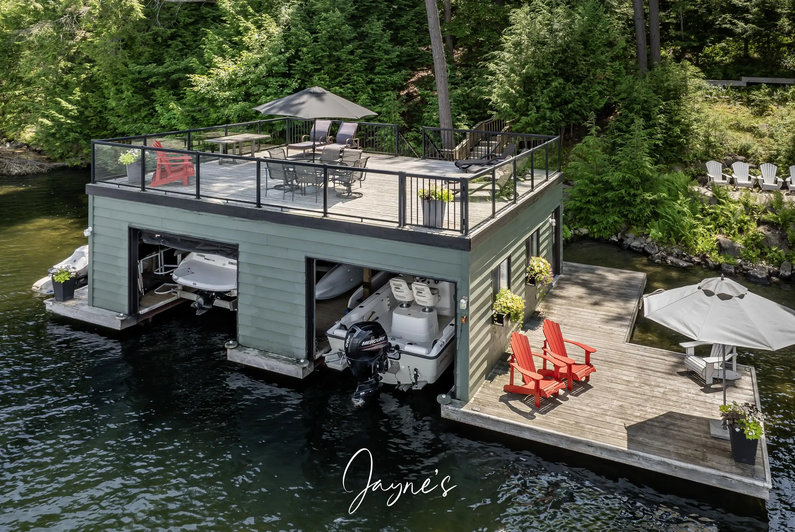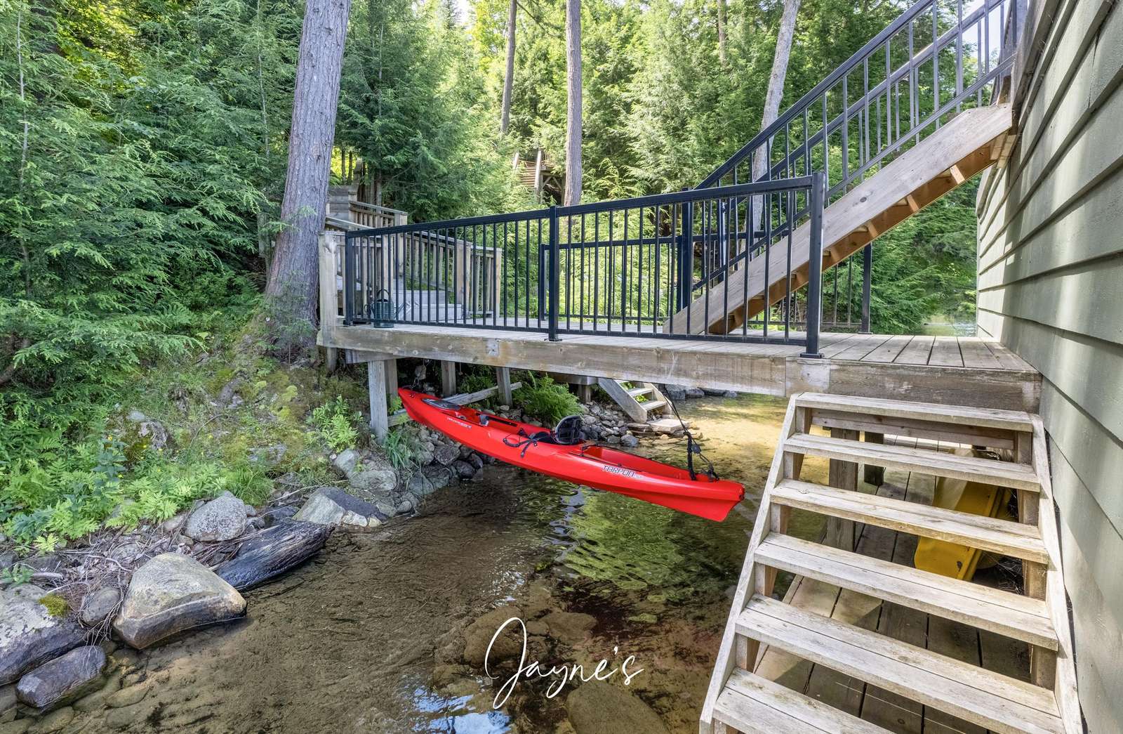 This property has it all! This cottage boasts many natural outdoor sitting areas. The Boathouse deck is the one of the most cherished areas to enjoy on this property. Watch the sunrise or bathe in the sun on one of the eight lounge chairs. When it gets too hot, seek shade under the umbrella table and chairs. Perfect spot to enjoy dinner while watching the setting sun.