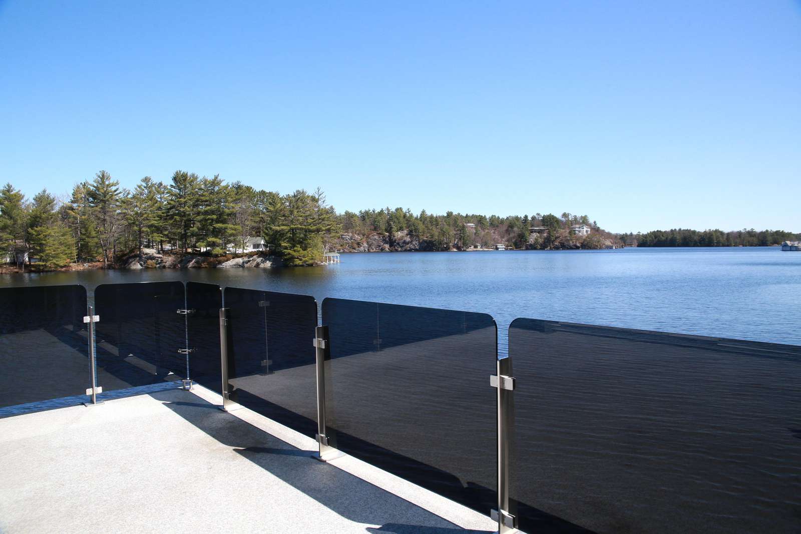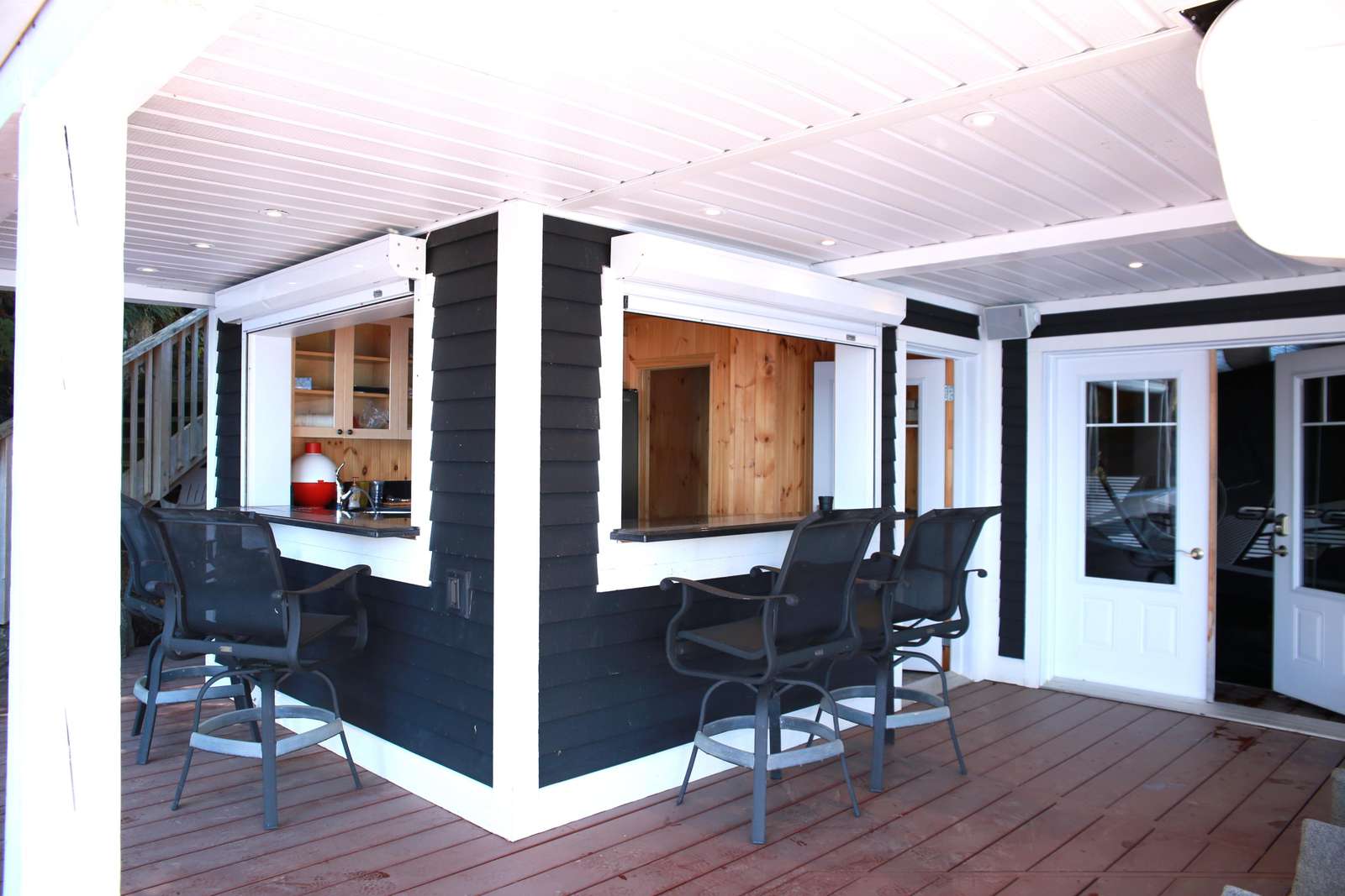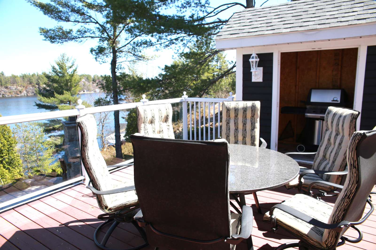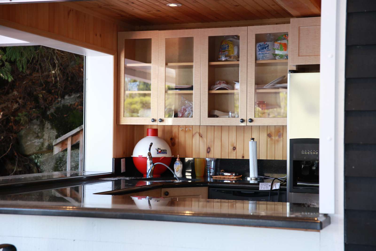 Boathouse has a dock-level kitchenette with a roll-up bar for entertaining guests. The kitchenette contains a fridge and dishwasher. Enjoy the gorgeous sundeck for Muskoka views, and visit with family and friends while you while away the day!