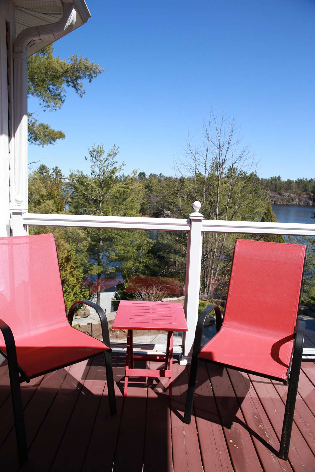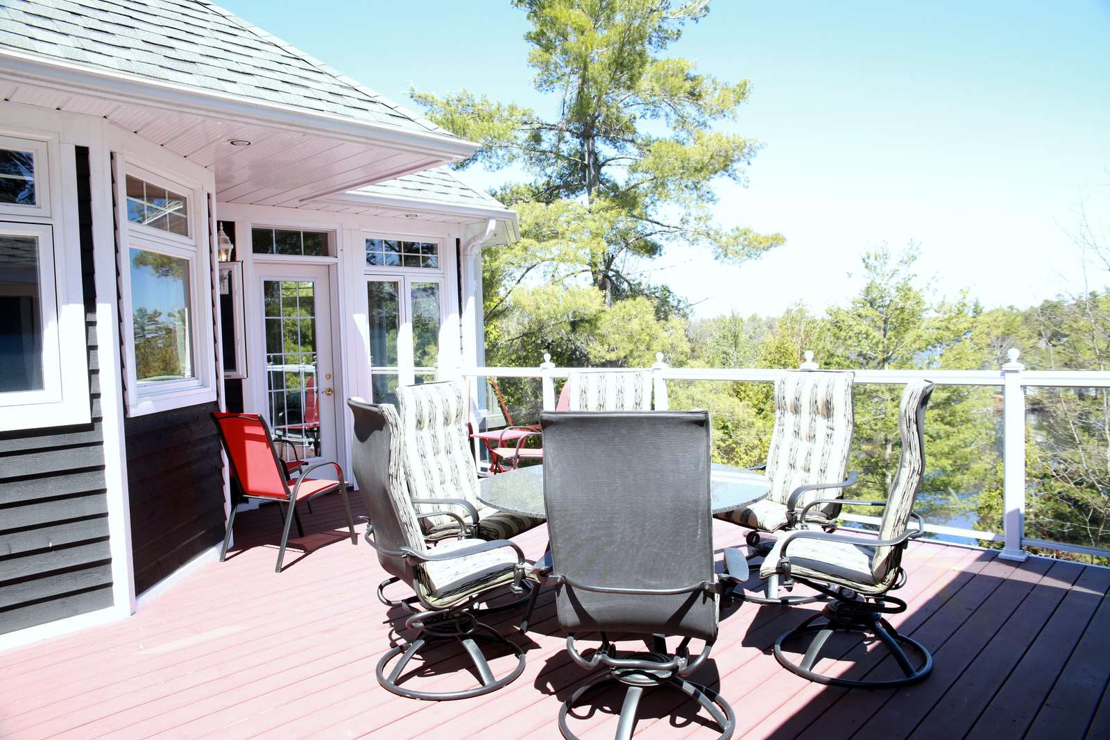 PINOT NOIR -The main floor has a walk-out to a beautiful deck overlooking Lake Muskoka. The deck has plenty of seating around a patio table.Β Walkout from the lower level to a large stone patio with a beautiful stone fireplace and rock bench seating.