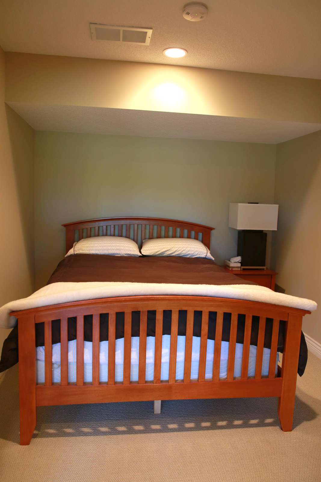 There is a full apartment suite with one bedroom, full kitchen, living area, and 3-piece bathroom.