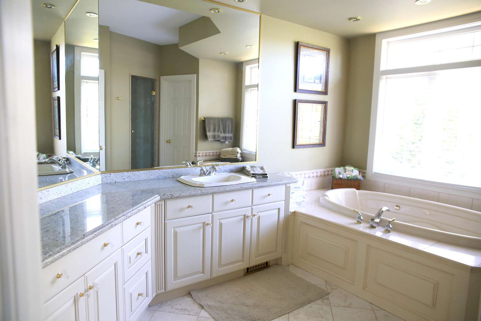 Bathroom 1 β 5-piece ensuite with large separate shower and Jacuzzi tub