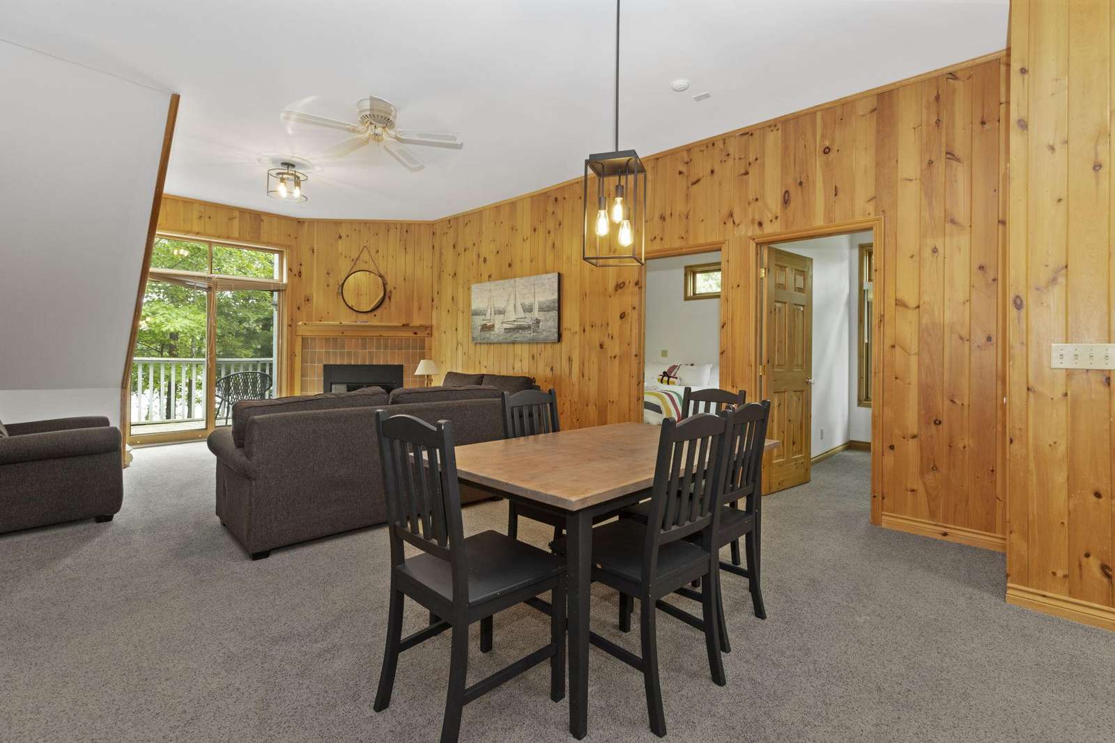 Open concept with dining table and seating for 6