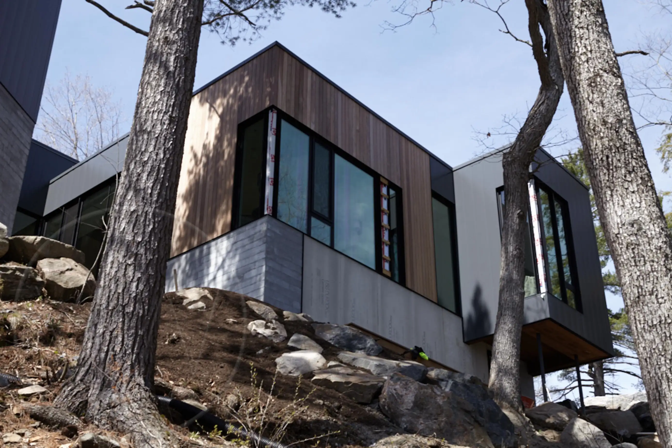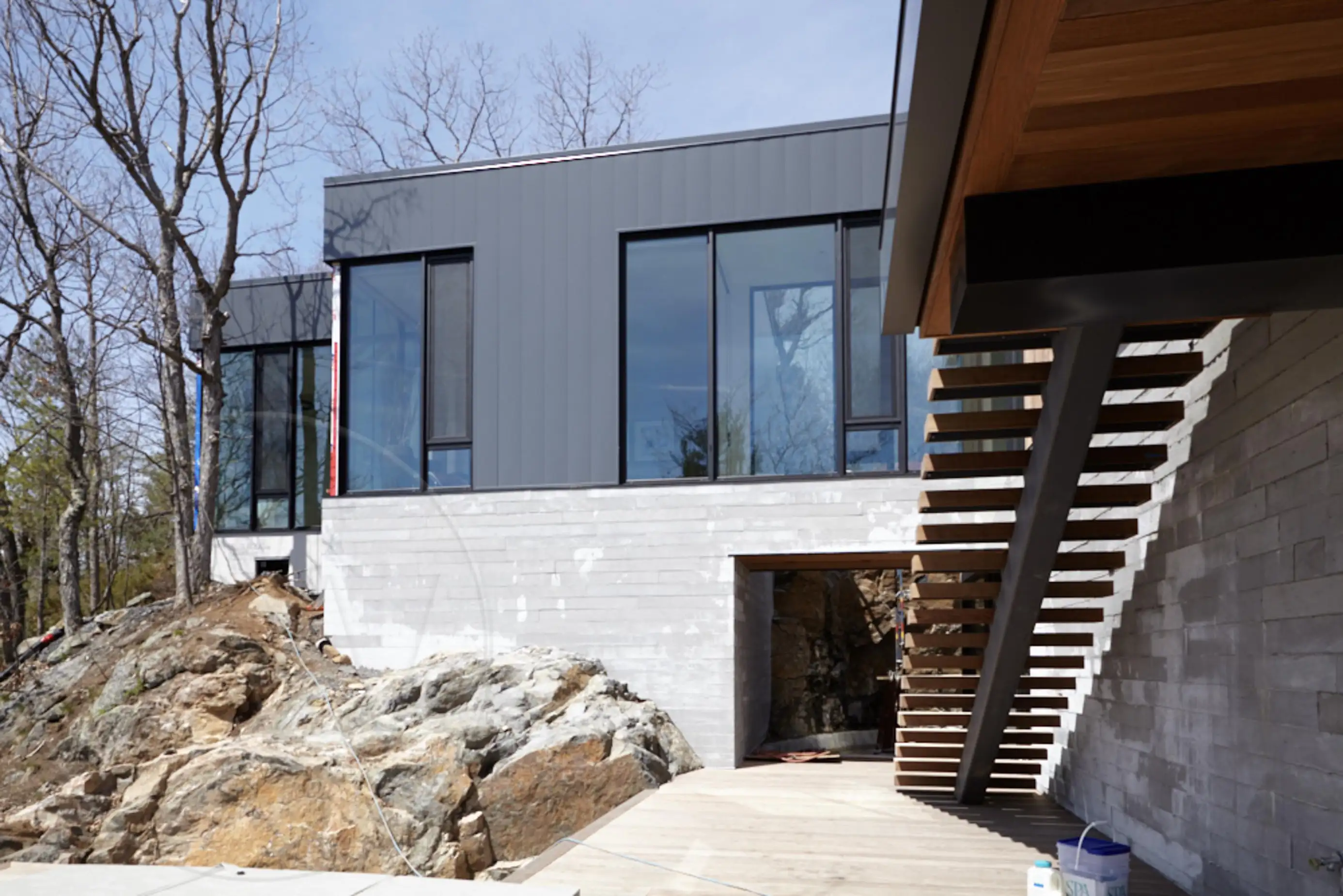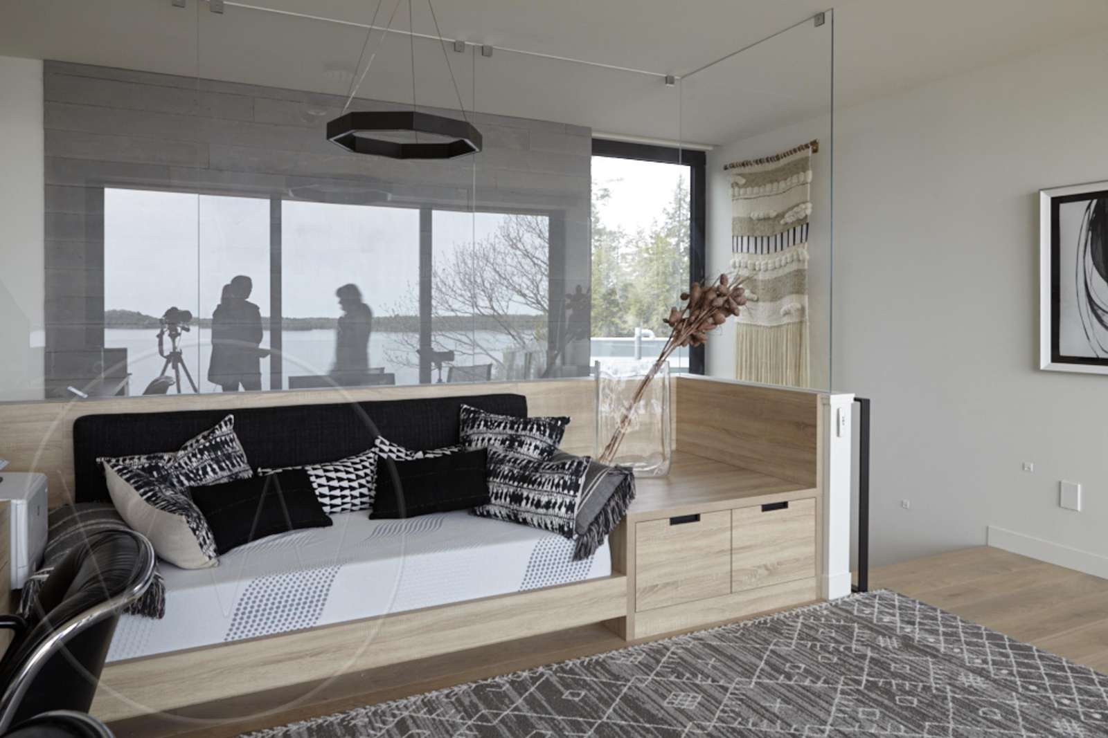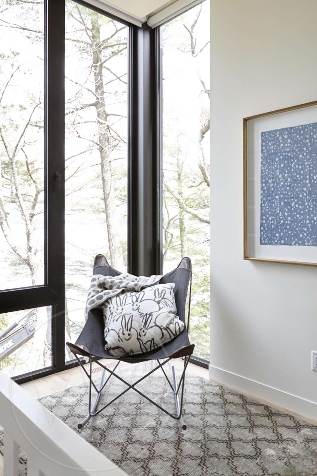 ROCK A FELLA Nestled beside the tranquil shores of Lake Joe, this elegantly designed contemporary cottage serves as a private retreat, harmoniously blending modern aesthetics with natural beauty. The property features a meticulously landscaped garden that enhances the serene atmosphere, while the main cottage boasts two spacious floors and a thoughtfully designed separate North wing, ensuring ample room and privacy for family members and guests alike. Floor-to-ceiling windows flood the interior with natural light, creating an inviting ambiance that complements the expansive open-concept layout. The generous kitchen, complete with a pantry, flows seamlessly into the dining area and a separate breakfast nook, making it ideal for both casual meals and formal gatherings.