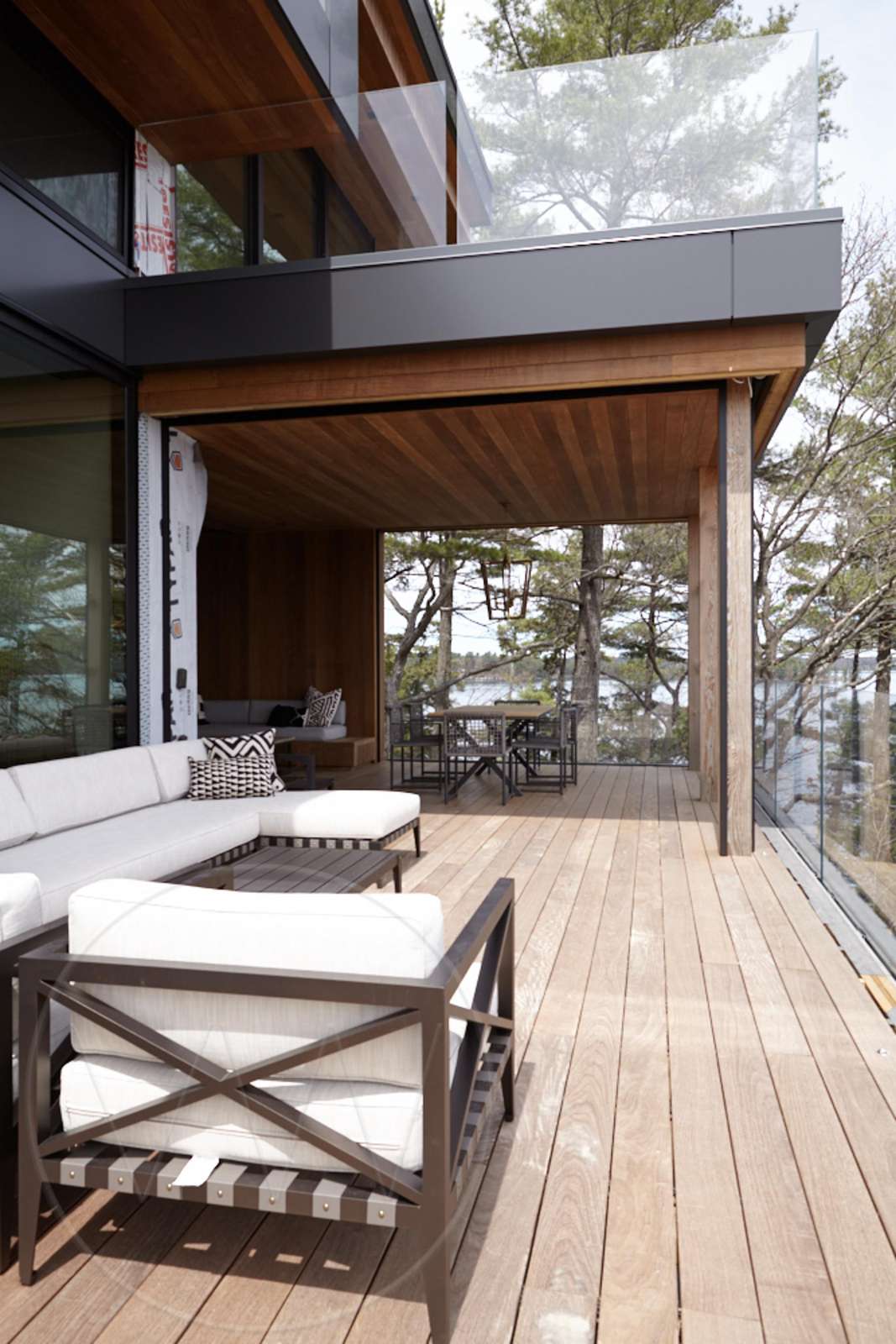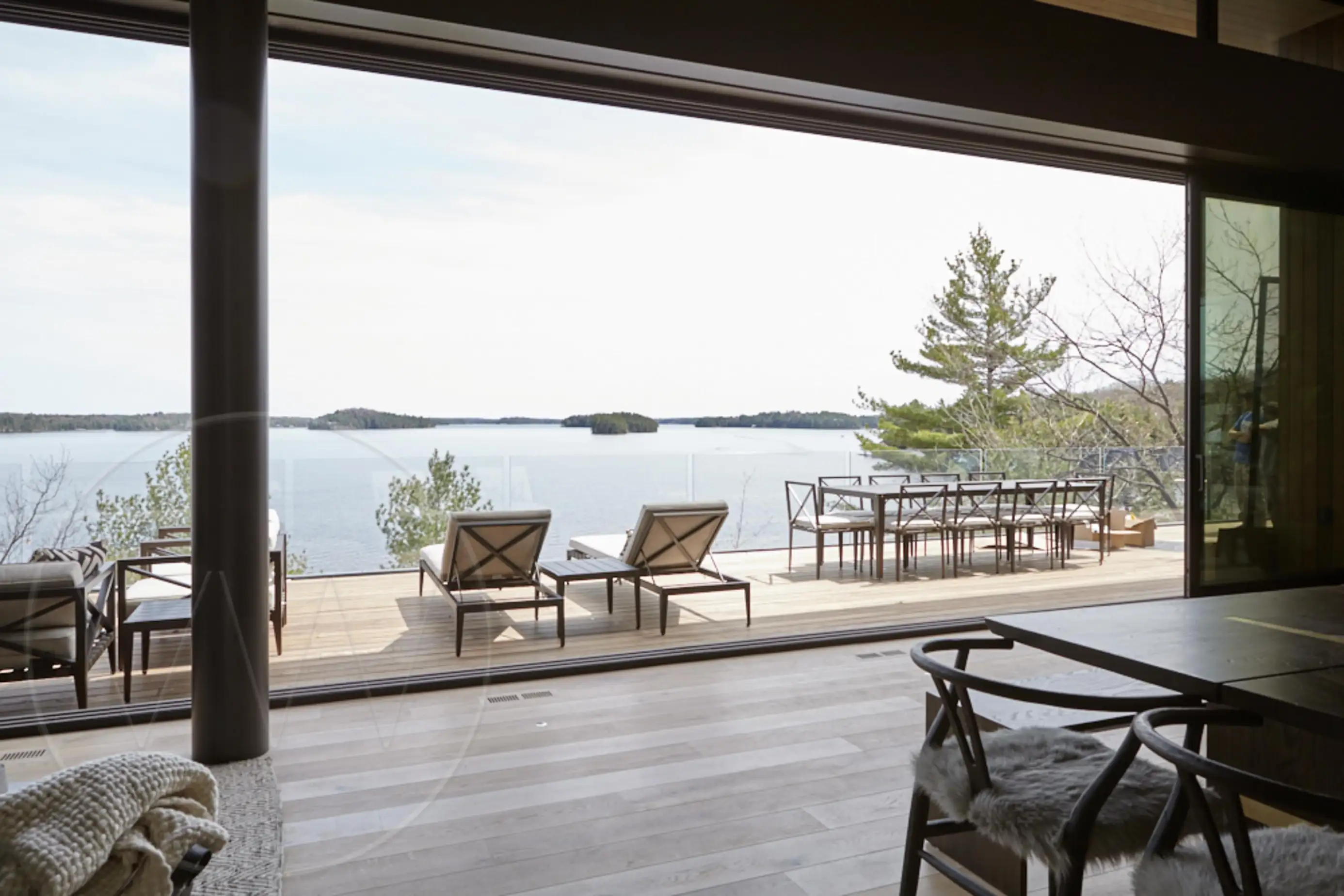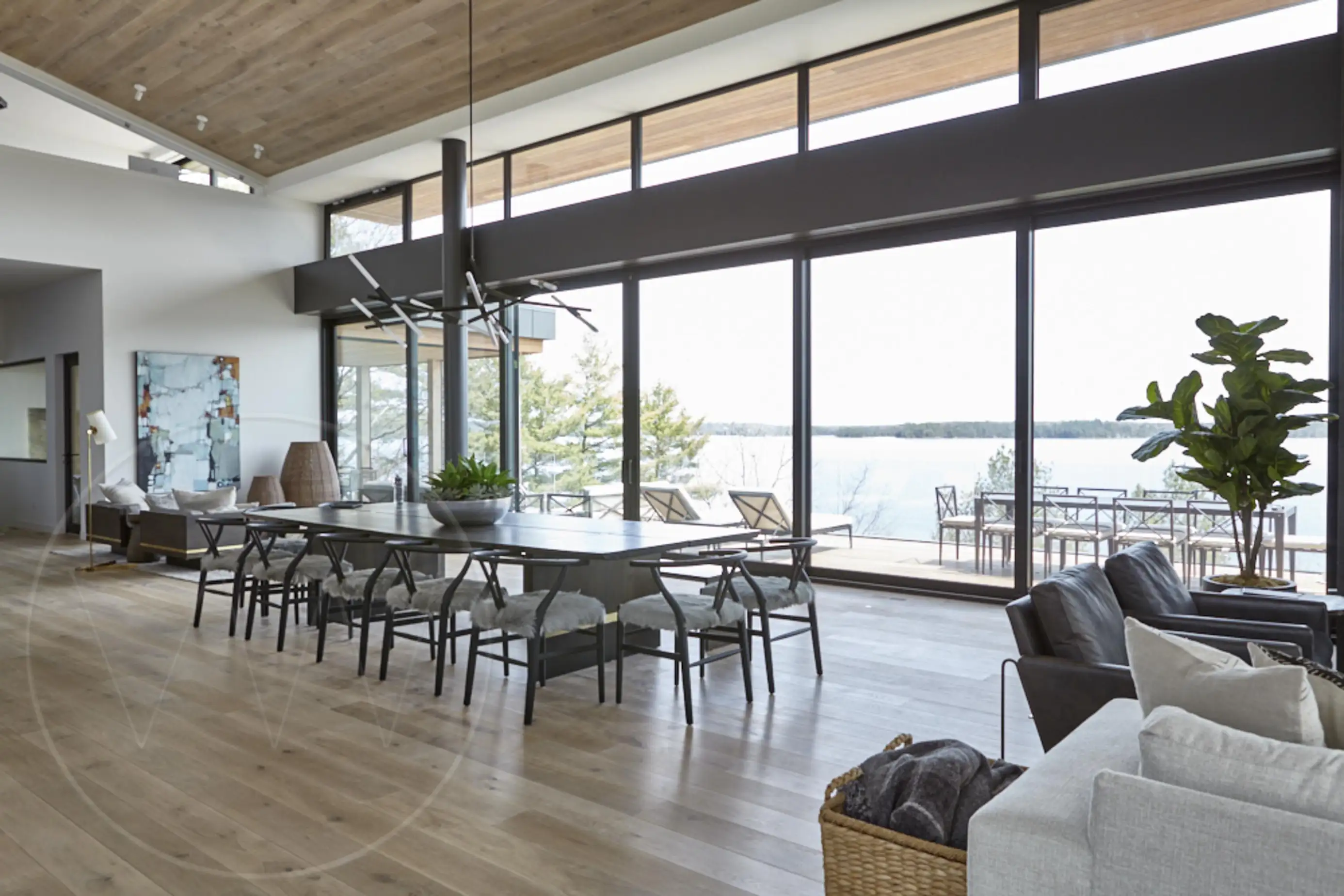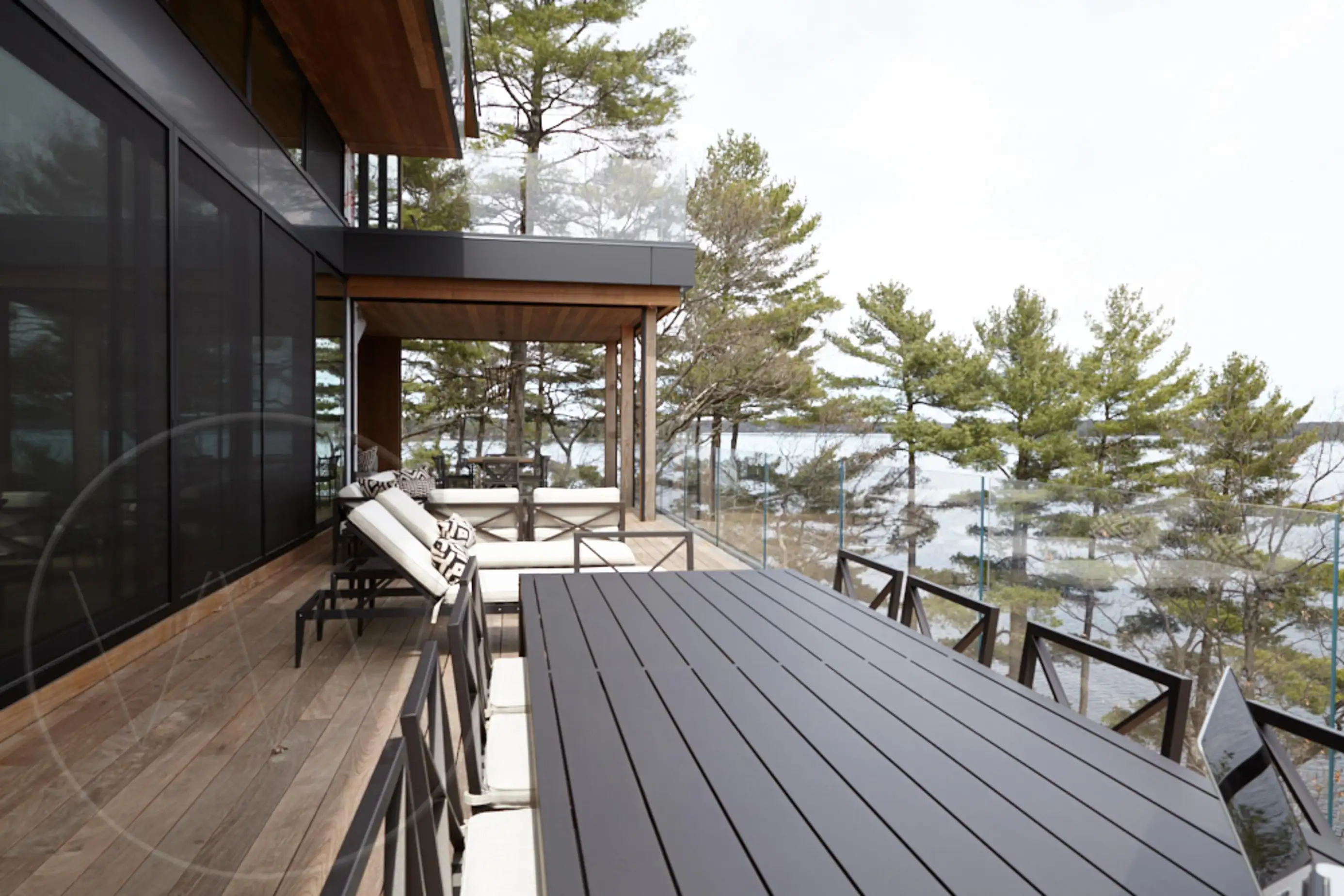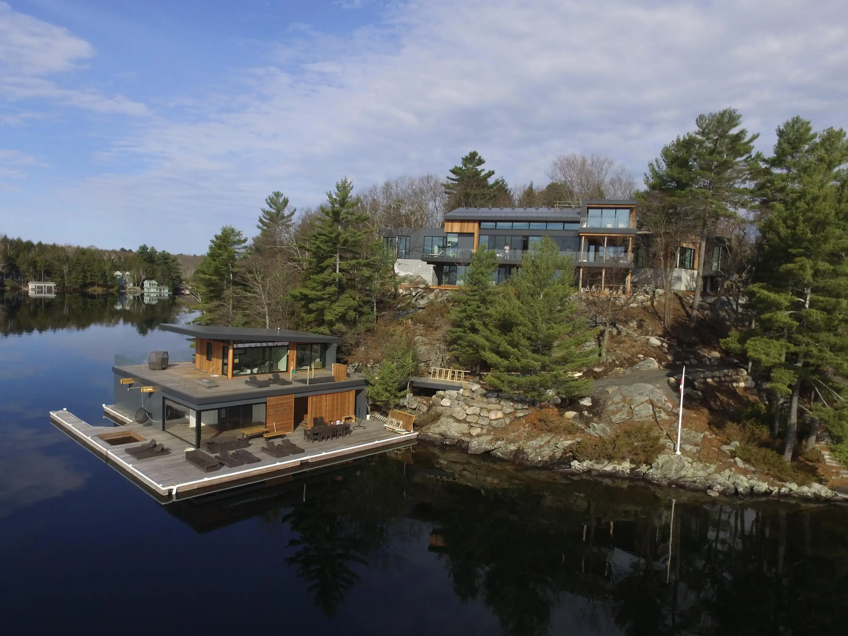 Exquisite contemporary cottage on Lake Joseph. Situated on a point with desirable south exposure and privacy, this 12 bedroom 13 bathroom cottage has exceptional lake views.