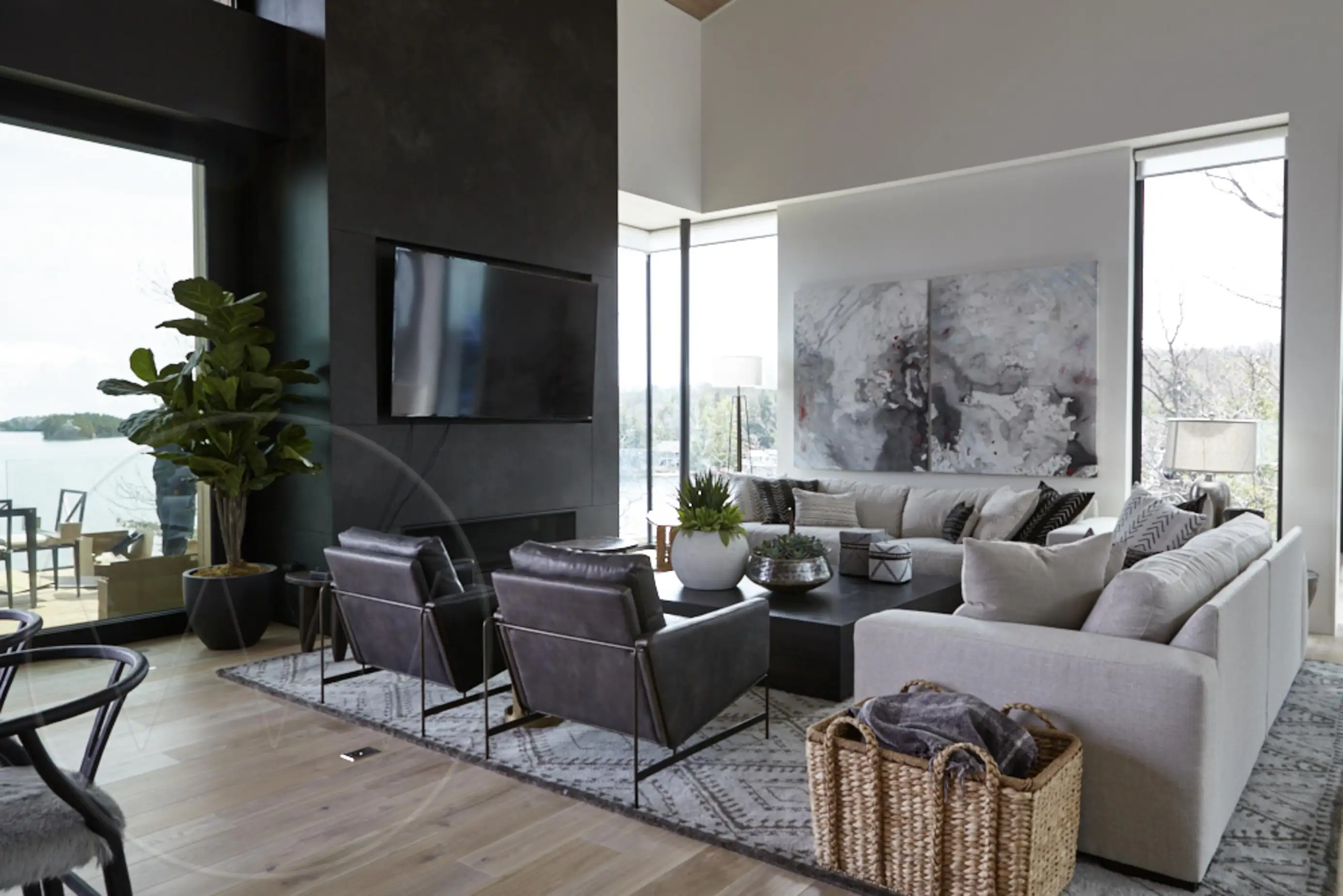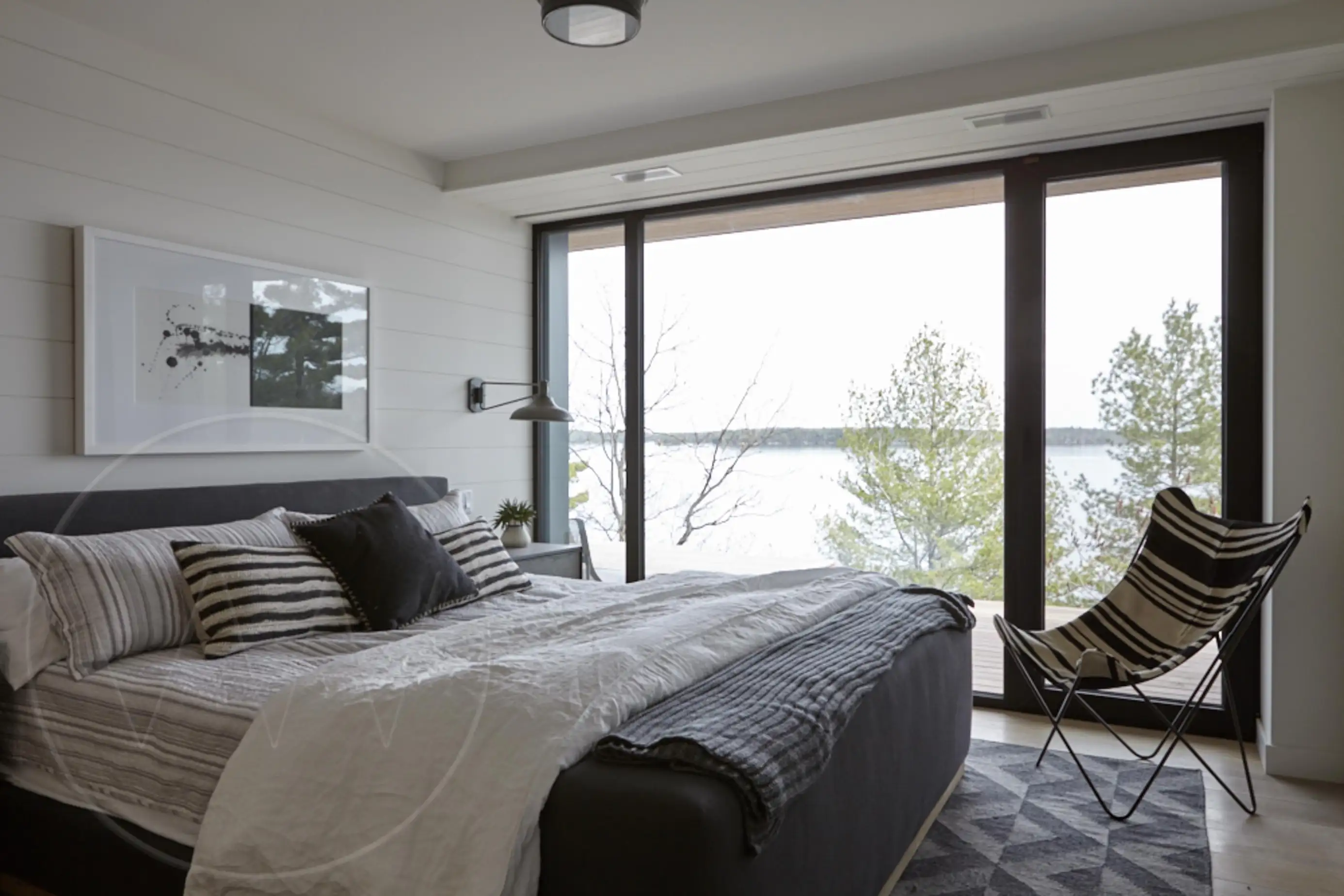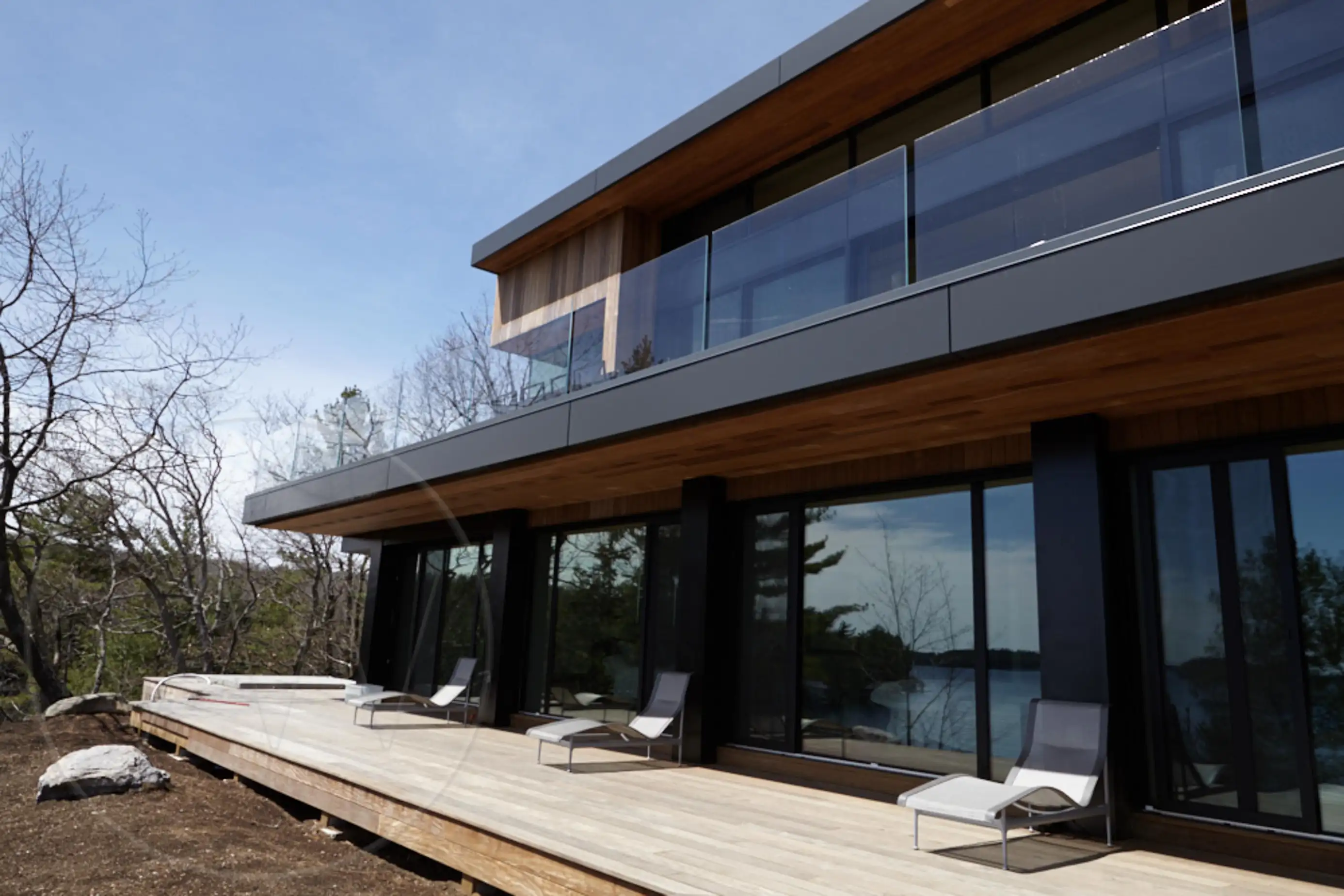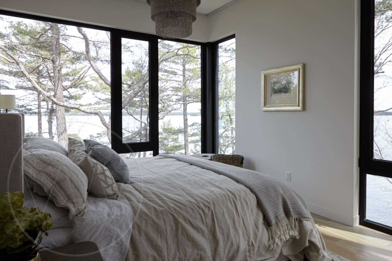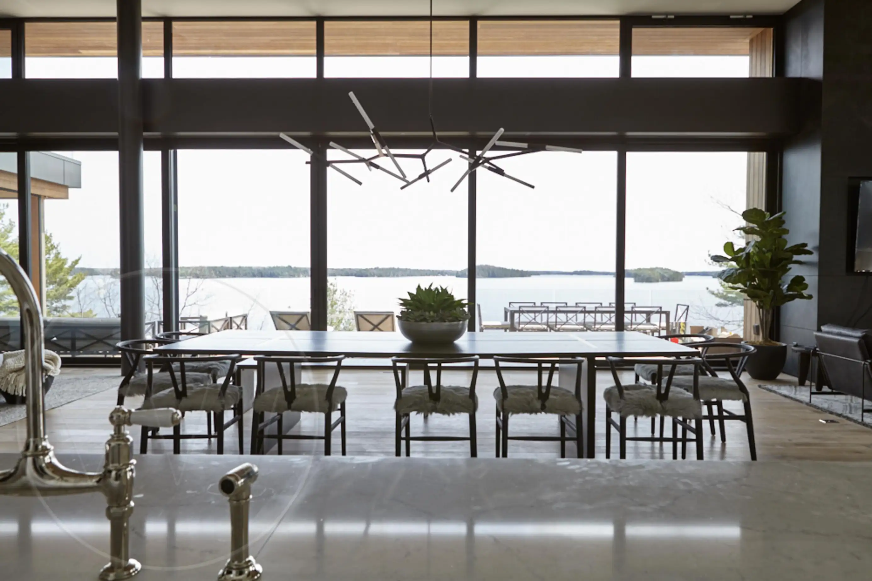 Exquisite contemporary cottage on Lake Joseph. Situated on a point with desirable south exposure and privacy, this 12 bedroom 13 bathroom cottage has exceptional lake views.
