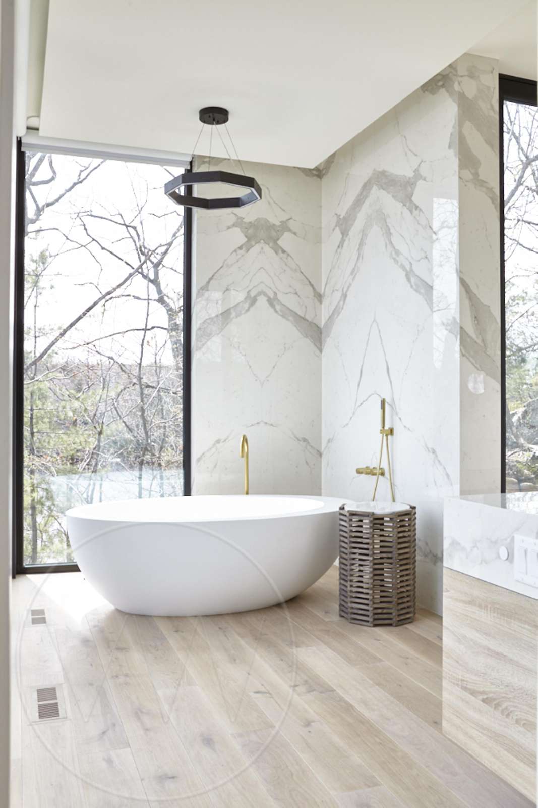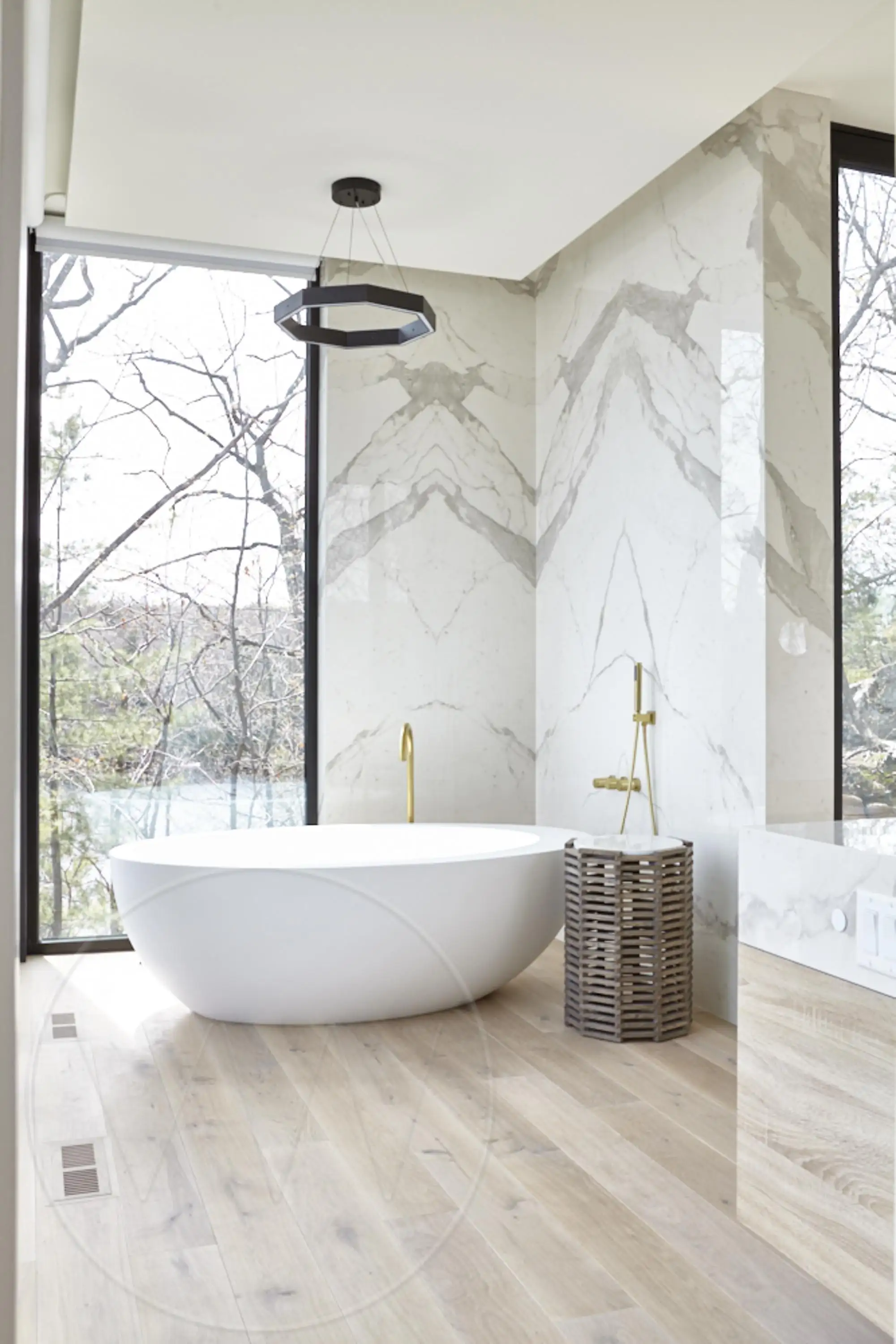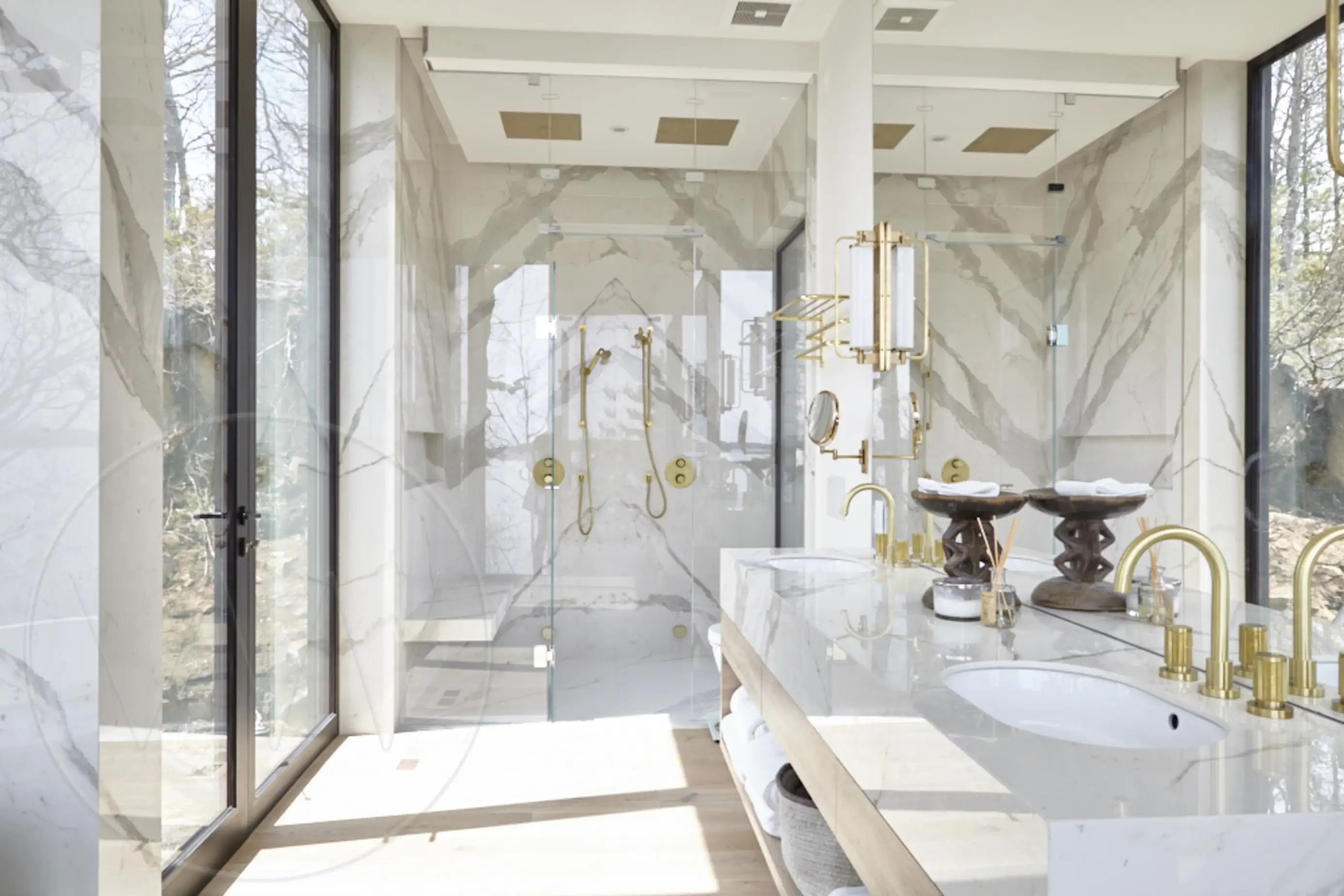 Bathroom 2 - 4-piece primary ensuite with double vanity, stand-alone steam shower and soaker tub and walkout to outdoor shower