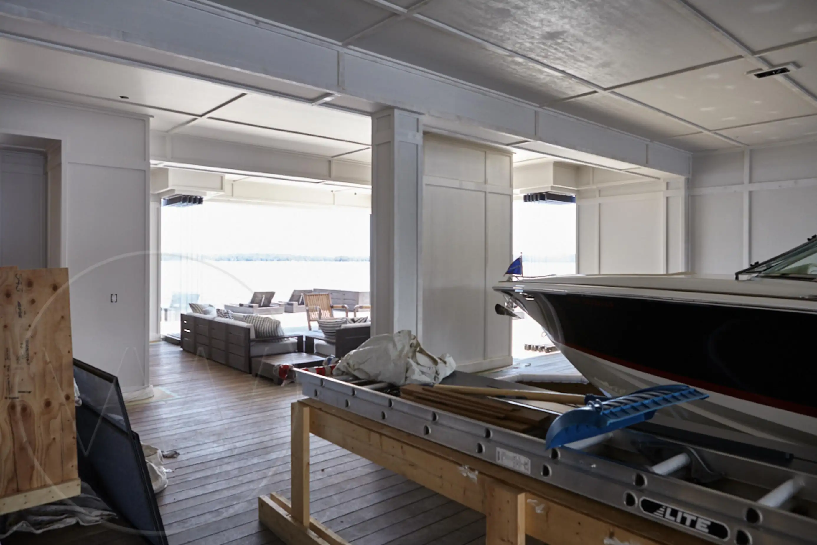The boathouse is equipped with air conditioning