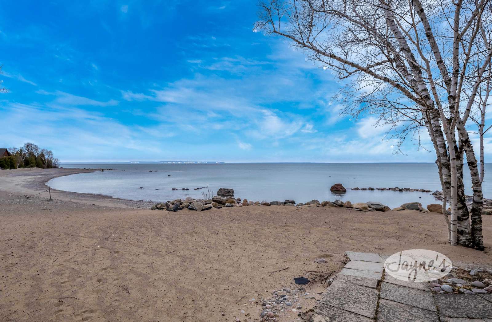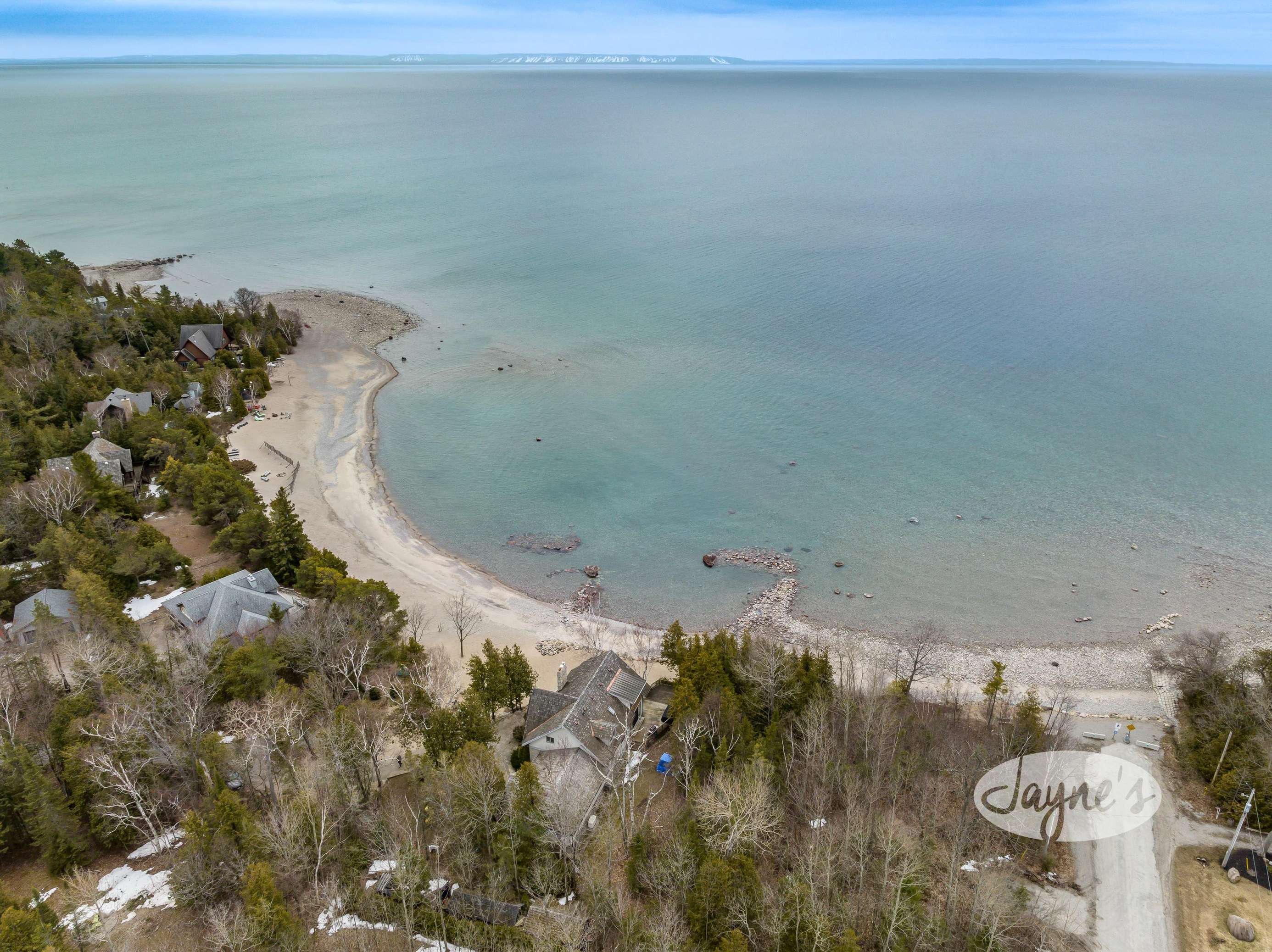 SANDYBEACH COTTAGE - Beautiful private beach on level land and shallow entry into Georgian Bay. Circular driveway to cottage with double garage, lawn with kids play-structure and multiple seating areas including deck overlooking the lake.
