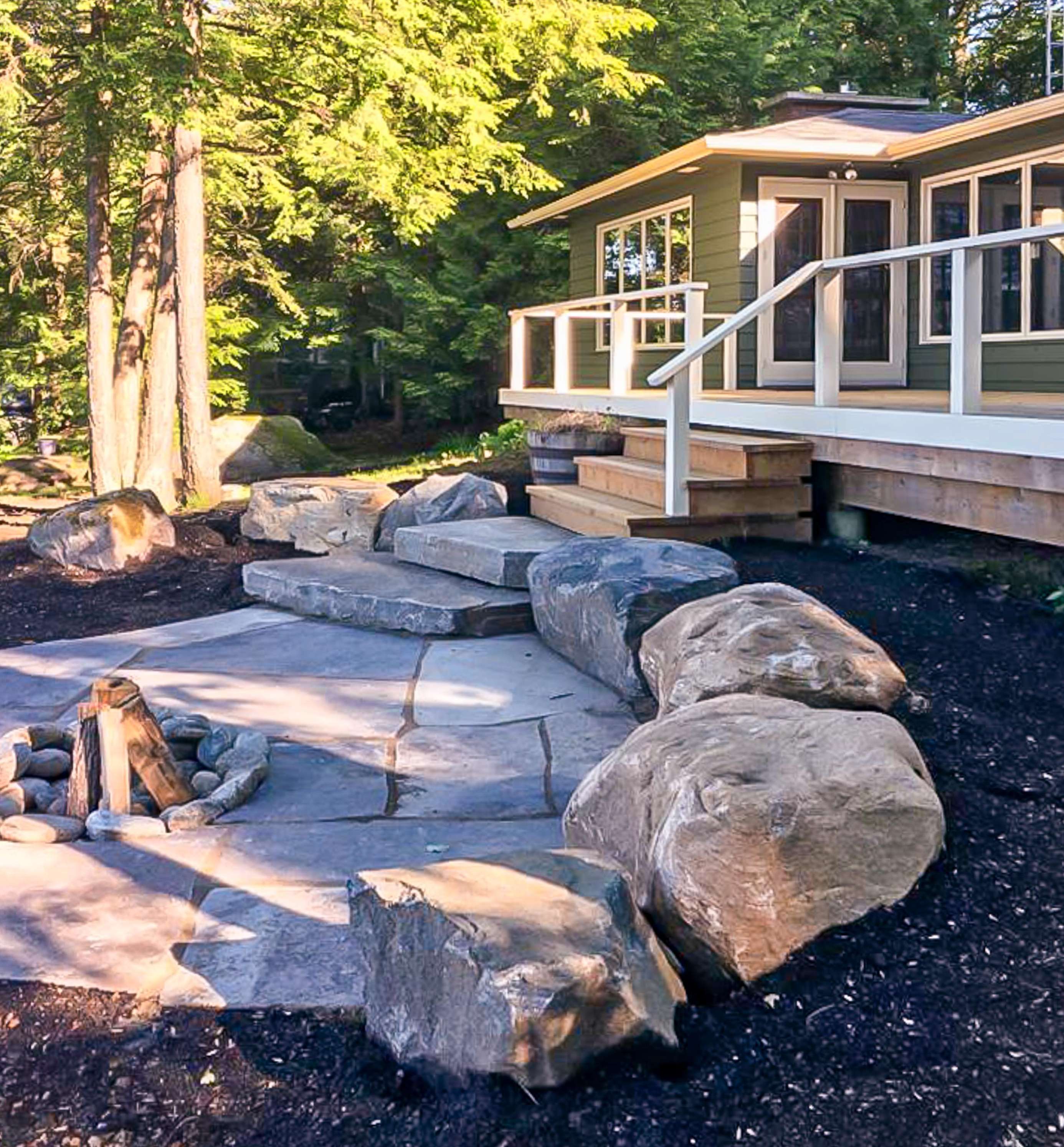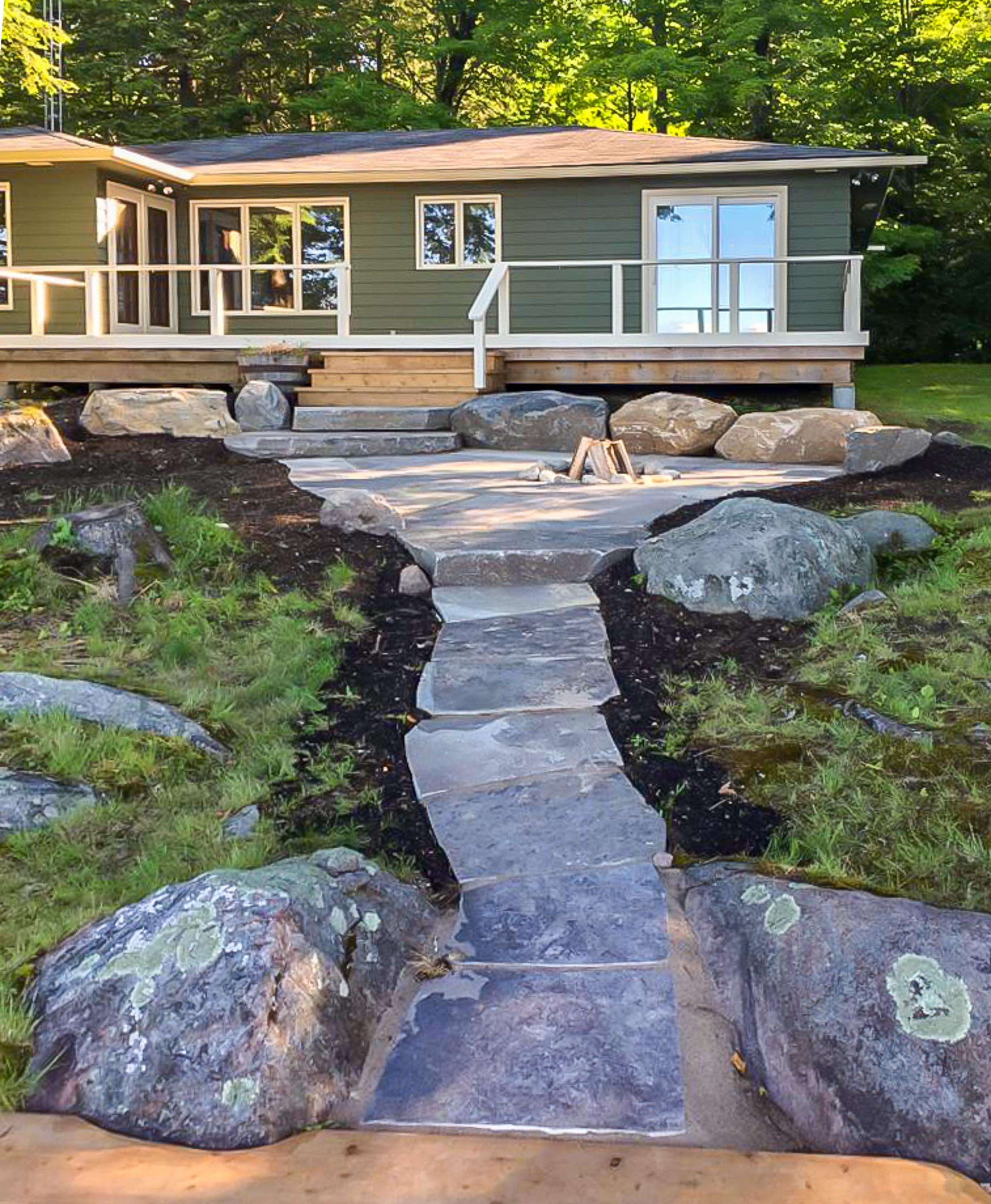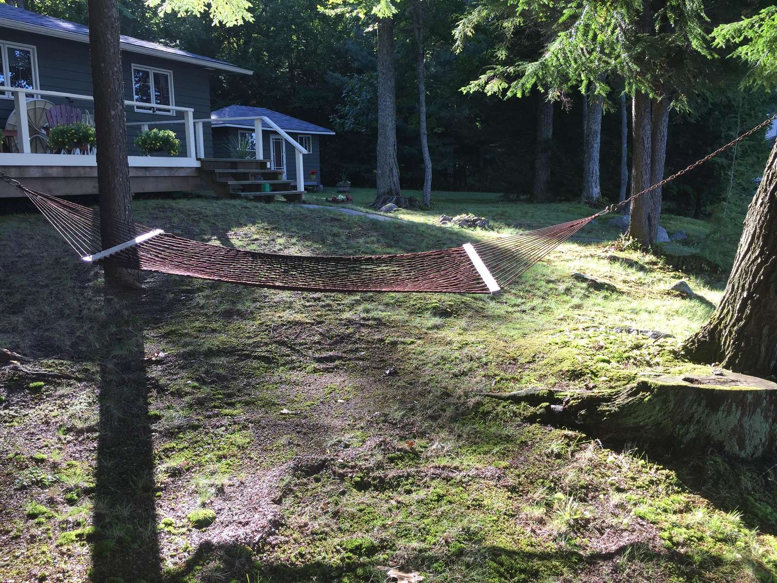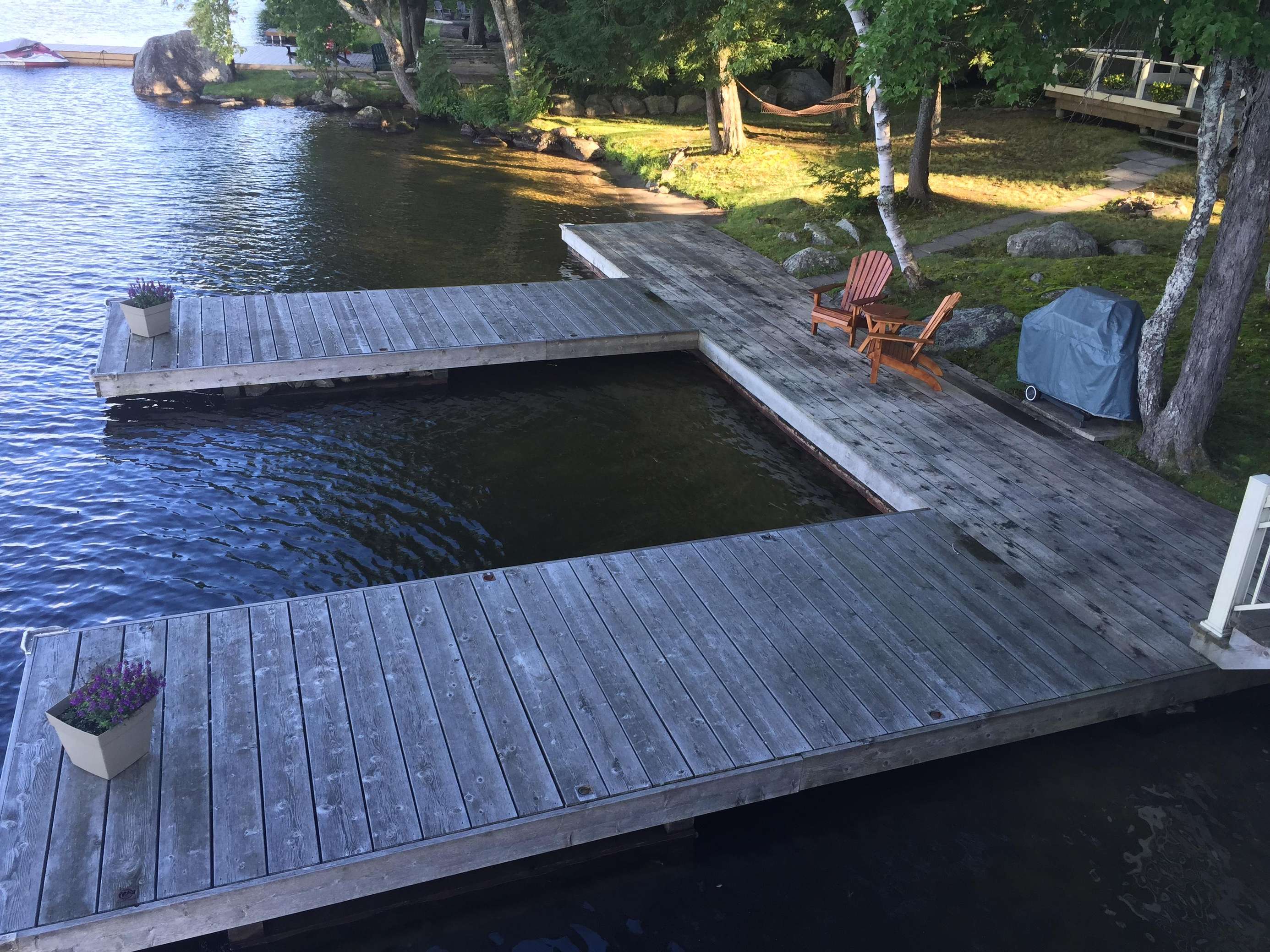 SERENITY BEACH is a great family cottage! 150' lake frontage. Flat tableland make this cottage great for the young and young-at-heart. Soft grassy lot with enough depth before the shore line for the young to play about. Rooftop sundeck. The water at the end of the dock is 8 feet deep and there is a nice hard-packed sand beach about 40' long which runs over the dock area. The beach is great for easy water entry and swimming for the young. Relax in the hammock as the day draws down then enjoy the evening by the waterside fire pit.