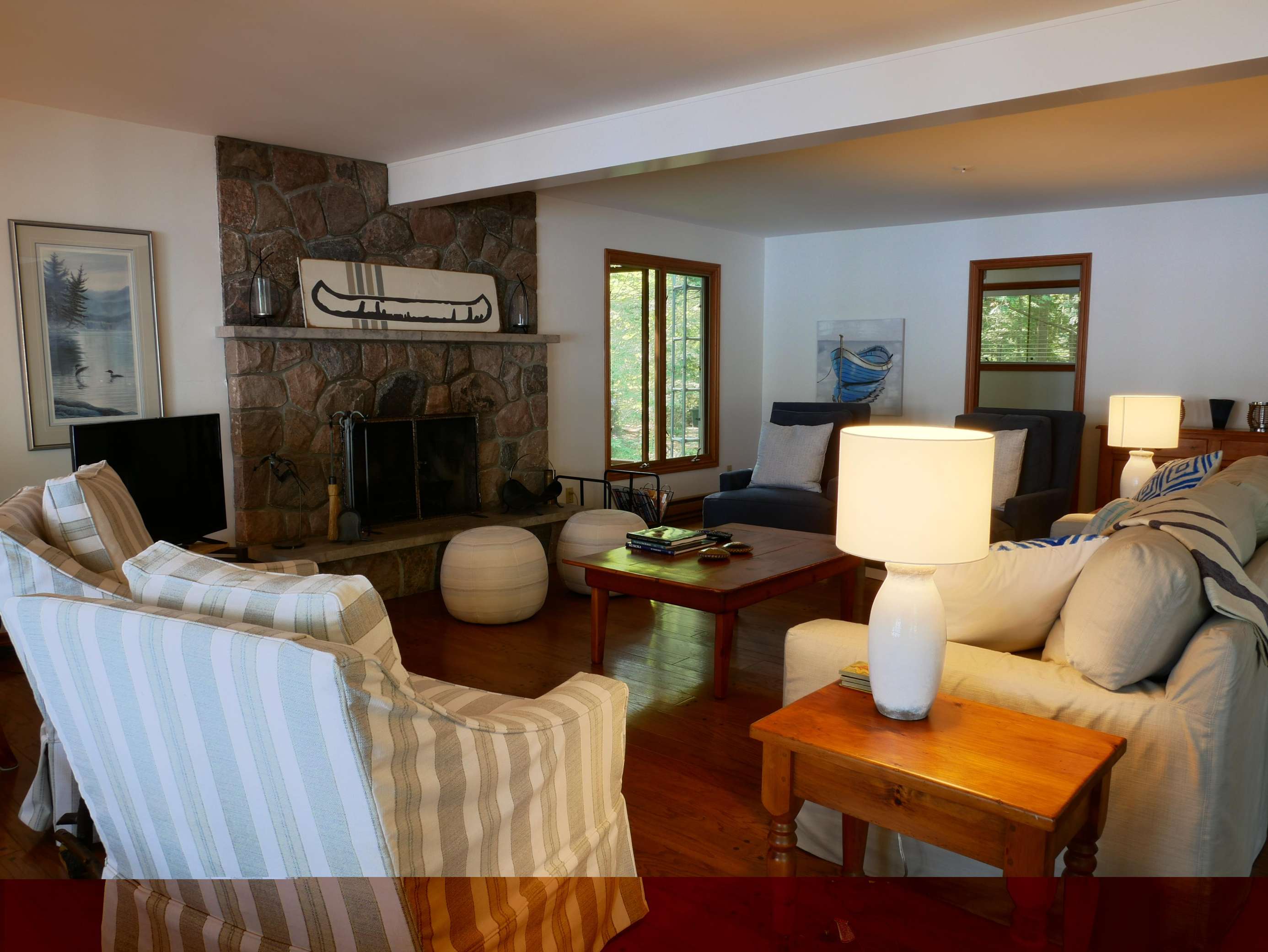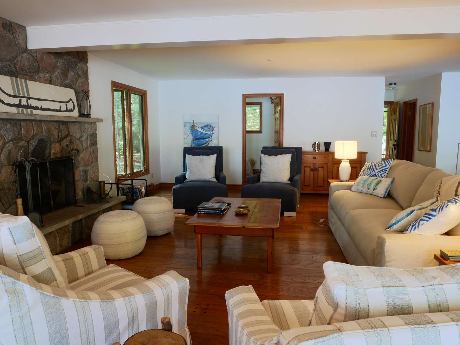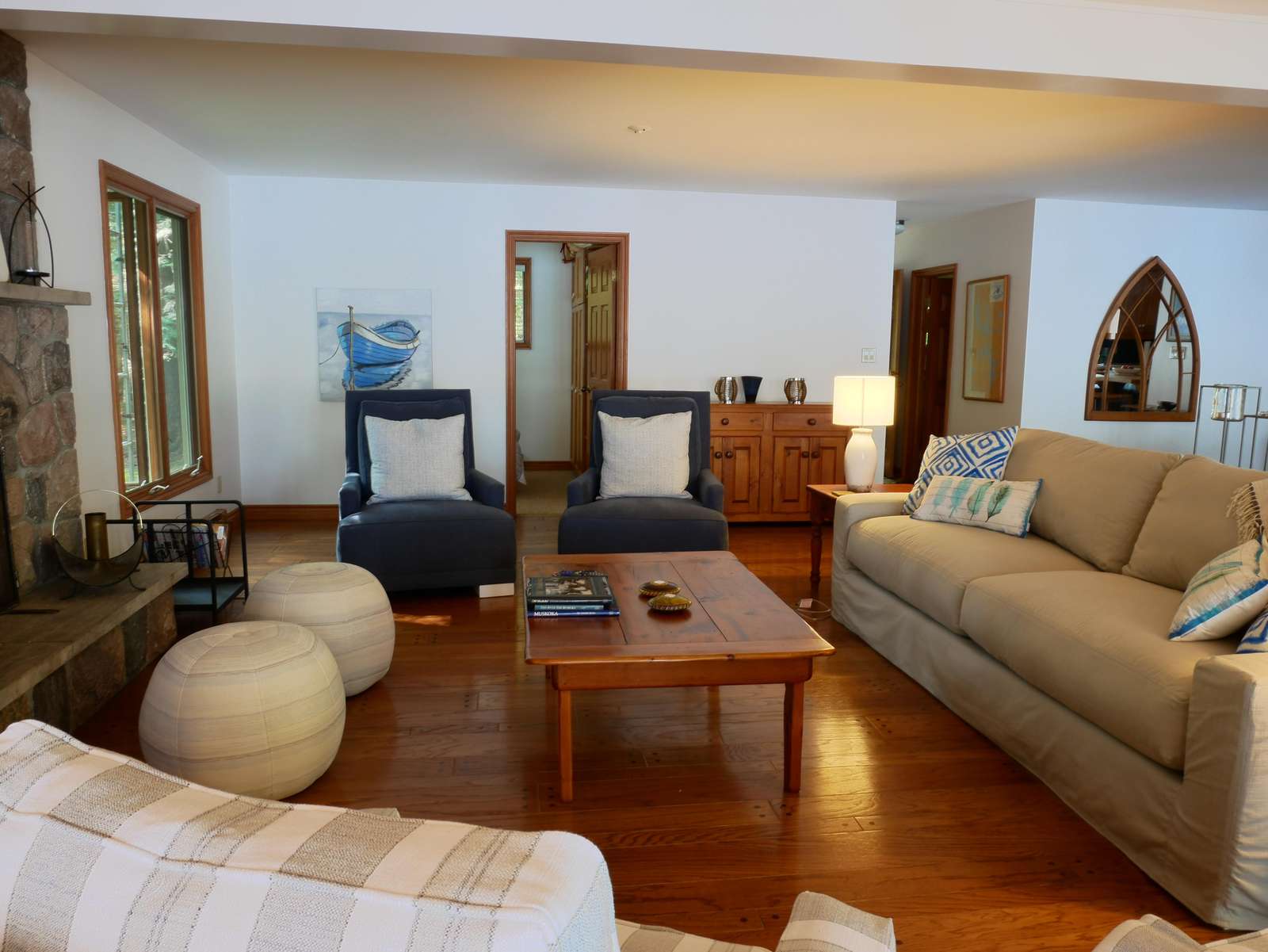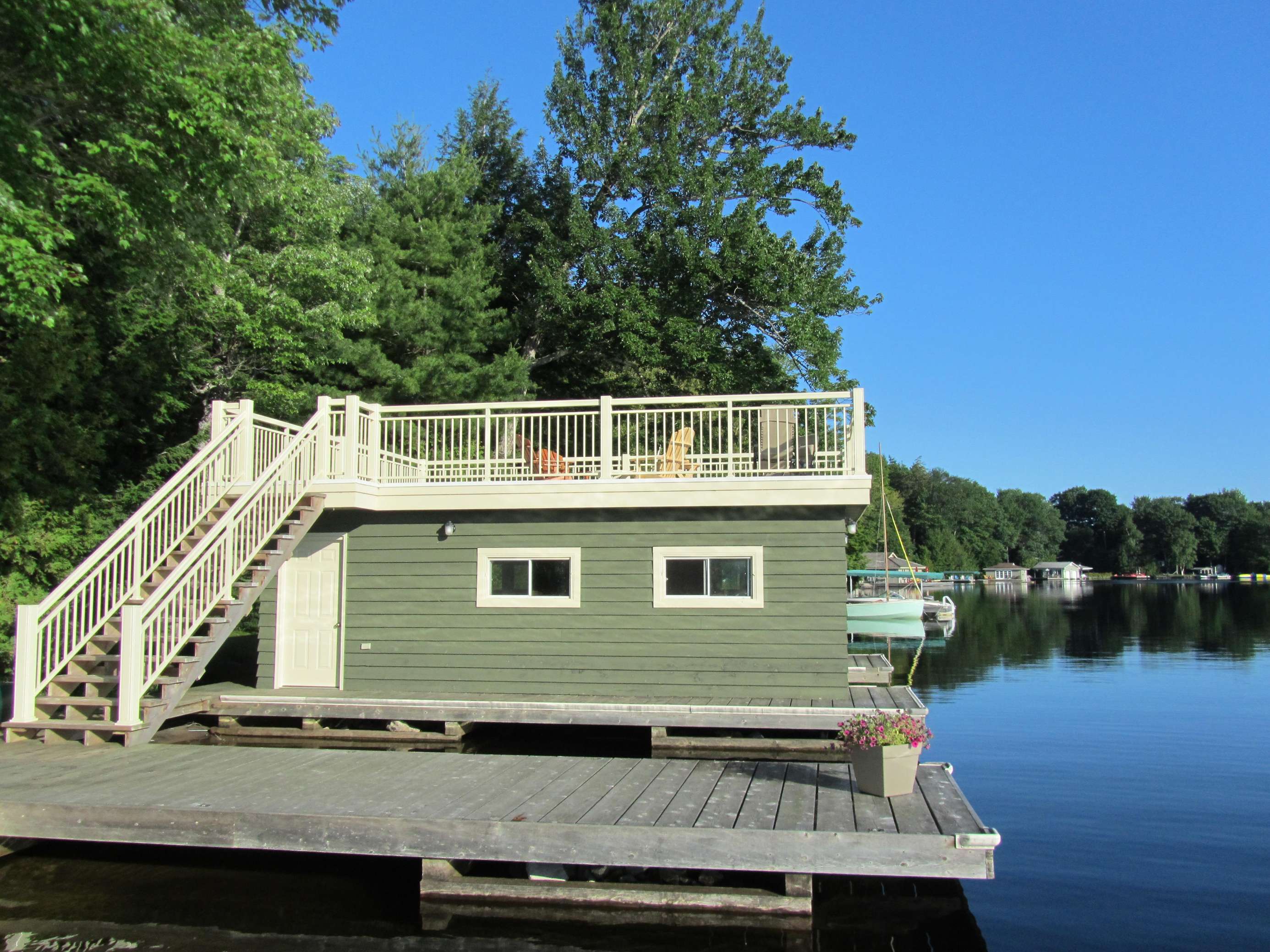 Newly renovated family cottage with it all! Affordable and immaculately maintained. 5 bdrms, beach, level lot, spacious dock and boathouse deck, packed sandy beach, guest bunkie, open-concept, kayak, firepit, what more can one ask for?