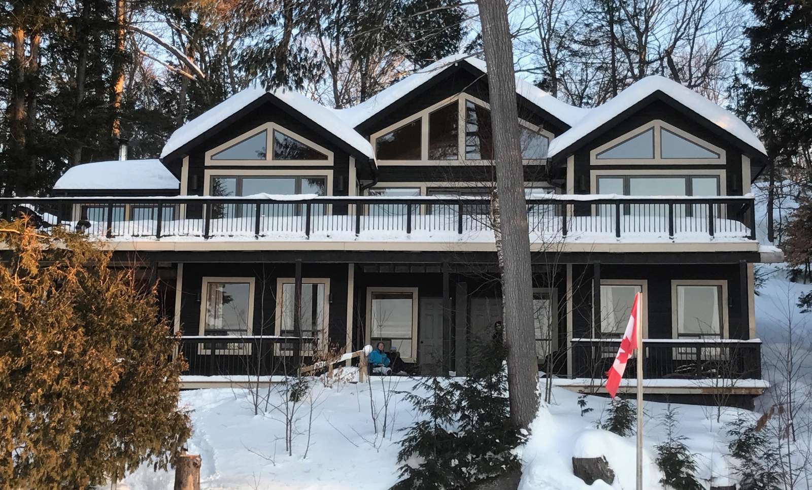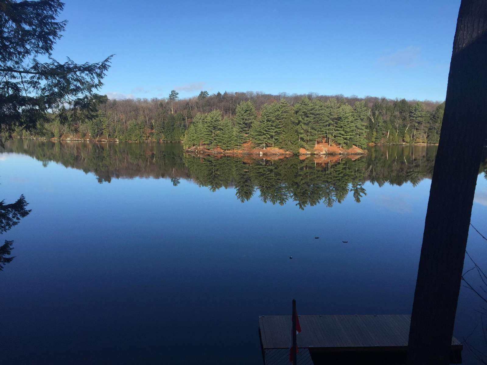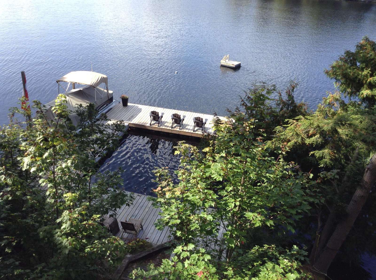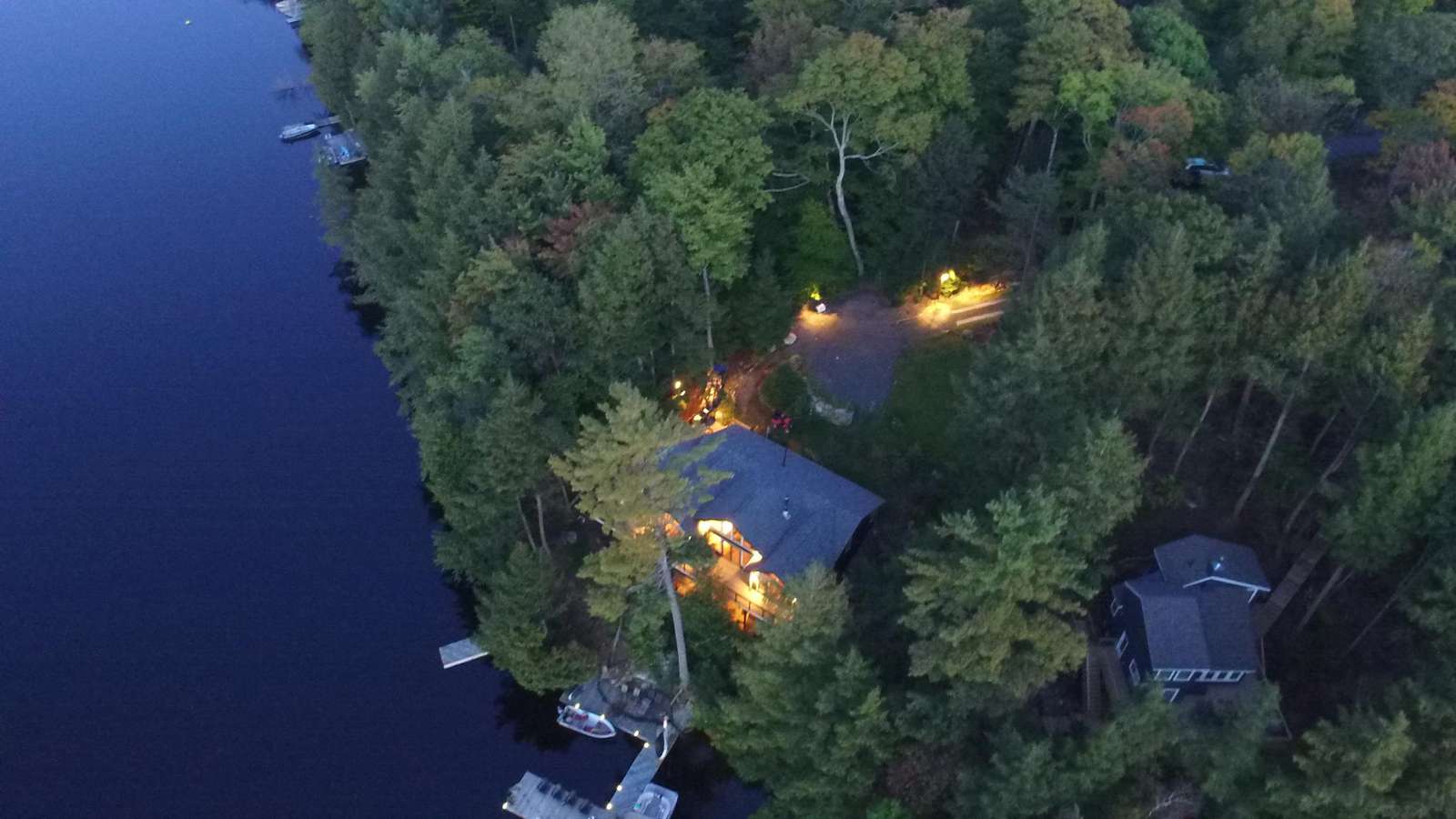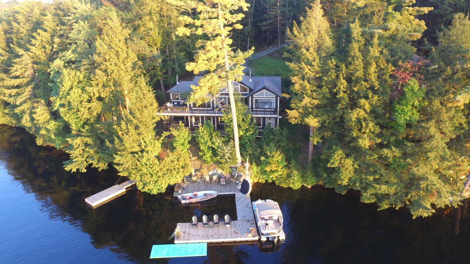 SERENITY ON CRANE LAKE is very private (with an empty lot beside the cottage) and large U-shaped dock, hot tub, kayaks, canoe, satellite, fireplace and separate "kids" bunkie so lots to do outdoors in the elements or indoors on a rainy day.