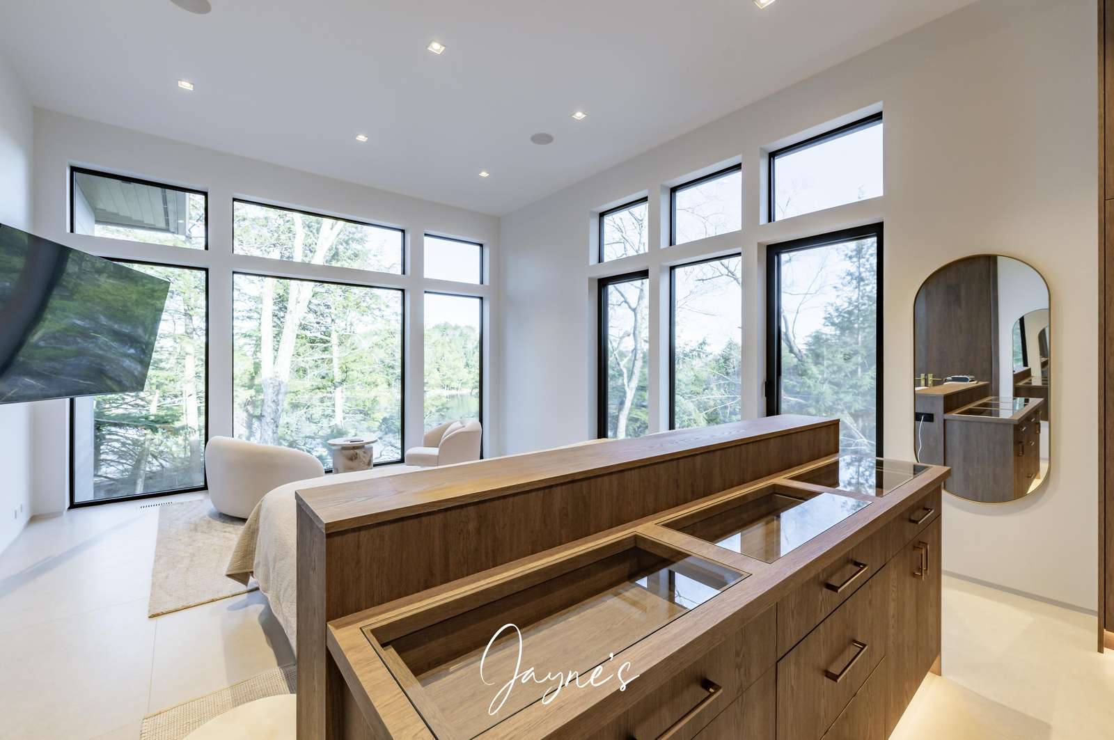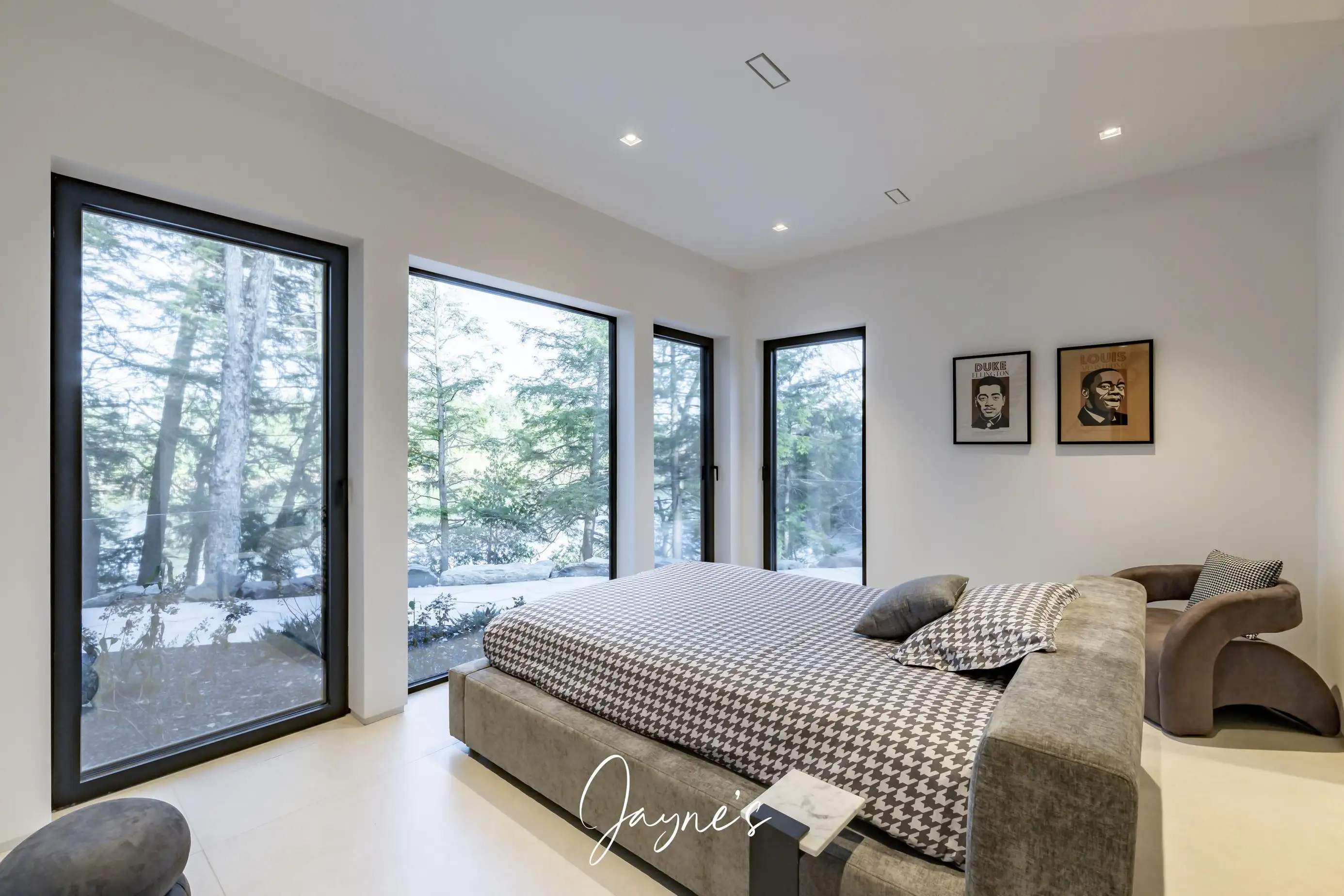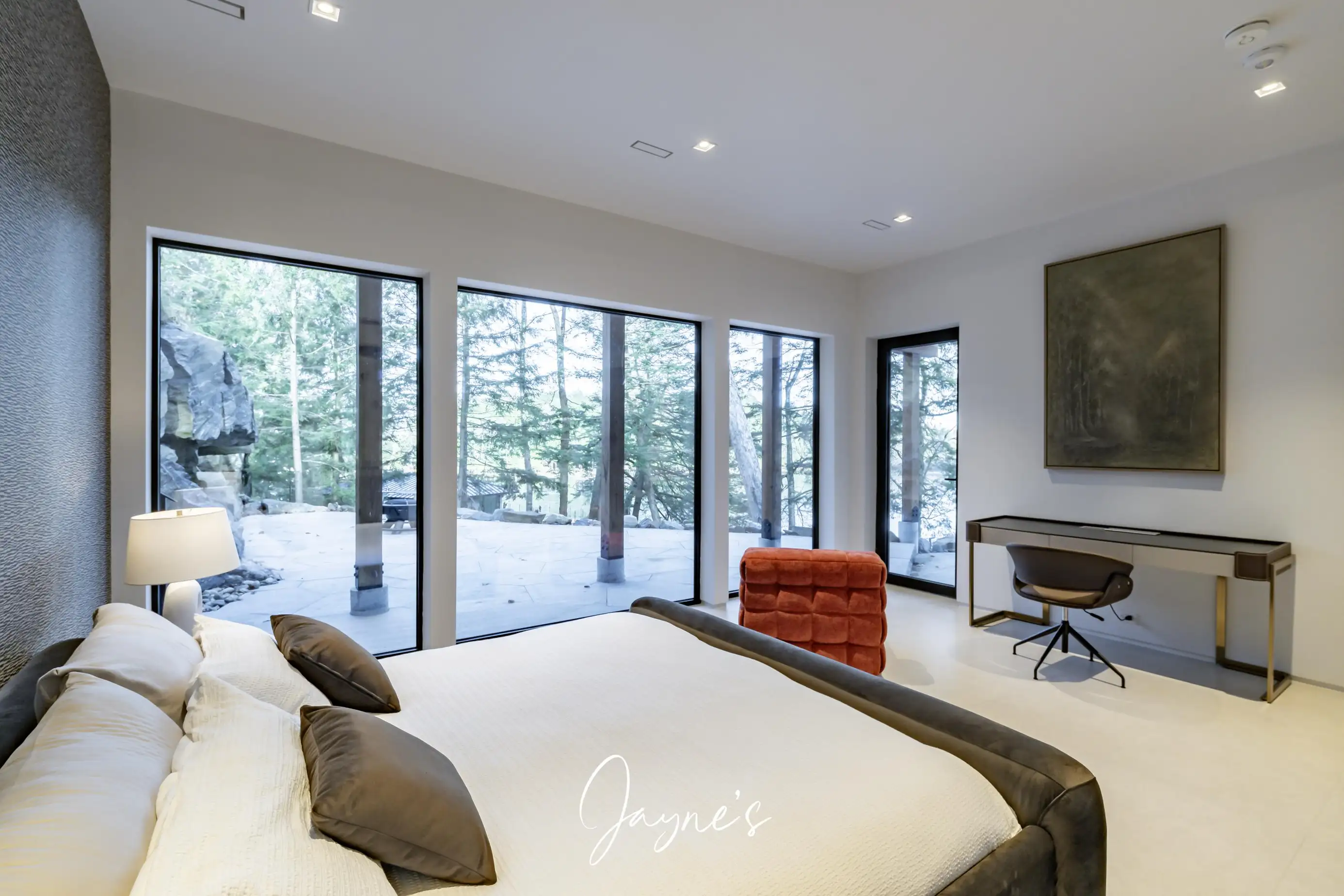 Lake Rosseau cottage boasts a striking modern design with north exposure and abundant natural light. Featuring six spacious bedrooms and eight meticulously designed bathrooms this residence harmoniously combines luxury with comfort.