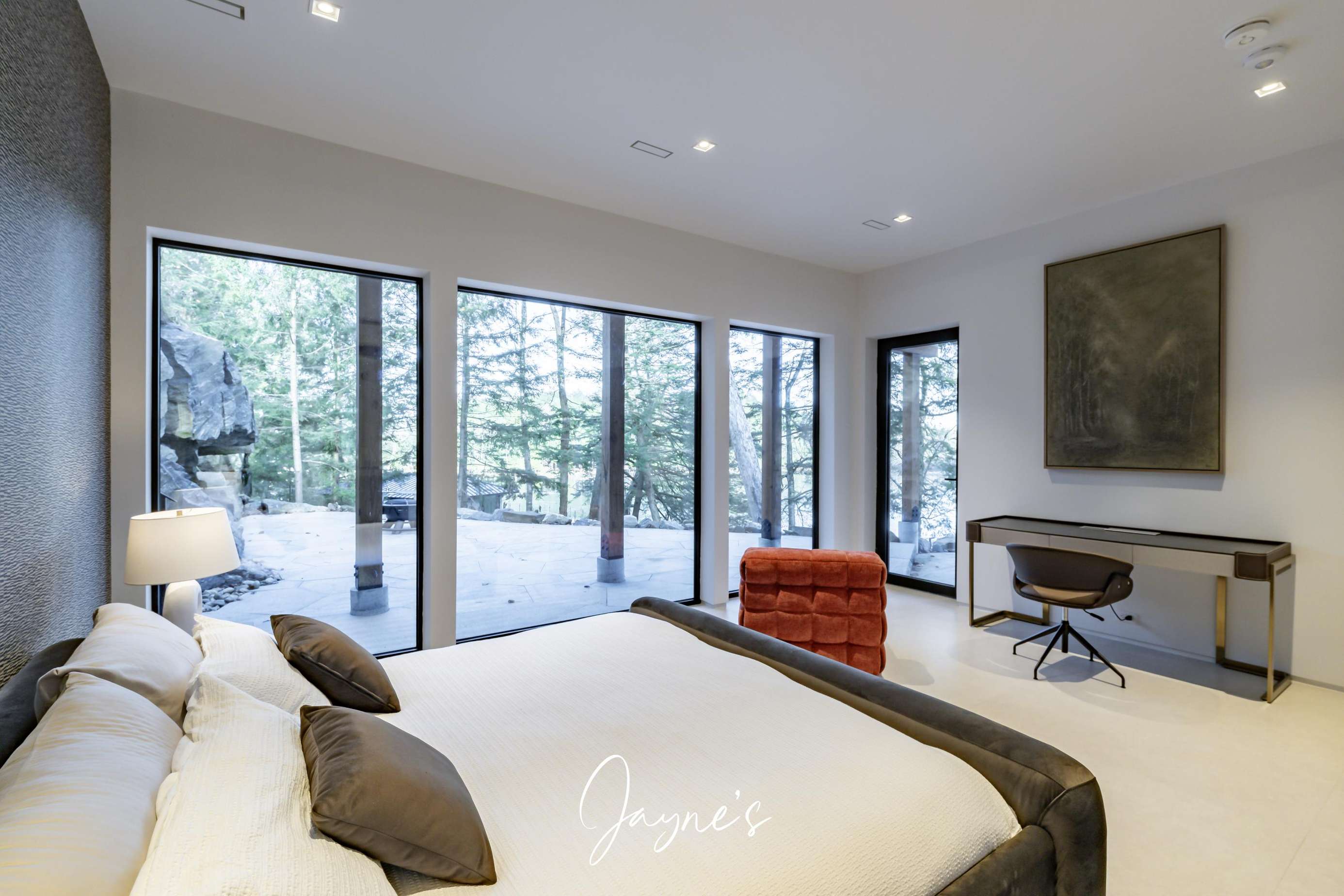 Bedroom 2 - King with desk, integrated blinds, chair, ensuite and walkout to patio