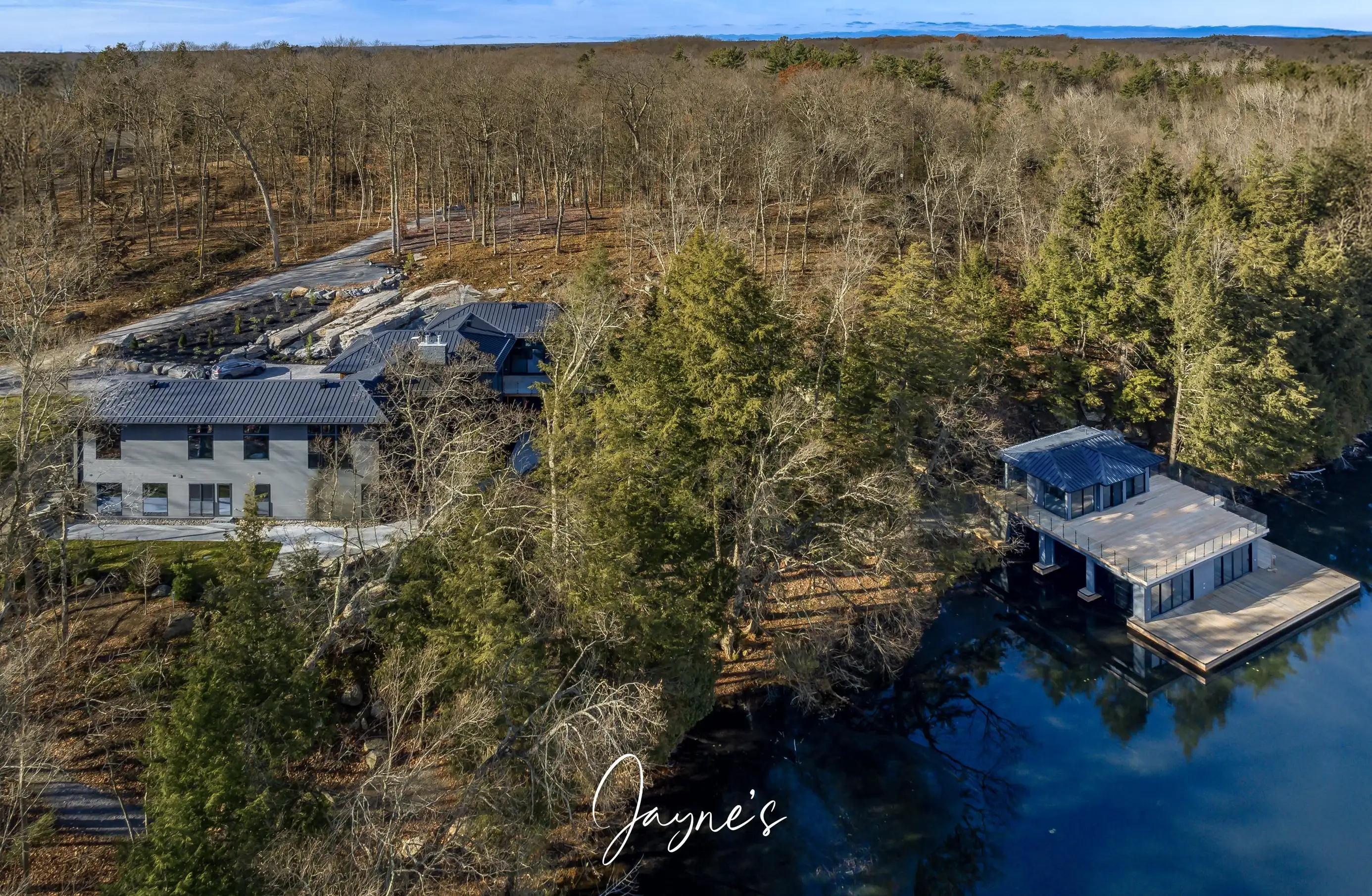 Lower boathouse has a powder room, 2 available boat slips, wet bar with fridge and dishwasher, cabana area and walkout to dock