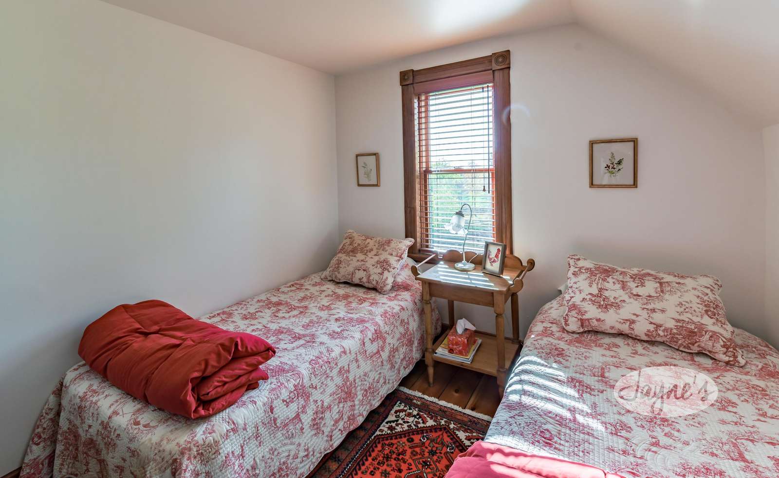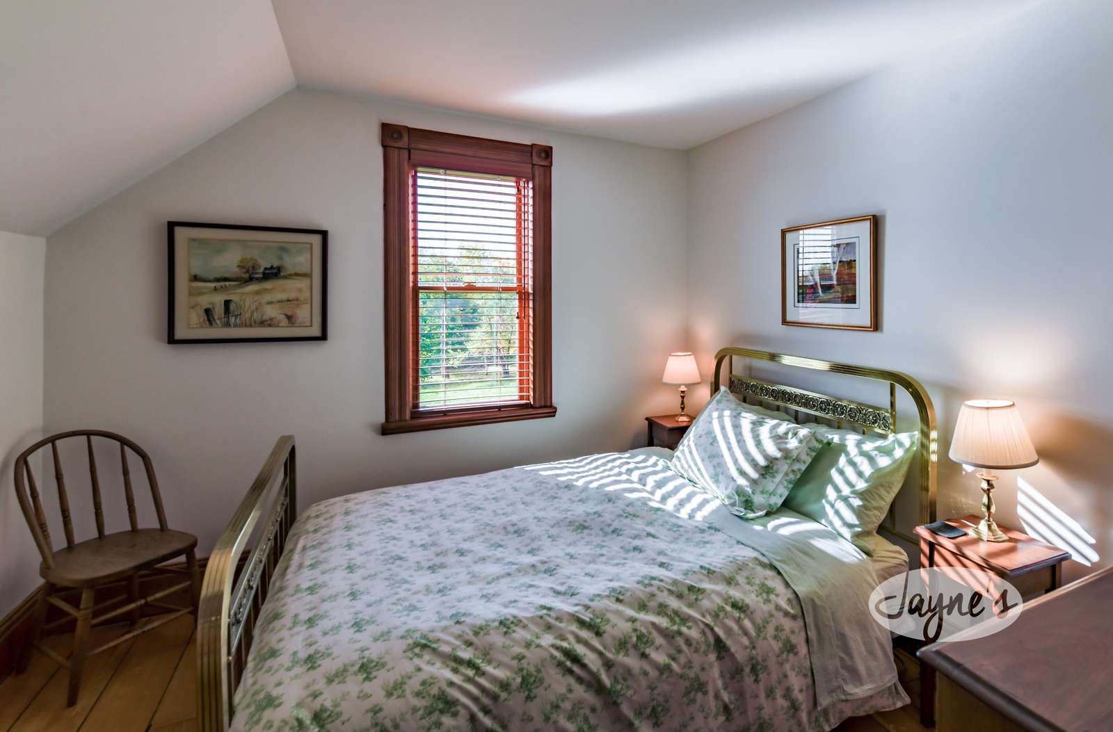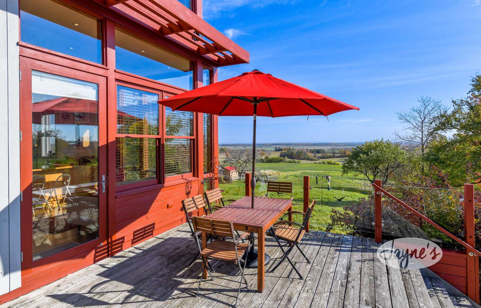 This charming and unique winter retreat rests on 25 acres of rolling hills and scenic ridges sheltered on one side by mature maples and spruce. Be ready to be captivated by this renovated century old farmhouse with a glass and wood addition designed to bring the spectacular outside in and it does just that. The home is completely private from the road and neighbours. Driving down the driveway one first comes upon a barn, followed by a turn at which point the home is suddenly in view. A welcoming deck with glass railings allows for an unobstructed expansive south and east view of the rolling country side and large pond.