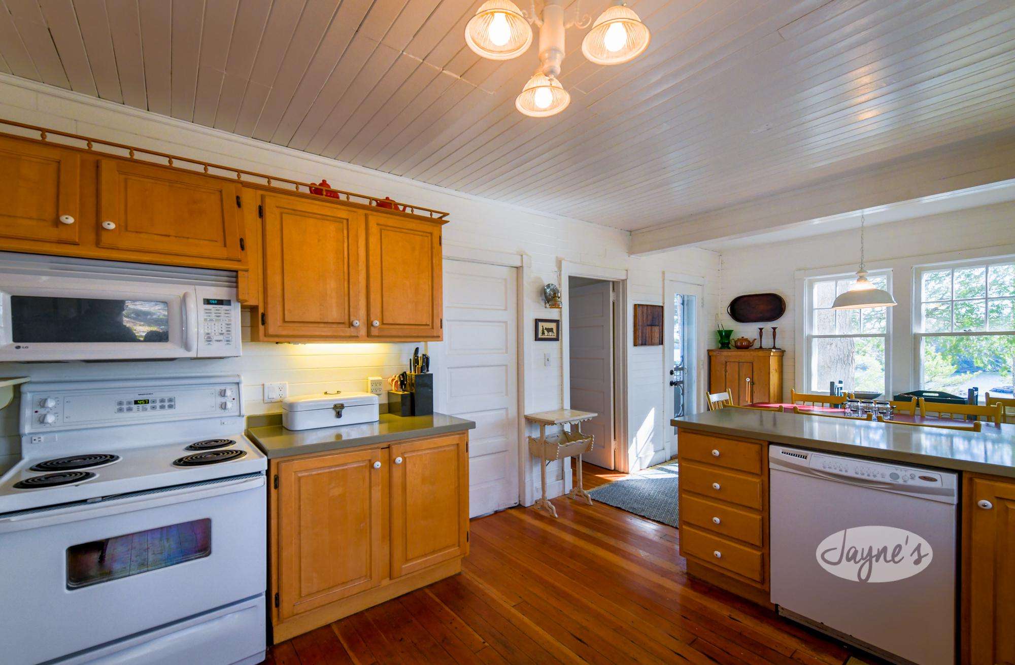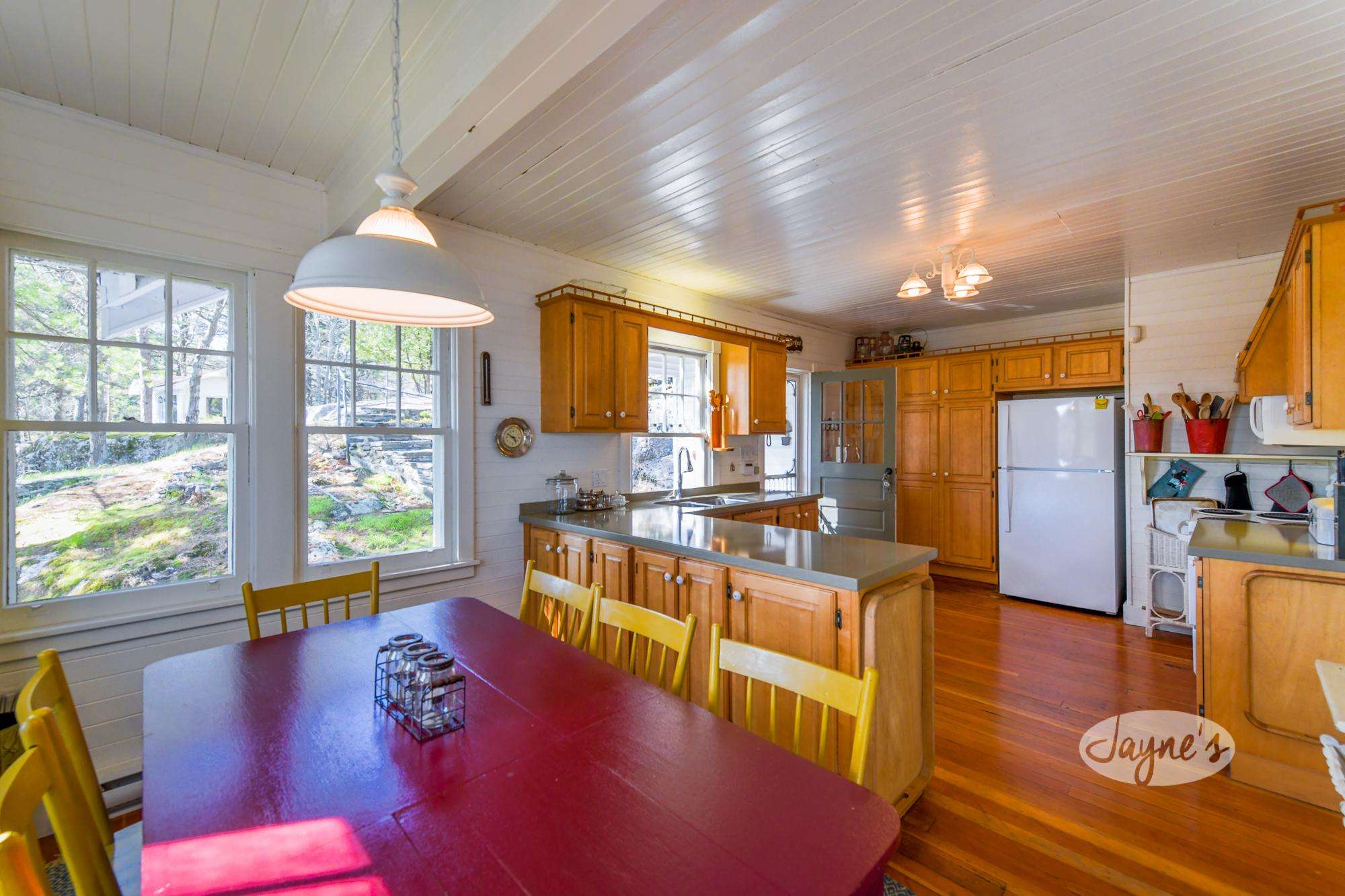 This modest eat in kitchen is well equipped with everything you will need to prepare meals during your stay. Enjoy watching your kids partake in a board game at the kitchen table while you're preparing dinner at this true family cottage.