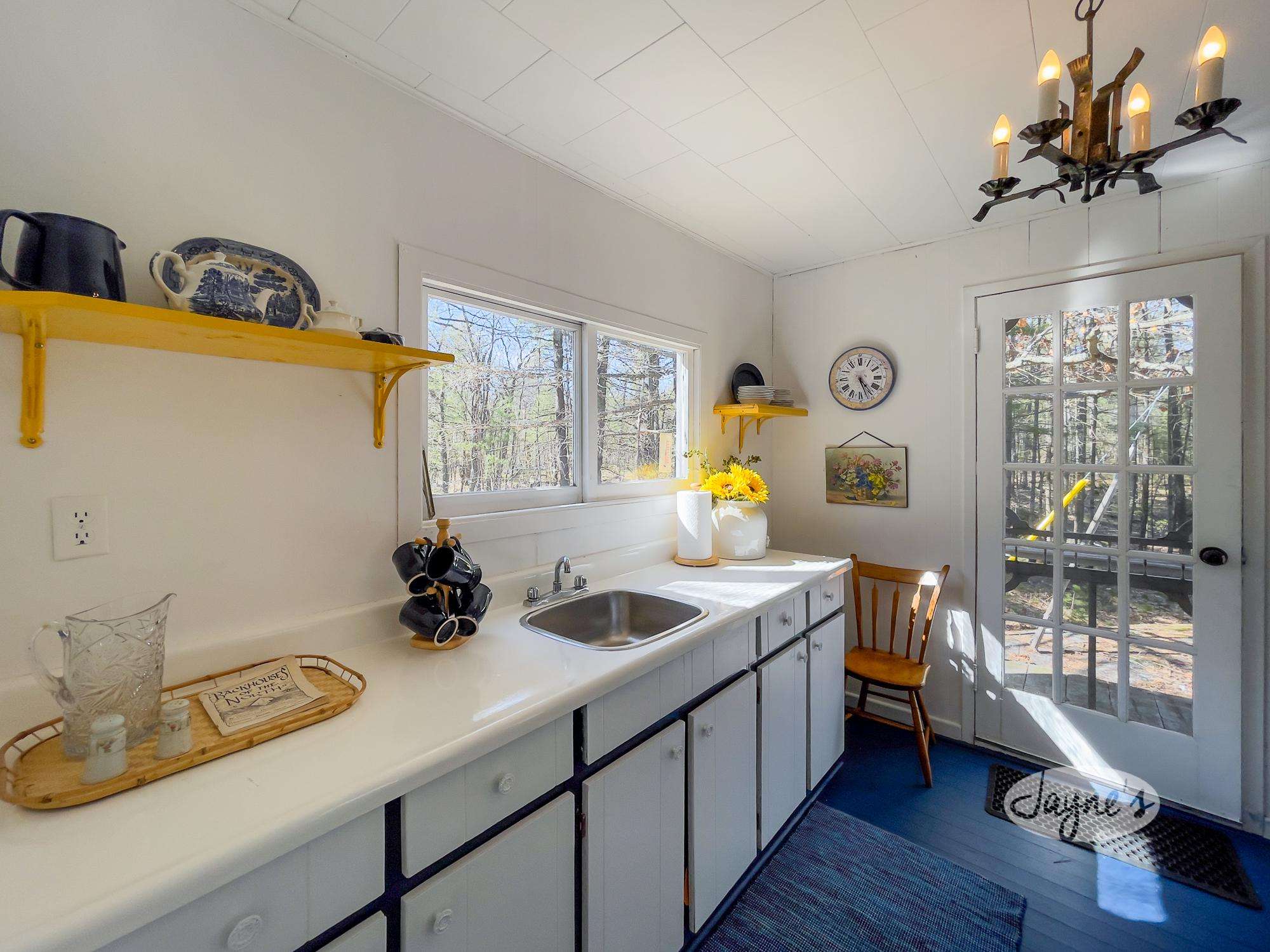 This guest cottage is a little bigger with a full bath, Queen bedroom and a full eat in kitchen.