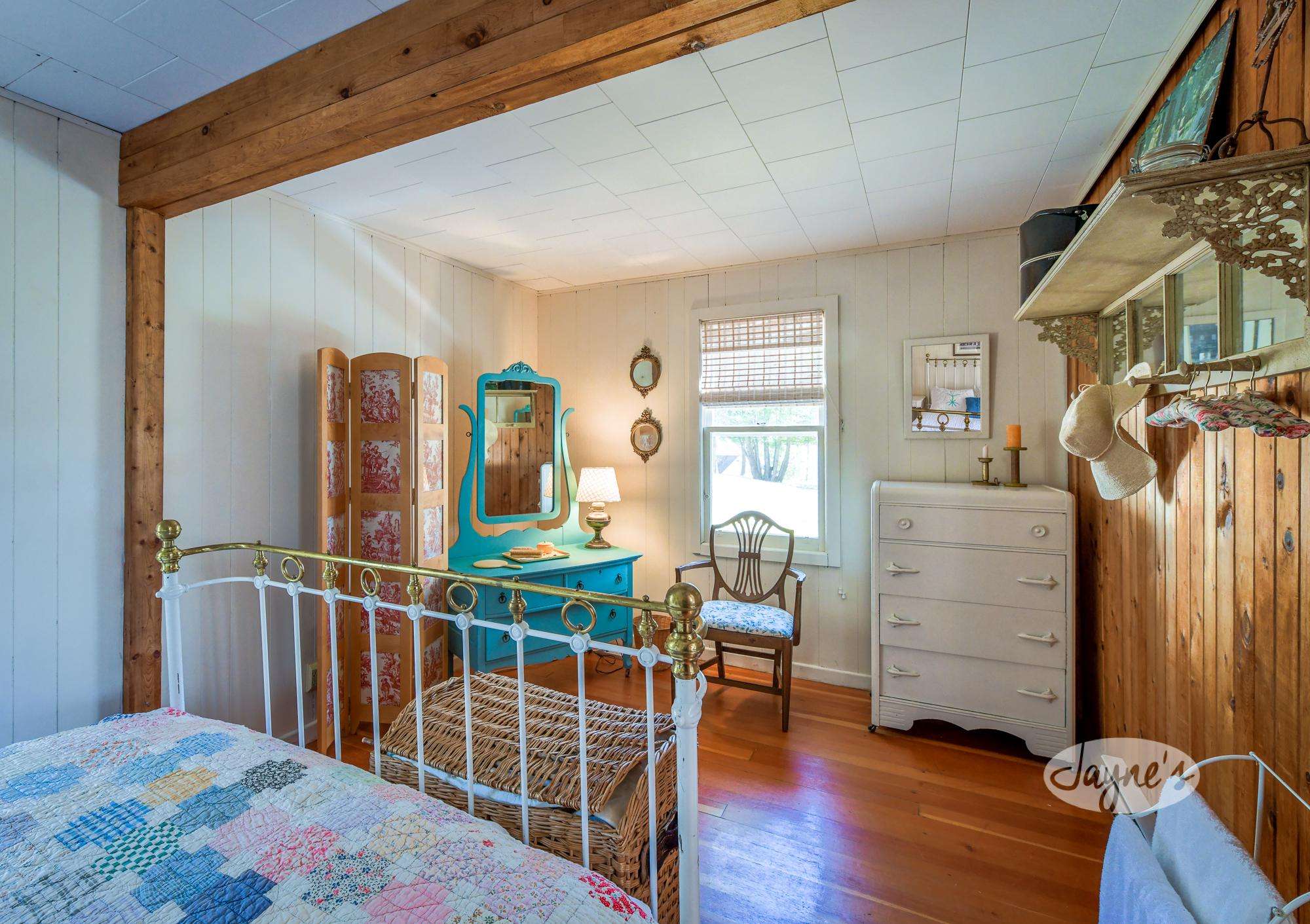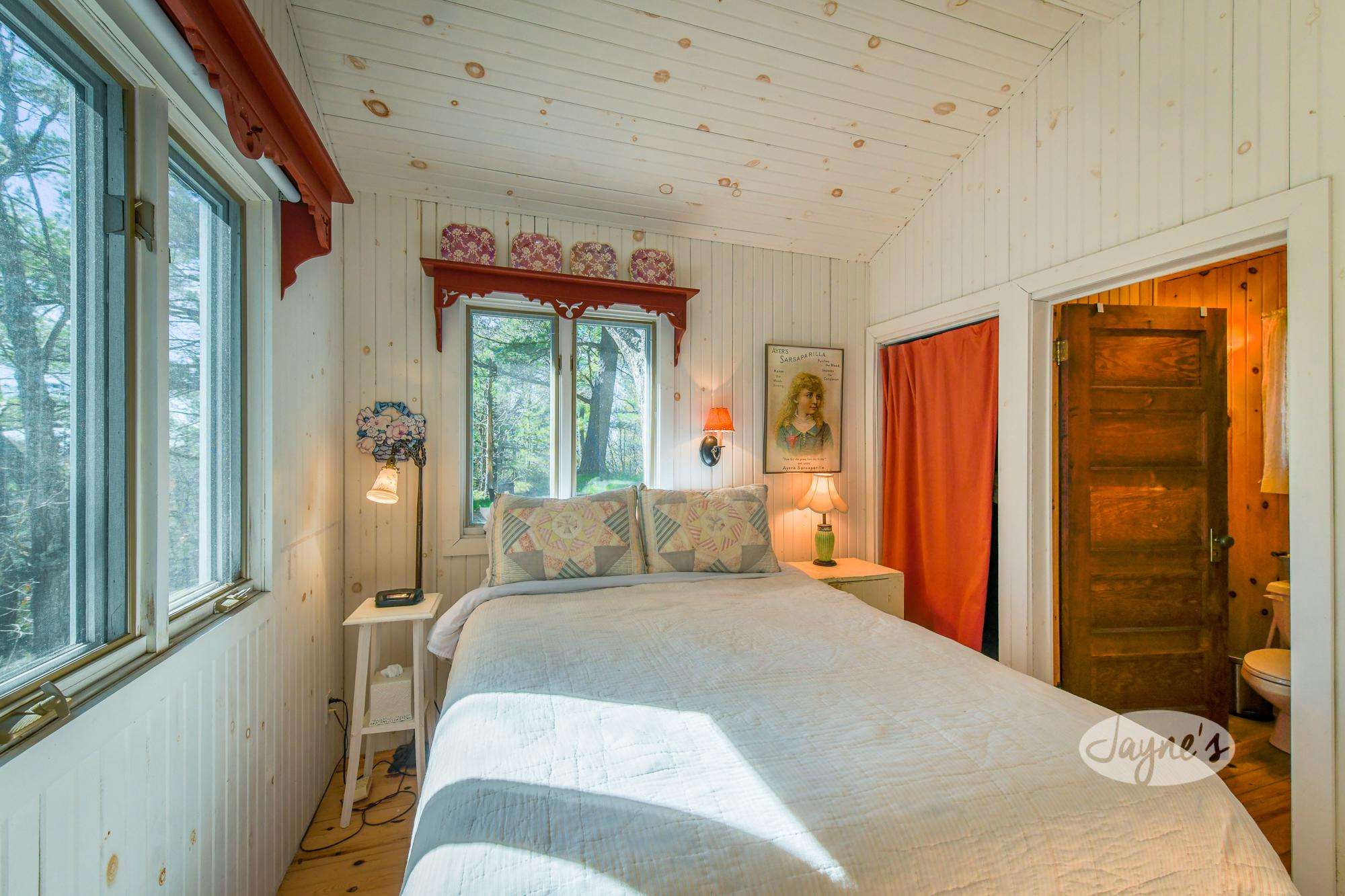 This guest cottage boasts a small sitting area with mini kitchen, 3 piece bath and Queen bedroom.