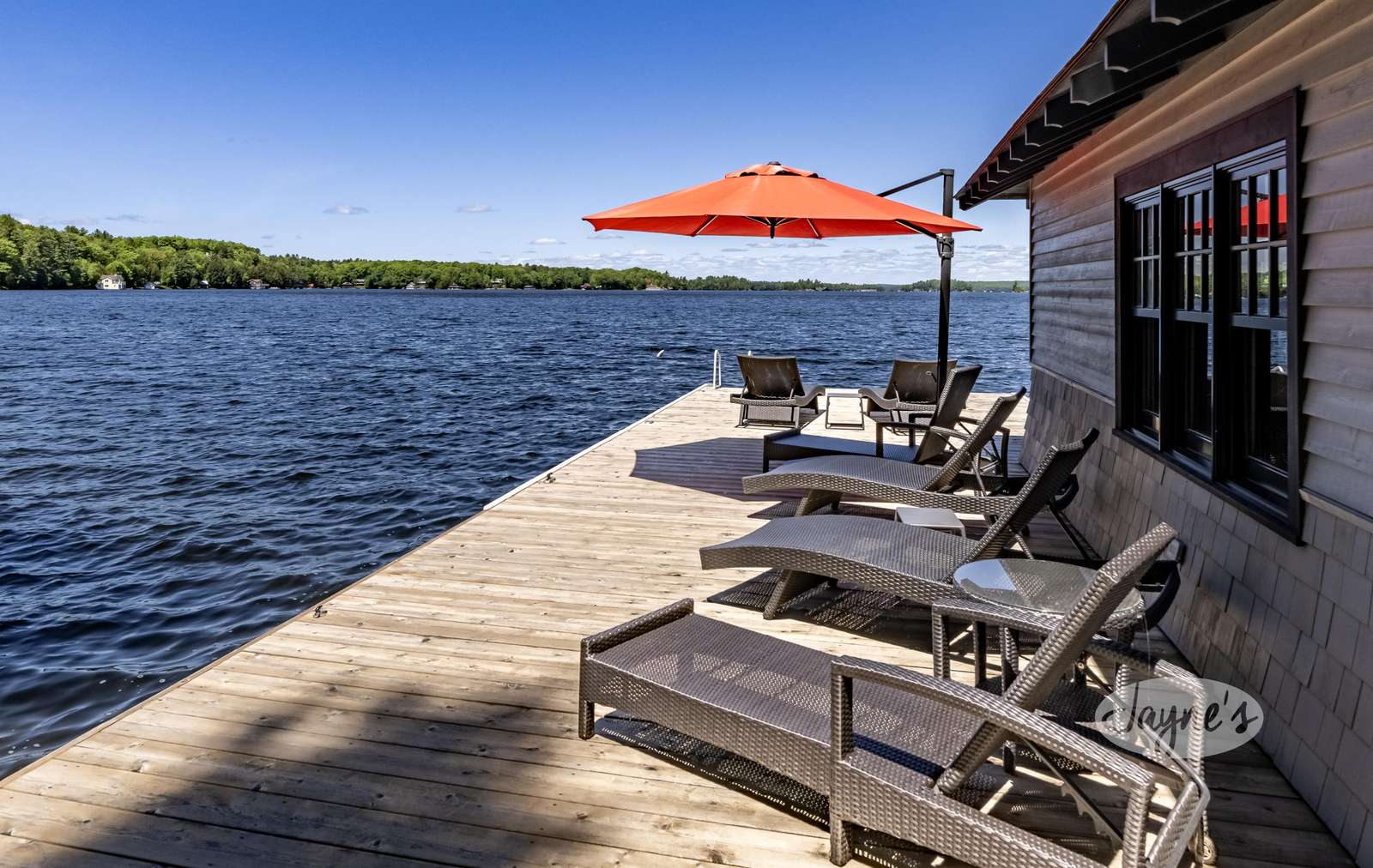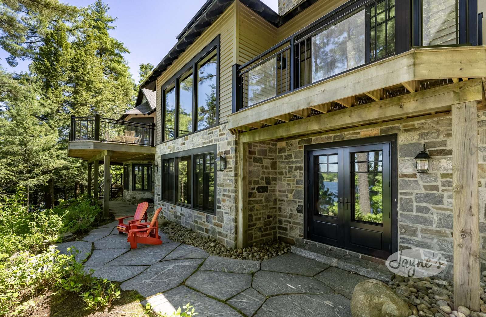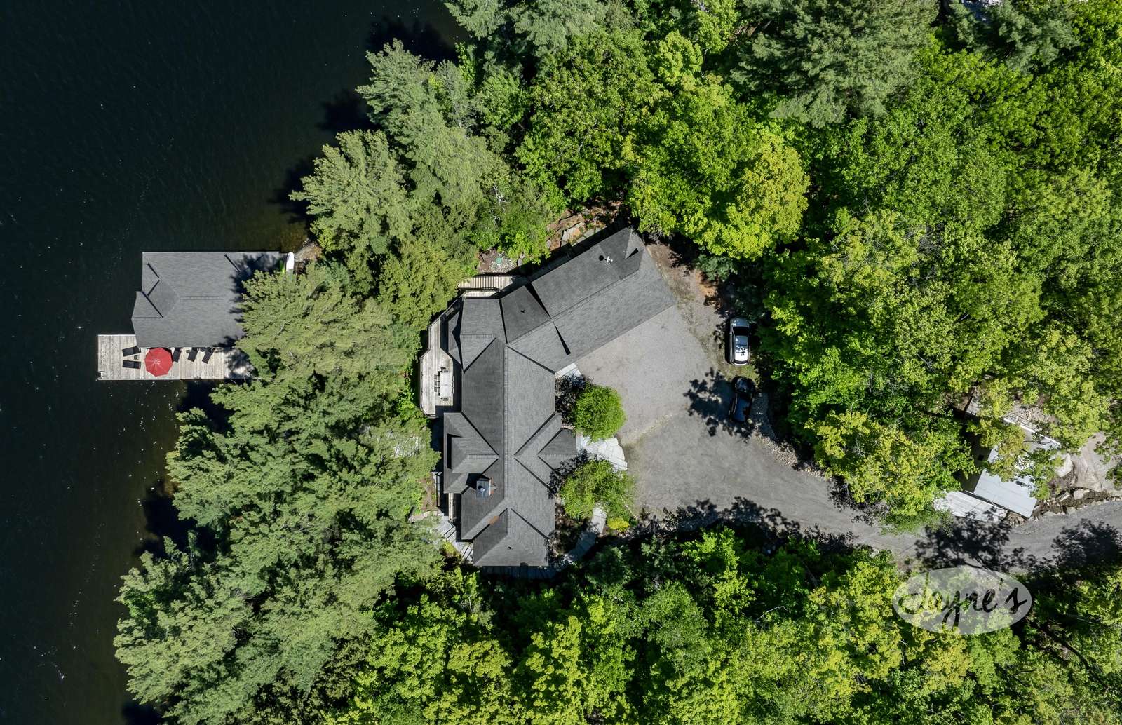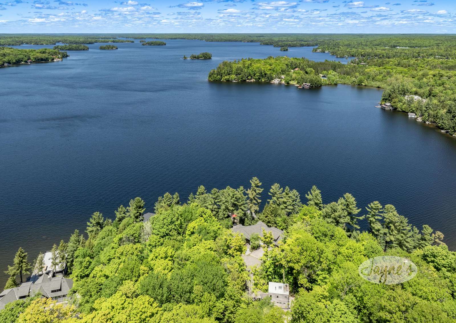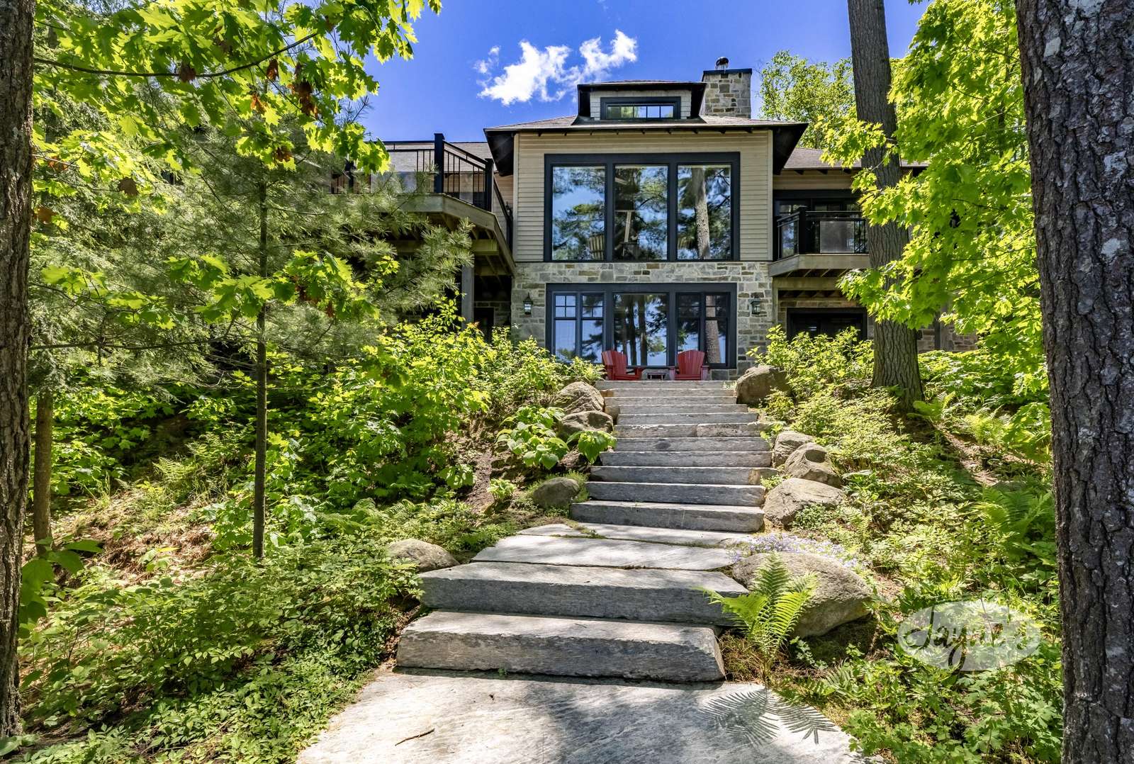 TALL TIMBERS - This stunning, custom-built cottage sits on over four acres of well-treed, beautifully-landscaped land in Arthurlie Bay, Lake Rosseau. Boasts 200' of prime Lake Rosseau frontage, a 3-slip boathouse complete with a kitchenette and bathroom, a spacious dock with lounge chairs, and a hot tub! Northwest exposure promises sunny days and breathtaking Muskoka sunsets! Equipped with path lighting and steps leading down to the rocky waterfront. Deep water off the end of the dock! There is also a 3-car garage with a BBQ and wine fridge.