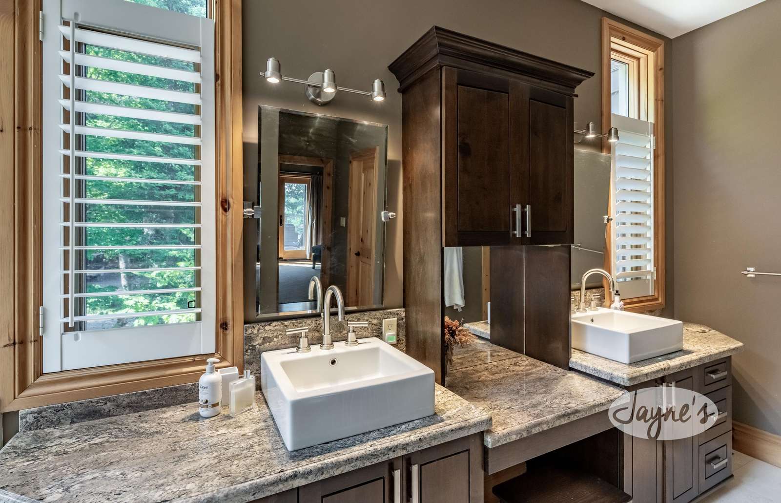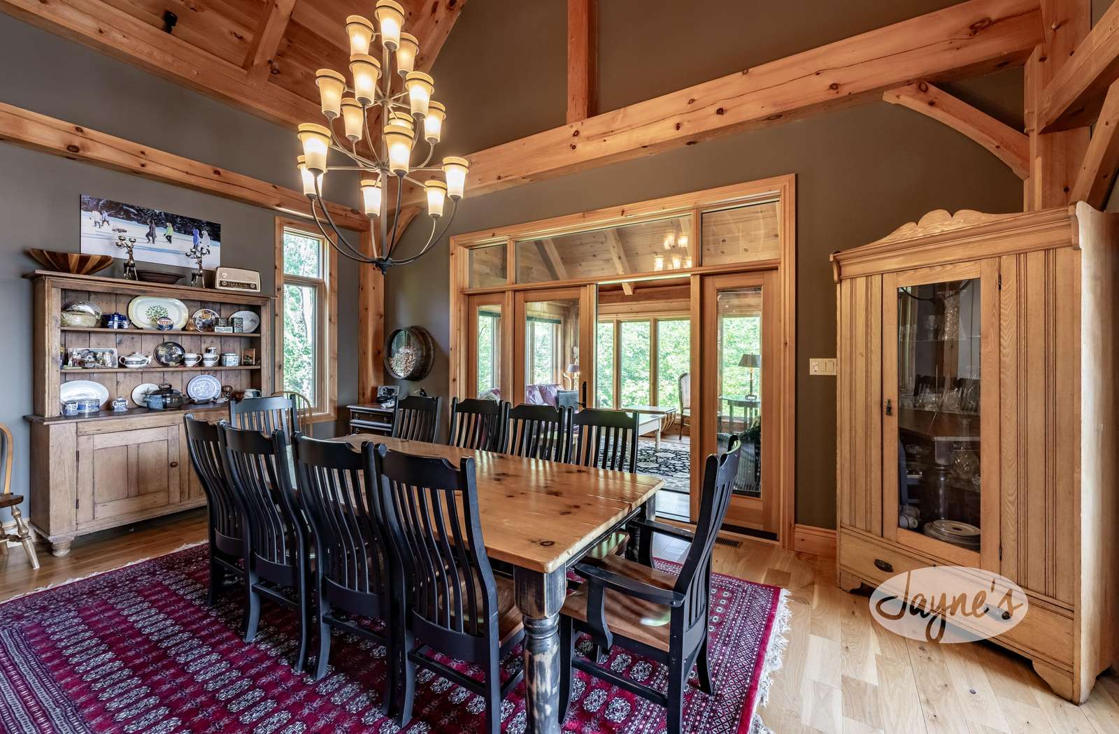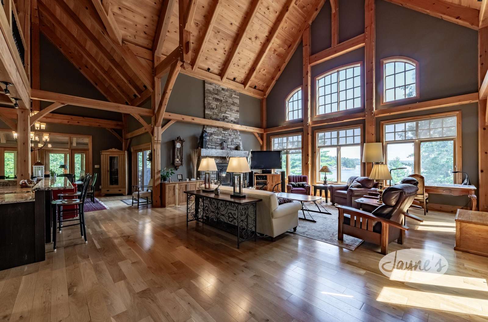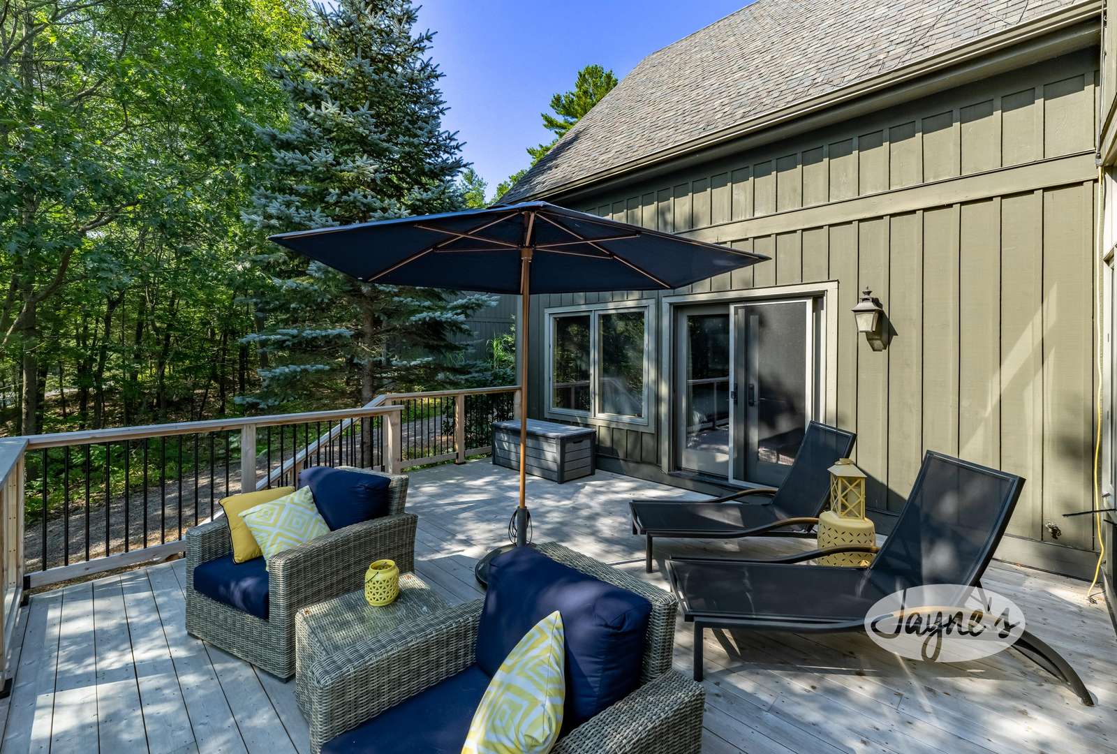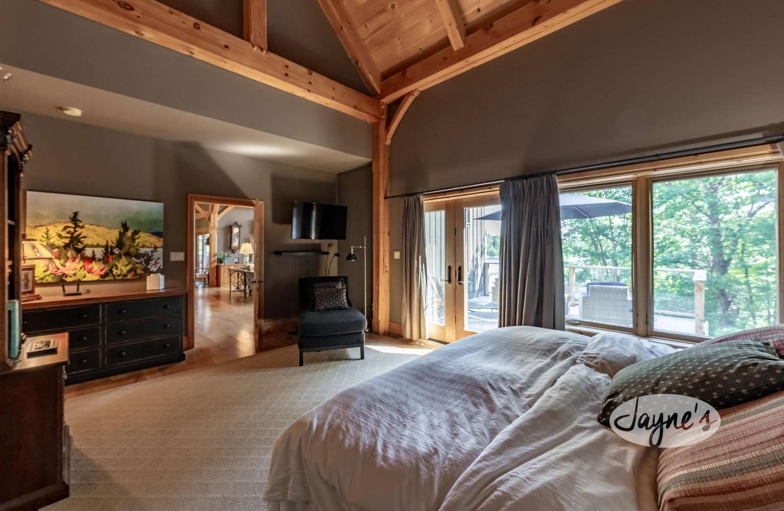 Elegant but cozy, all the rooms are filled with thoughtfully-selected comfortable furnishings. With 6 bedrooms, 7 bathrooms, gourmet kitchen, various indoor and outdoor seating areas, there is enough room for everyone to enjoy together and alone time. The Great Room takes advantage of the wonderful views with a cathedral ceiling that adds elegance to this room, and the large windows take advantage of all the natural light. Here you will find your kitchen, living area, plus a floor-to-ceiling Muskoka stone wood-burning fireplace that adds the ambiance of the true Canadian north. In addition, you have a breakfast bar and dining room with entry to another deck - this room is truly the heart of the home. The deck off the dining room has an Weber BBQ with rotisserie, outdoor dining for 6 and seating area that can sit 5 with a coffee table plus expansive views. This is an entertainer's paradise. There is a 4 season Muskoka room off the dining area to increase your seating or allow a separate conversation area. The gourmet kitchen is a chef's dream, well-lit with natural light and is complete with granite countertops, decorator finishes and upscale appliances. Off of the Great Room sits the main floor master bedroom. With its 5-piece ensuite and private deck, it's a true retreat. The lower level games rooms, has another stone wood-burning fireplace, television, pool table that can be converted to a ping pong table and walkout.